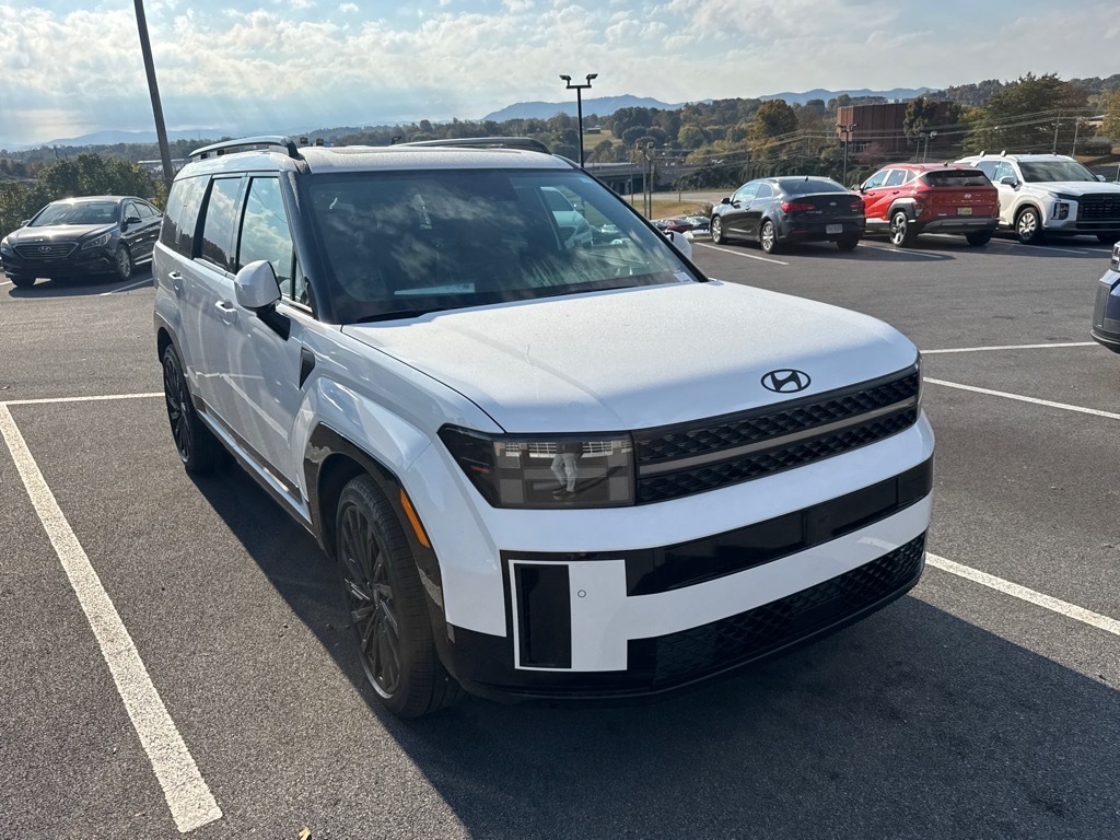 INFORMATION ABOUT THIS VEHICLE AND IT FEATURES:, AWD, Pecan Brown Leather. Option Group 01, AWD, Pecan Brown Leather, 12 Speakers, 3rd row seats: bench, 4-Wheel Disc Brakes, ABS brakes, Air Conditioning, All Season Fitted Liners, Alloy wheels, AM/FM radio: SiriusXM, Apple CarPlay & Android Auto, Auto High-beam Headlights, Auto-dimming Rear-View mirror, Automatic temperature control, Brake assist, Bumpers: body-color, Cargo Blocks, Cargo Cover/Screen, Cargo Net, Cargo Tray, Carpeted Floor Mats, Delay-off headlights, Driver door bin, Driver vanity mirror, Dual front impact airbags, Dual front side impact airbags, Electronic Stability Control, Emergency communication system, Exterior Parking Camera Rear, First Aid Kit, Four wheel independent suspension, Front anti-roll bar, Front Bucket Seats, Front Center Armrest, Front dual zone A/C, Front reading lights, Fully automatic headlights, Garage door transmitter: HomeLink, Heads-Up Display, Heated and Ventilated Front Bucket Seats, Heated door mirrors, Heated front seats, Heated rear seats, Heated steering wheel, Illuminated entry, Knee airbag, Leather steering wheel, Low tire pressure warning, Memory seat, Navigation System, Occupant sensing airbag, Outside temperature display, Overhead airbag, Overhead console, Panic alarm, Passenger door bin, Passenger vanity mirror, Power door mirrors, Power driver seat, Power Liftgate, Power moonroof, Power passenger seat, Power steering, Power windows, Quilted Premium Nappa Leather Seat Trim, Radio: AM/FM/HD Bose Premium Audio System, Rain sensing wipers, Rear anti-roll bar, Rear side impact airbag, Rear window defroster, Rear window wiper, Remote keyless entry, Security system, Speed control, Speed-sensing steering, Split folding rear seat, Spoiler, Steering wheel mounted audio controls, Tachometer, Telescoping steering wheel, Tilt steering wheel, Traction control, Trip computer, Turn signal indicator mirrors, Variably intermittent wipers, Ventilated front seats, and Wheels: 21x 8.5J Unique Dark Finish Alloy. Serenity White 2026 Hyundai Santa Fe Calligraphy AWD 8-Speed Automatic with SHIFTRONIC 2.5L I4 20/28 City/Highway MPG