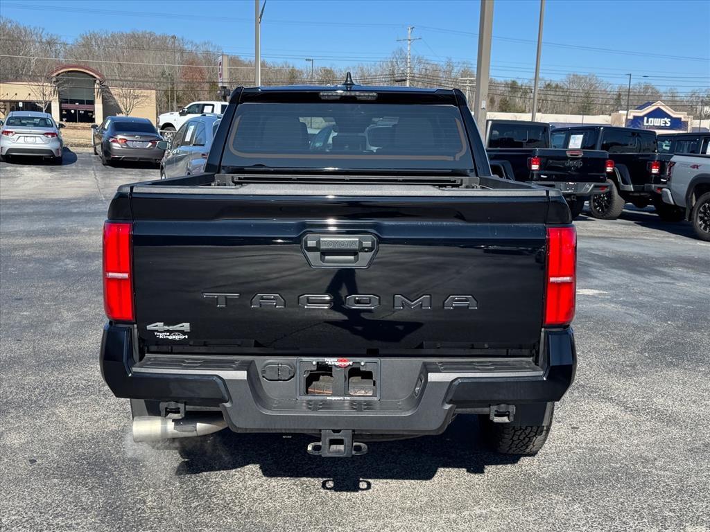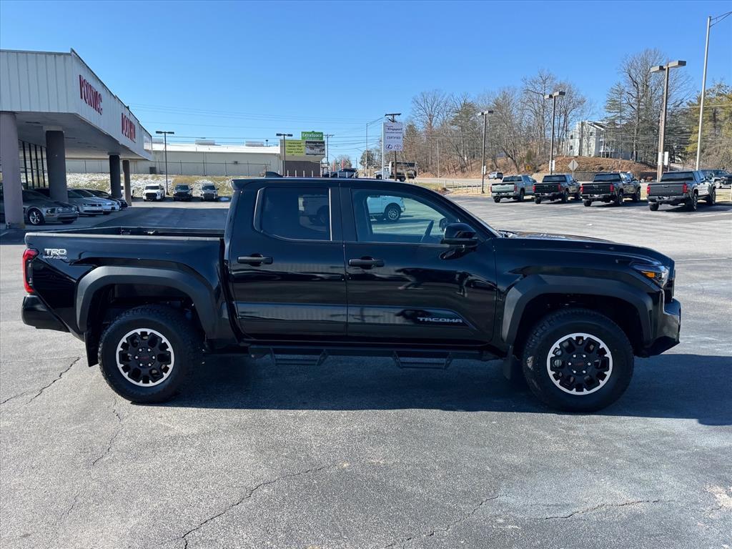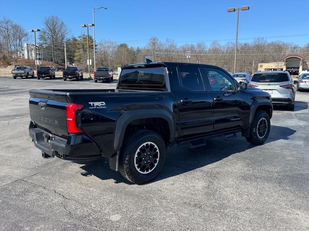 CARFAX One-Owner. Save big this month on well performing vehicles from us, here at Toyota Of Kingsport. 2024 Toyota Tacoma 2.4L 4-Cylinder TRD Off-Road Black4WD, ABS brakes, Alloy wheels, Electronic Stability Control, Heated door mirrors, Illuminated entry, Low tire pressure warning, Remote keyless entry, Traction control. Odometer is 17184 miles below market average!Come see us at Toyota / Lexus of Kingsport! Where SAVING people money is a Hill Family Tradition!!4WD, ABS brakes, Alloy wheels, Electronic Stability Control, Heated door mirrors, Illuminated entry, Low tire pressure warning, Remote keyless entry, Traction control, 3.583 Axle Ratio, 4-Wheel Disc Brakes, 6 Speakers, Air Conditioning, AM/FM radio: SiriusXM, Anti-whiplash front head restraints, Apple CarPlay/Android Auto, Auto High-beam Headlights, Auto-dimming Rear-View mirror, Automatic temperature control, Brake assist, Bumpers: body-color, Driver door bin, Driver vanity mirror, Dual front impact airbags, Dual front side impact airbags, Emergency communication system: Safety Connect (1-year trial), Exterior Parking Camera Rear, Fabric Seat Trim (FD), Four wheel independent suspension, Front anti-roll bar, Front Bucket Seats, Front Center Armrest, Front fog lights, Front reading lights, Fully automatic headlights, Knee airbag, Leather Shift Knob, Leather steering wheel, Occupant sensing airbag, Outside temperature display, Overhead airbag, Overhead console, Panic alarm, Passenger door bin, Passenger vanity mirror, Power door mirrors, Power steering, Power windows, Radio: 8 Toyota Audio Multimedia, Rear step bumper, Rear window defroster, Security system, Speed control, Speed-sensing steering, Split folding rear seat, Steering wheel mounted audio controls, Tachometer, Telescoping steering wheel, Tilt steering wheel, Trip computer, Turn signal indicator mirrors, Variably intermittent wipers, and Wheels: 17 TRD Off-Road Alloy.