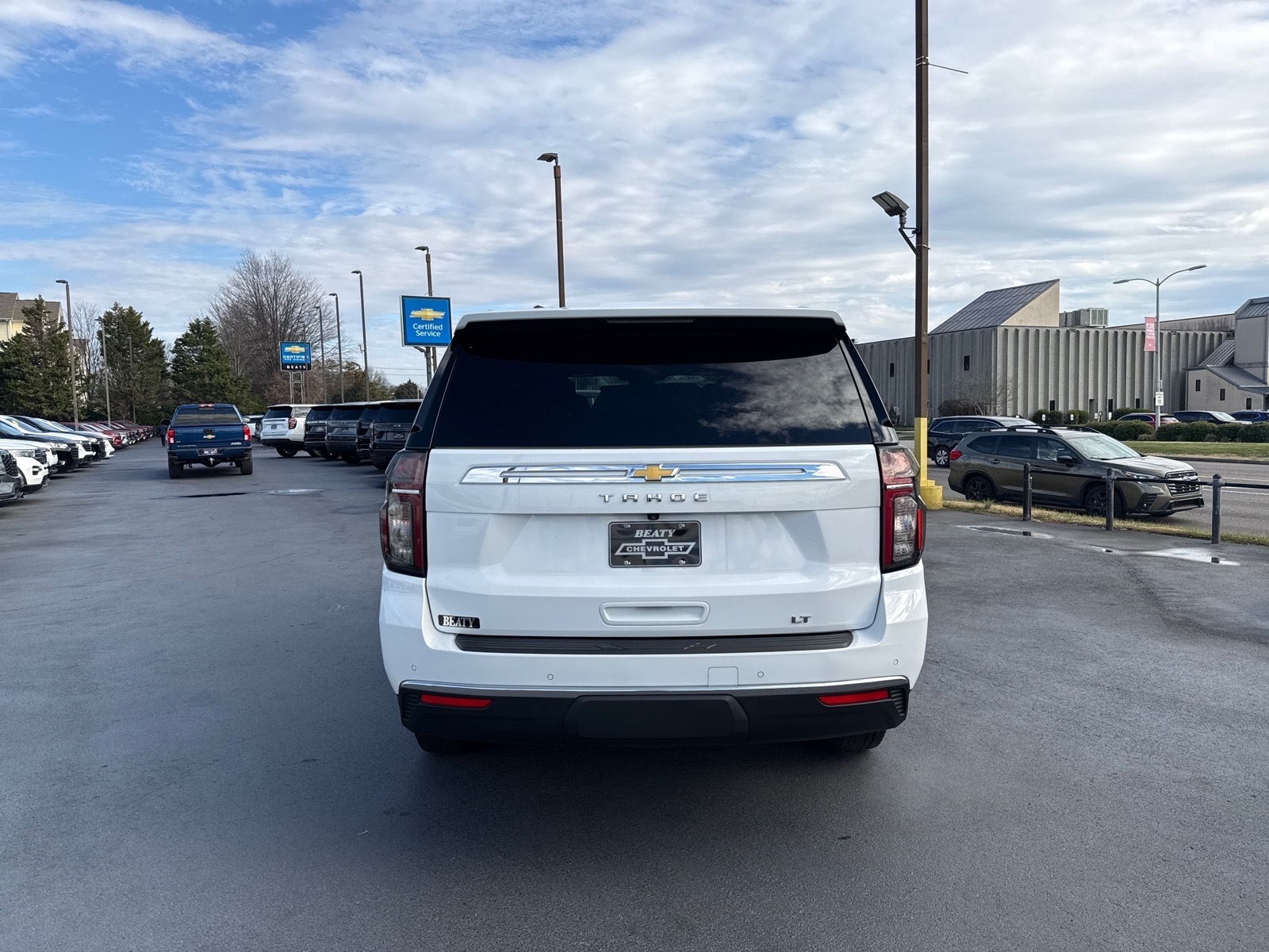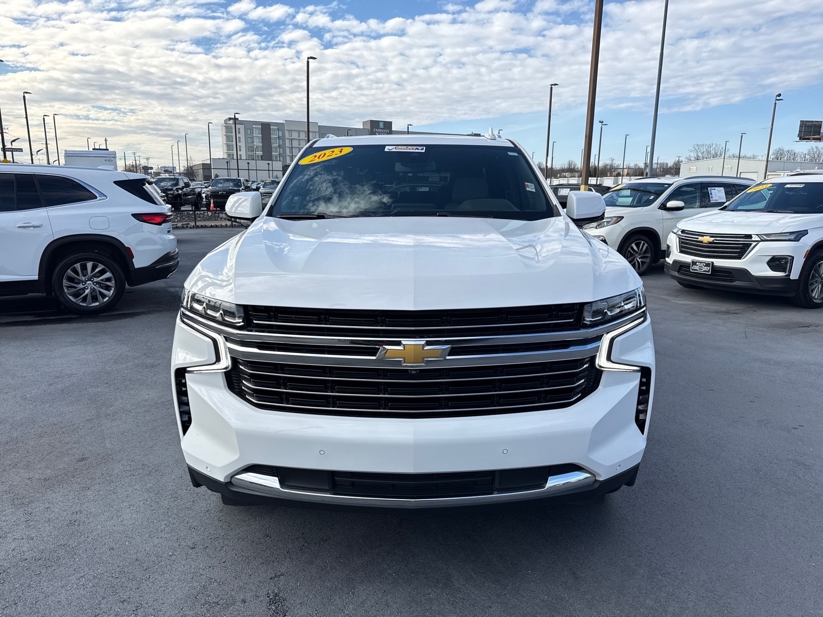 Beaty Chevrolet Company is pleased to offer this stunning-looking 2023 Chevrolet Tahoe LT in Summit White Beautifully equipped with Advanced Trailering Package (Hitch Guidance w/Hitch View, Integrated Trailer Brake Controller, and Smart Trailer Integration Indicator), Driver Alert Package (Lane Change Alert w/Side Blind Zone Alert and Rear Cross Traffic Alert), License Plate Front Mounting Package, LT Signature Package (Dual-Pane Power Panoramic Sunroof), Luxury Package (2nd Row Pwr Release 60/40 Split-Folding Bench Seat, 3rd Row 60/40 Power-Folding Split-Bench Seat, HD Surround Vision, Heated 2nd Row Outboard Seats, Heated Steering Wheel, Memory Settings, Outside Heated Power-Adjustable Mirrors, Power Tilt & Telescopic Steering Column, and Rear Pedestrian Alert), Max Trailering Package (Extra Capacity Cooling System), Preferred Equipment Group 1LT (1st & 2nd Row Color-Keyed Carpeted Floor Mats, Auto-Dimming Inside Rear-View Mirror, Bose 9-Speaker Stereo Audio System Feature, Bright Front & Rear Door Sill Plates, Color-Keyed Carpeting Floor Covering, Driver & Front Outboard Passenger Airbags, Enhanced Driver Information Center, Floor Console w/Storage Area, Hands-Free Rear Power Programmable Liftgate, Infotainment Display, LED Daytime Running Lamps, Memory Settings for Driver, Remote Start, SiriusXM Radio w/360L, Universal Home Remote, Wireless Charging, and Wrapped Steering Wheel), Gideon/Very Dark Atmosphere Leather, 10-Way Power Driver & Passenger Seat Adjusters, 1st & 2nd Rows All-Weather Floor Liners (LPO), 3.23 Rear Axle Ratio, 3rd row seats: split-bench, 4-Wheel Disc Brakes, 9 Speakers, ABS brakes, Air Conditioning, Alloy wheels, AM/FM radio: SiriusXM with 360L, Apple CarPlay/Android Auto, Auto High-beam Headlights, Auto-dimming Rear-View mirror, Automatic temperature control, Brake assist, Bumpers: body-color, Compass, Delay-off headlights, Driver door bin, Driver vanity mirror, Dual front impact airbags, Dual front side impact airbags, Electronic Stability Control, Emergency communication system: OnStar and Chevrolet connected services capable, Four wheel independent suspension, Front anti-roll bar, Front Bucket Seats, Front Center Armrest, Front dual zone A/C, Front High-Back Reclining Bucket Seats, Front reading lights, Fully automatic headlights, Garage door transmitter, Heated door mirrors, Heated Driver & Front Passenger Seats, Heated front seats, Illuminated entry, Leather-Appointed Seat Trim, Low tire pressure warning, Memory seat, Mold