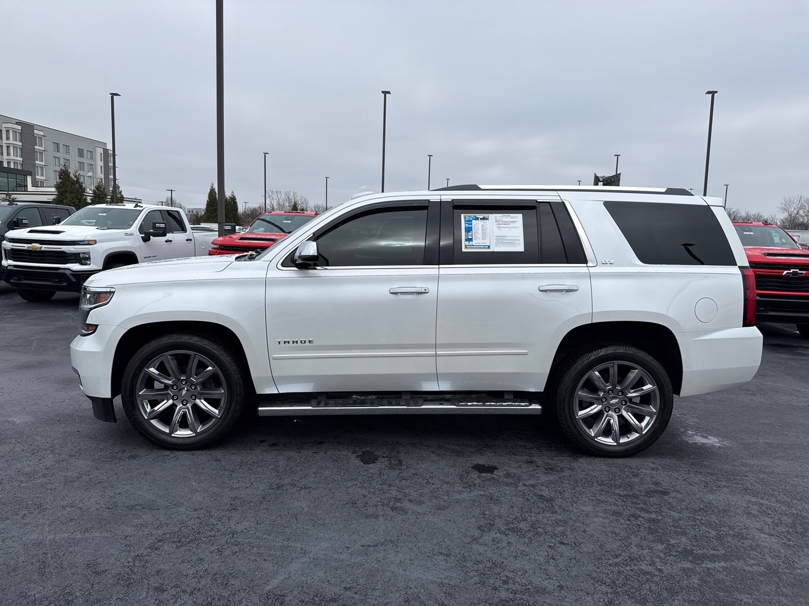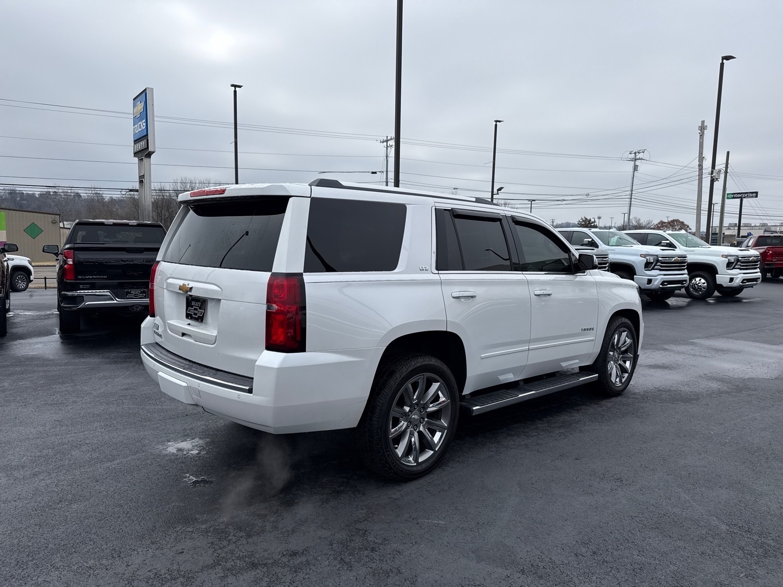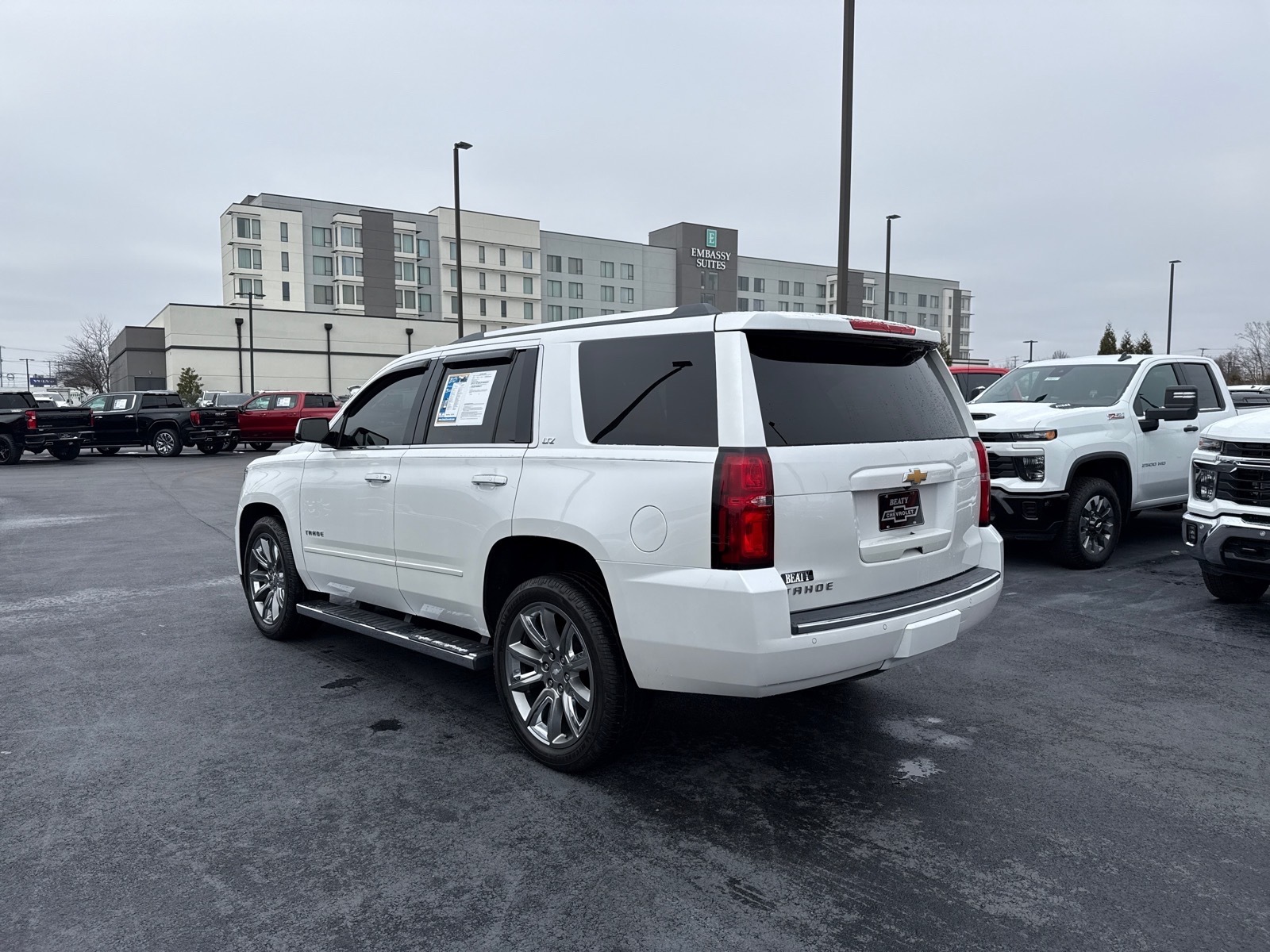 Beaty Chevrolet Company is pumped up to offer this attractive-looking 2016 Chevrolet Tahoe LTZ in Iridescent Pearl Tricoat Beautifully equipped with License Plate Front Mounting Package, Magnetic Ride Control Suspension Package, Max Trailering Package (2-Speed Active Electronic AutoTrac Transfer Case and Integrated Trailer Brake Controller), Preferred Equipment Group 1LZ (1st & 2nd Row Color-Keyed Carpeted Floor Mats, 3rd Row 60/40 Power Fold Split-Bench, 4-Wheel Antilock Disc Brakes, 5 12-Volt Auxiliary Power Outlets, Auto-Dimming Inside Rear-View Mirror, Black Assist Steps w/Chrome Accent Strip, Bose Centerpoint Premium 10-Speaker Surround Sound, Color-Keyed Carpeting Floor Covering, Driver Inboard & Front Passenger Airbags, Electronic Cruise Control w/Set & Resume Speed, Enhanced Driver Instrument Information Display, Floor Console, Fog Lamps, Front & Rear Parking Assist, Hands Free Power Liftgate, Heated 2nd Row Seats, Heated Leather Wrapped Steering Wheel, Memory Settings, OnStar Basic Plan For 5 Years, Passive Entry System, Power Release 2nd Row Bucket Seats, Power Tilt & Telescoping Steering Column, Power-Adjustable Accelerator & Brake Pedals, Power-Folding Heated Outside Mirrors, Push Button Keyless Start, Rear Cross-Traffic Alert, Remote Keyless Entry, Roof-Mounted Luggage Rack Side Rails, Side Blind Zone Alert w/Lane Change Alert, SiriusXM Satellite Radio, Universal Home Remote, and Wireless Charging), Sun, Entertainment & Destinations Package (Power Sunroof and Rear Seat Blu-Ray/DVD Entertainment System), 4WD, Cocoa/Dune Leather, 10 Speakers, 3rd row seats: split-bench, 4-Wheel Disc Brakes, 6-Way Power Front Passenger Seat Adjuster, ABS brakes, Adaptive suspension, Adjustable pedals, Air Conditioning, Alloy wheels, AM/FM radio: SiriusXM, Apple CarPlay, Auto High-beam Headlights, Auto-dimming door mirrors, Auto-dimming Rear-View mirror, Automatic temperature control, Bodyside moldings, Brake assist, Bumpers: body-color, CD player, Chrome Assist Step Kit (LPO), Compass, Delay-off headlights, Driver door bin, Driver vanity mirror, Dual front impact airbags, Dual front side impact airbags, Electronic Stability Control, Emergency communication system: OnStar, Exterior Parking Camera Rear, Forward Collision Alert Sensor Indicator, Front anti-roll bar, Front Bucket Seats, Front Center Armrest, Front dual zone A/C, Front fog lights, Front Heated Reclining Bucket Seats, Front reading lights, Front wheel independent suspension, Fully automatic headlig