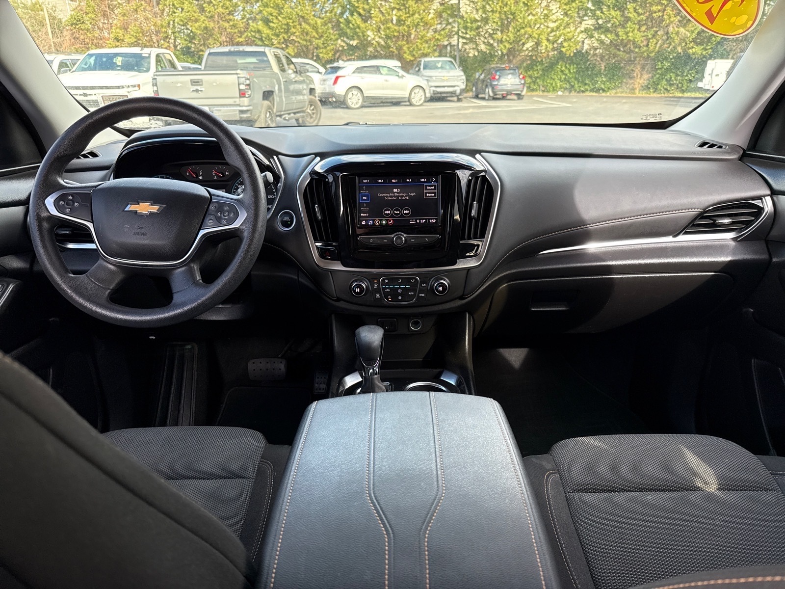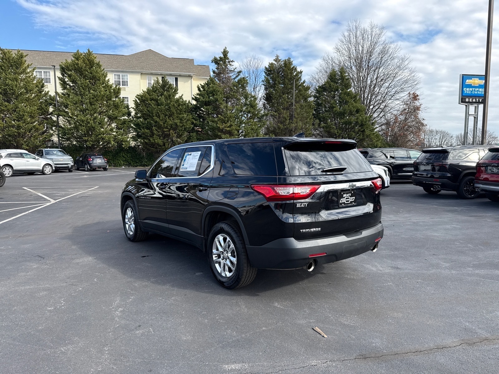 Beaty Chevrolet Company is very proud to offer this charming-looking 2021 Chevrolet Traverse LS in Mosaic Black Metallic Beautifully equipped with Preferred Equipment Group 1LS, 3.49 Axle Ratio, 3rd row seats: split-bench, 4-Wheel Disc Brakes, 6 Speakers, 8-Passenger Seating (2-3-3 Seating Configuration), ABS brakes, Air Conditioning, Alloy wheels, AM/FM radio, Apple CarPlay/Android Auto, Automatic temperature control, Brake assist, Bumpers: body-color, Compass, Delay-off headlights, Driver door bin, Driver vanity mirror, Dual front impact airbags, Dual front side impact airbags, Electronic Stability Control, Emergency communication system: OnStar and Chevrolet connected services capable, Four wheel independent suspension, Front & Rear Black Bowtie Emblems (LPO), Front anti-roll bar, Front Bucket Seats, Front Center Armrest, Front dual zone A/C, Front reading lights, Fully automatic headlights, Heated door mirrors, High-Intensity Discharge Headlights, Illuminated entry, Low tire pressure warning, Occupant sensing airbag, Outside temperature display, Overhead airbag, Overhead console, Panic alarm, Passenger door bin, Passenger vanity mirror, Power door mirrors, Power steering, Power windows, Premium Cloth Seat Trim, Radio data system, Radio: Chevrolet Infotainment System AM/FM Stereo, Rear air conditioning, Rear anti-roll bar, Rear reading lights, Rear window defroster, Rear window wiper, Remote keyless entry, Security system, Speed control, Speed-sensing steering, Split folding rear seat, Spoiler, Steering wheel mounted audio controls, Tachometer, Telescoping steering wheel, Tilt steering wheel, Traction control, Trip computer, Variably intermittent wipers, Voltmeter, and Wheels: 18 Bright Silver Painted Aluminum! Vin decoding may not always be 100% accurate. Vehicle descriptions may not always be accurate. Please see Dealership Sales Associate.Beaty Chevrolet is Family Owned and Operated since 1933.