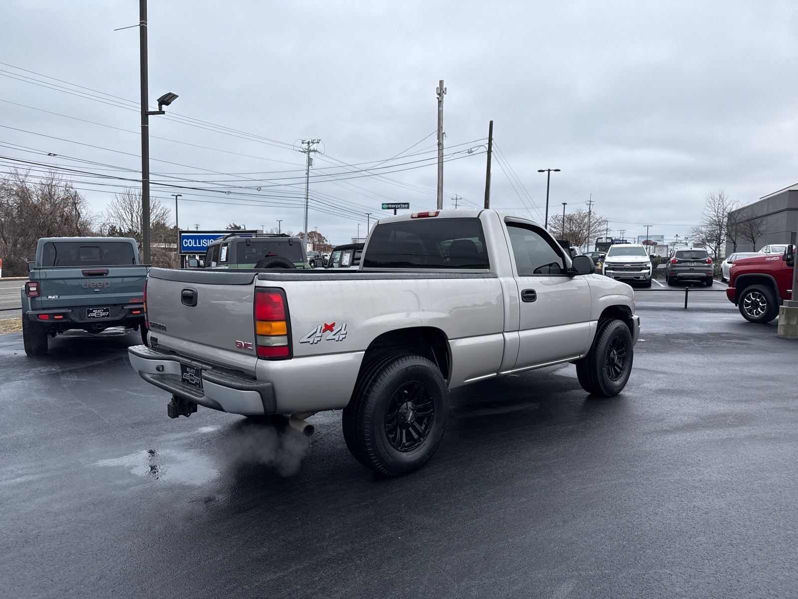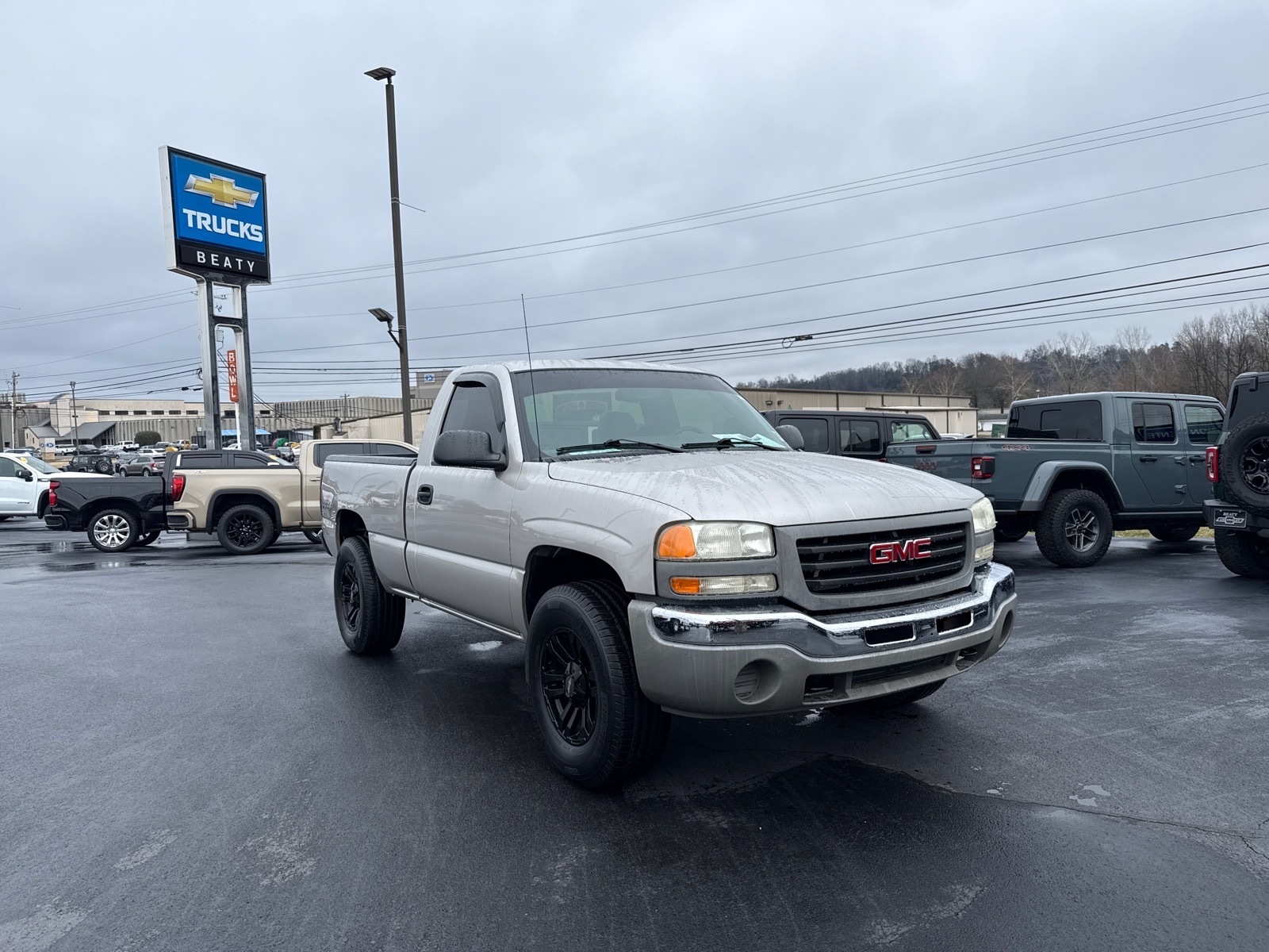 Beaty Chevrolet Company is pleased to offer this great-looking 2004 GMC Sierra 1500 Work Truck in Fine Silver Birch Metallic Beautifully equipped with Handling/Trailering Heavy Duty Suspension Package, Heavy-Duty Trailering Equipment (Heavy-Duty Air-to-Oil External Transmission Oil Cooler), Light Duty Power Package (Heavy-Duty Rear Locking Differential), Solid Smooth Ride Suspension Package, Vortec 5.3L V8 SFI, 4-Speed Automatic with Overdrive, 4WD, 3.73 Rear Axle Ratio, 4 Speakers, 4-Wheel Disc Brakes, 40/20/40 Front Split-Bench Seat, ABS brakes, Air Conditioning, AM/FM radio, Bumpers: chrome, Custom Cloth Seat Trim, Driver door bin, Dual front impact airbags, Electronic Cruise Control w/Set & Resume Speed, Front anti-roll bar, Front dual zone A/C, Front wheel independent suspension, Fully automatic headlights, Graphite-Colored Rubberized Vinyl Floor Covering, Occupant sensing airbag, Passenger door bin, Passenger vanity mirror, Power steering, Rear Chrome Step Bumper w/Pad, Rear step bumper, Solar-Ray Deep Tinted Glass, Tachometer, Tilt steering wheel, Variably intermittent wipers, and Voltmeter! Vin decoding may not always be 100% accurate. Vehicle descriptions may not always be accurate. Please see Dealership Sales Associate.Beaty Chevrolet is Family Owned and Operated since 1933.