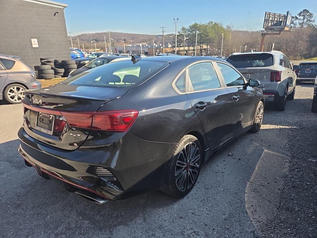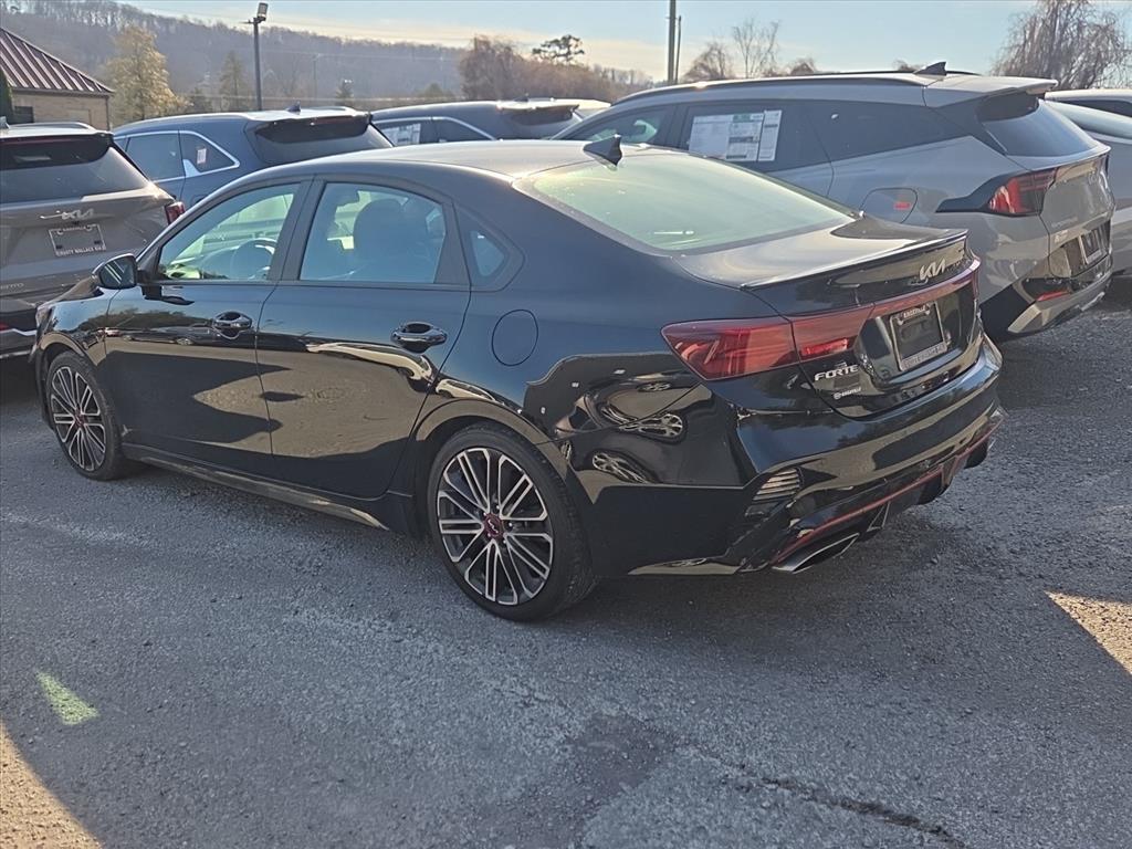 Check out all these great options: GT2 Package (10-Way Power Driver's Seat, Electronic Parking Brake (EPB) w/Auto Hold, Forward Collision Avoidance-Assist - Cyclist, Heated & Ventilated Front Seats, Highway Driving Assist (HDA), Navigation-Based Smart Cruise Control (NSCC), Overhead LED Front & Rear Reading Lamps, Parking Distance Warning-Reverse, Power Sunroof, Radio: AM/FM/MP3 harman/kardon Premium Audio System, Smart Cruise Control, and SynTex Seat Trim), 4-Wheel Disc Brakes, 6 Speakers, ABS brakes, Air Conditioning, Alloy wheels, AM/FM radio: SiriusXM, Apple CarPlay & Android Auto, Auto High-beam Headlights, Automatic temperature control, Brake assist, Bumpers: body-color, Carpet Floor Mat, Cloth & Leatherette Seat Trim, Delay-off headlights, Driver door bin, Driver vanity mirror, Dual front impact airbags, Dual front side impact airbags, Electronic Stability Control, Emergency communication system: UVO eServices, Exterior Parking Camera Rear, Four wheel independent suspension, Front anti-roll bar, Front Bucket Seats, Front Center Armrest, Front dual zone A/C, Front fog lights, Front reading lights, Front Sport Seats, Fully automatic headlights, Heated door mirrors, Illuminated entry, Leather Shift Knob, Leather steering wheel, Low tire pressure warning, Navigation System, Occupant sensing airbag, Outside temperature display, Overhead airbag, Overhead console, Panic alarm, Passenger door bin, Passenger vanity mirror, Power door mirrors, Power steering, Power windows, Radio data system, Radio: UVO Link Audio System, Rear anti-roll bar, Rear seat center armrest, Rear window defroster, Remote keyless entry, Security system, Speed control, Split folding rear seat, Spoiler, Sport steering wheel, Steering wheel mounted audio controls, Tachometer, Telescoping steering wheel, Tilt steering wheel, Traction control, Trip computer, Turn signal indicator mirrors, Variably intermittent wipers, and Wheels: 18 Machine Finish Alloy. Aurora Black Pearl 2022 Kia Forte GT FWD 7-Speed Automatic 1.6L 4-Cylinder27/35 City/Highway MPG