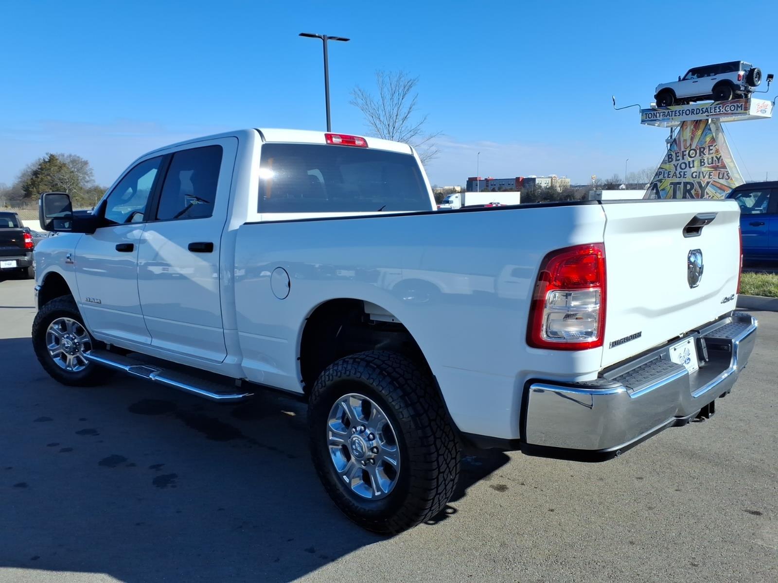 We'll trade for anything that don't eat!ONE OWNER!! NO ACCIDENT AUTOCHECK REPORT!!Bright White Clearcoat 2024 Ram 2500 Big Horn 4WD 6-Speed Automatic Cummins 6.7L I6 Turbodiesel **ONE OWNER**, NO ACCIDENTS!!, 2 Way Rear Headrest Seat, 220 Amp Alternator, 2nd Row In Floor Storage Bins, 3.73 Axle Ratio, 4 Way Front Headrests, 4-Wheel Disc Brakes, 40/20/40 Split Bench Seat, 4G LTE Wi-Fi Hot Spot, 6 Speakers, 8.4 Touchscreen Display, ABS brakes, Active Noise Control System, Air Conditioning, Anti-Spin Differential Rear Axle, Apple CarPlay, Auto Power-Folding Mirrors, Big Horn IP Badge, Black Exterior Mirrors, Bluetooth Handsfree Phone & Audio, Brake assist, Bumpers: chrome, Center Hub, Center Stack Storage Drawer, Chrome Flat Cab-Length Side Steps, Cold Weather Group, Compass, Connectivity - US/Canada, Delay-off headlights, Driver door bin, Dual front side impact airbags, Dual Glove Boxes, Electronic Stability Control, Electronically Controlled Throttle, Engine Block Heater, Exterior Mirrors Courtesy Lamps, Exterior Mirrors w/Heating Element, Exterior Mirrors w/Supplemental Signals, Foam Bottle Insert (Door Trim Panel), Footwell Courtesy Lamp, For Details, Visit DriveUconnect.com, For More Info, Call 800-643-2112, Forward & Reverse Utility Lights, Front anti-roll bar, Front Armrest w/Cupholders, Front Center Armrest w/Storage, Front Center Seat Cushion Storage, Front Fog Lamps, Front License Plate Bracket, Front Performance Tuned Shock Absorbers, Front reading lights, Front Seat Back Map Pockets, Fully automatic headlights, Global Telematics Box Module (TBM), Glove Box Lamp, Google Android Auto, GPS Antenna Input, Heated door mirrors, Heavy Duty Snow Plow Prep Group, Hill Descent Control, Illuminated entry, Integrated Center Stack Radio, Integrated Voice Command w/Bluetooth, Leather Wrapped Steering Wheel, Level 1 Equipment Group, Locking Lower Glove Box, Low tire pressure warning, Manual Adjust 4-Way Front Passenger Seat, Mirror Running Lights, MOPAR Spray In Bedliner, MOPAR Winter Front Grille Cover, Occupant sensing airbag, Off Road Package, Outside temperature display, Overhead airbag, Overhead console, ParkSense Front/Rear Park Assist System, ParkView Rear Back-Up Camera, Passenger door bin, Passenger vanity mirror, Power 2-Way Driver Lumbar Adjust, Power Adjust 8-Way Driver Seat, Power Adjust Mirrors, Power Adjustable Convex Aux Mirrors, Power door mirrors, Power Heated Fold Telescope Mirrors, Power steering, Power Telescoping Mirrors, P