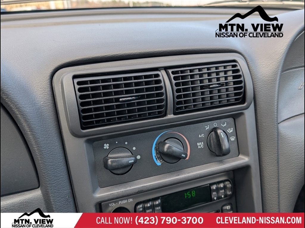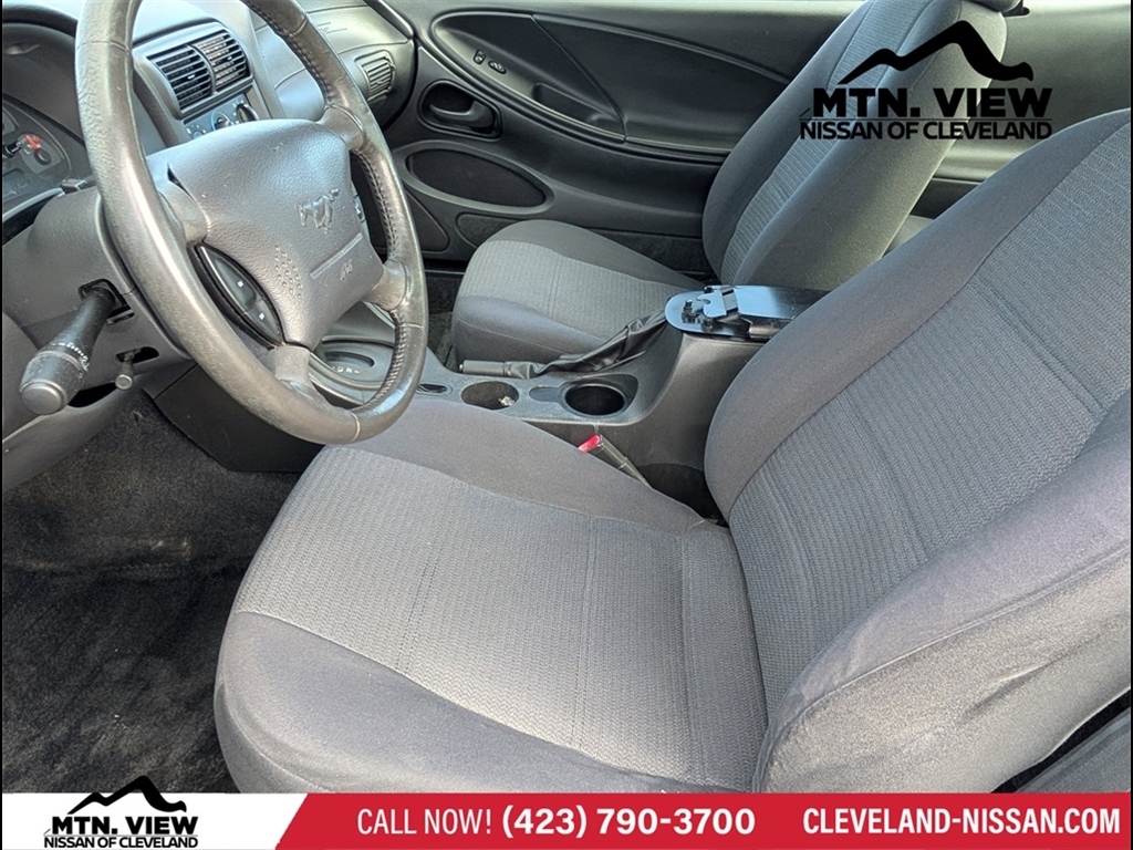 Clean CARFAX. CARFAX One-Owner.Silver Metallic 2003 Ford Mustang V6 2D Coupe 3.8L V6 EFI RWD 4-Speed Automatic with Overdrive* Bluetooth/Handsfree Calling *, * USB Adapter *, Mustang V6, 2D Coupe, 3.8L V6 EFI, RWD, Medium Graphite Cloth, 4-Wheel Disc Brakes, Air Conditioning, Alloy wheels, AM/FM radio, Bumpers: body-color, CD player, Cloth Buckets w/Recliners, Driver door bin, Driver vanity mirror, Dual front impact airbags, Front anti-roll bar, Front Bucket Seats, Front Center Armrest, Front reading lights, Front wheel independent suspension, Illuminated entry, Panic alarm, Passenger door bin, Passenger vanity mirror, Power door mirrors, Power steering, Power windows, Rear window defroster, Remote keyless entry, Split folding rear seat, Tachometer, Tilt steering wheel, Variably intermittent wipers, Voltmeter, Mustang V6, 2D Coupe, 3.8L V6 EFI, RWD, Medium Graphite Cloth.Experience the exceptional quality and reliability of pre-owned vehicles at Mtn View Nissan, proudly part of the esteemed Mtn View Auto Group with locations in Chattanooga, Cleveland, and Dalton, GA. Discover our wide selection of pre-owned vehicles backed by the unparalleled assurance of our 6 Month/6,000 MIle MV Certified Powertrain Warranty. Explore today!