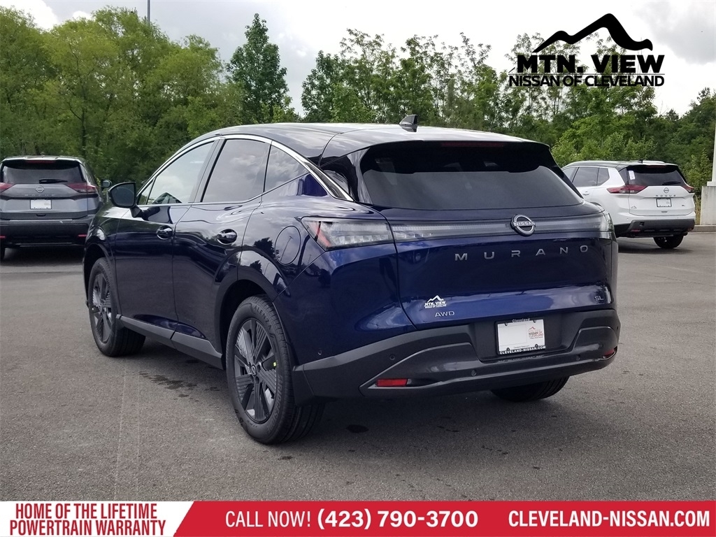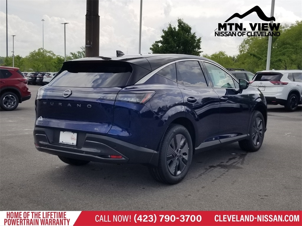 Deep Ocean Blue Pearl/Super Black 2025 Nissan Murano SL I4 AWD 4D Sport Utility 9-Speed Automatic * Bluetooth/Handsfree Calling *, * USB Adapter *, Murano SL AWD, 4D Sport Utility, I4, 9-Speed Automatic, AWD, Deep Ocean Blue Pearl/Super Black, Graphite Premium Synthetic, 3-Position Cargo Area Protector, Cargo Net, Cargo Package, First Aid Kit, Navigation system: NissanConnect with Navigation and Services, Retractable Cargo Cover, 10 Speakers, 2-Tone Paint (E09), 20Alloy Wheels, 4-Wheel Disc Brakes, ABS brakes, Air Conditioning, Alloy wheels, AM/FM radio: SiriusXM w/360L, Auto High-beam Headlights, Auto-dimming Rear-View mirror, Automatic temperature control, Brake assist, Bumpers: body-color, Carpeted Floor & Cargo Mats, Child-Seat-Sensing Airbag, Compass, Delay-off headlights, Driver door bin, Driver vanity mirror, Dual front impact airbags, Dual front side impact airbags, Electronic Stability Control, Emergency communication system: NissanConnect Services, Four wheel independent suspension, Front anti-roll bar, Front Bucket Seats, Front Center Armrest, Front dual zone A/C, Front reading lights, Fully automatic headlights, Garage door transmitter: myQ Connected Garage, Grained Splash Guards, Heated door mirrors, Heated Front Bucket Seats, Heated front seats, Heated steering wheel, Illuminated entry, Knee airbag, Low tire pressure warning, Memory seat, Occupant sensing airbag, Outside temperature display, Overhead airbag, Overhead console, Panic alarm, Passenger door bin, Passenger vanity mirror, Power door mirrors, Power driver seat, Power Liftgate, Power moonroof: Panoramic, Power passenger seat, Power steering, Power windows, PVC (Leatherette) Seat Trim, Radio data system, Radio: NissanConnect w/Hybrid Radio, Rear anti-roll bar, Rear reading lights, Rear seat center armrest, Rear side impact airbag, Rear window defroster, Rear window wiper, Remote keyless entry, Security system, Speed control, Speed-Sensitive Wipers, Split folding rear seat, Spoiler, Steering wheel mounted audio controls, Tachometer, Telescoping steering wheel, Tilt steering wheel, Traction control, Trip computer, Turn signal indicator mirrors, USB Charging Cables, Variably intermittent wipers, Wireless Apple CarPlay/Wireless Android Auto, Murano SL AWD, 4D Sport Utility, I4, 9-Speed Automatic, AWD, Deep Ocean Blue Pearl/Super Black, Graphite Premium Synthetic, 3-Position Cargo Area Protector, Cargo Net, Cargo Package, First Aid Kit, Navigation system: NissanConnect with Navigation an