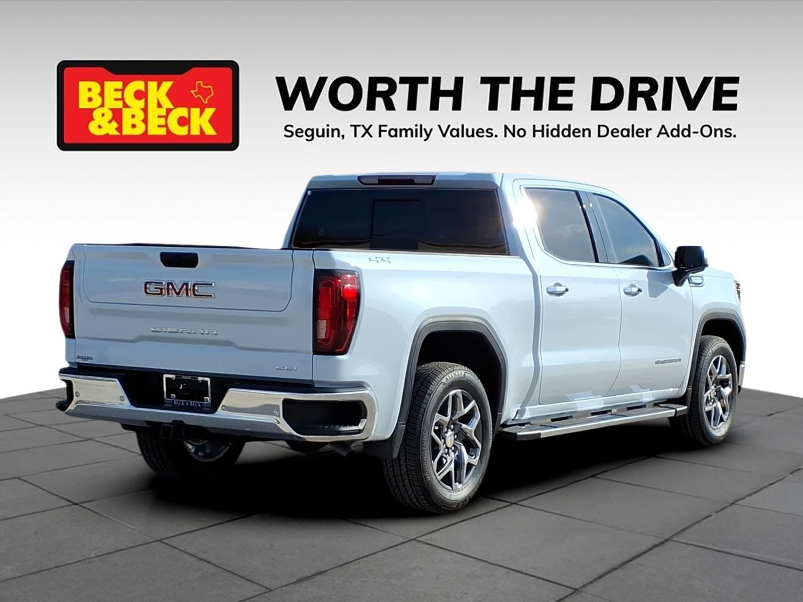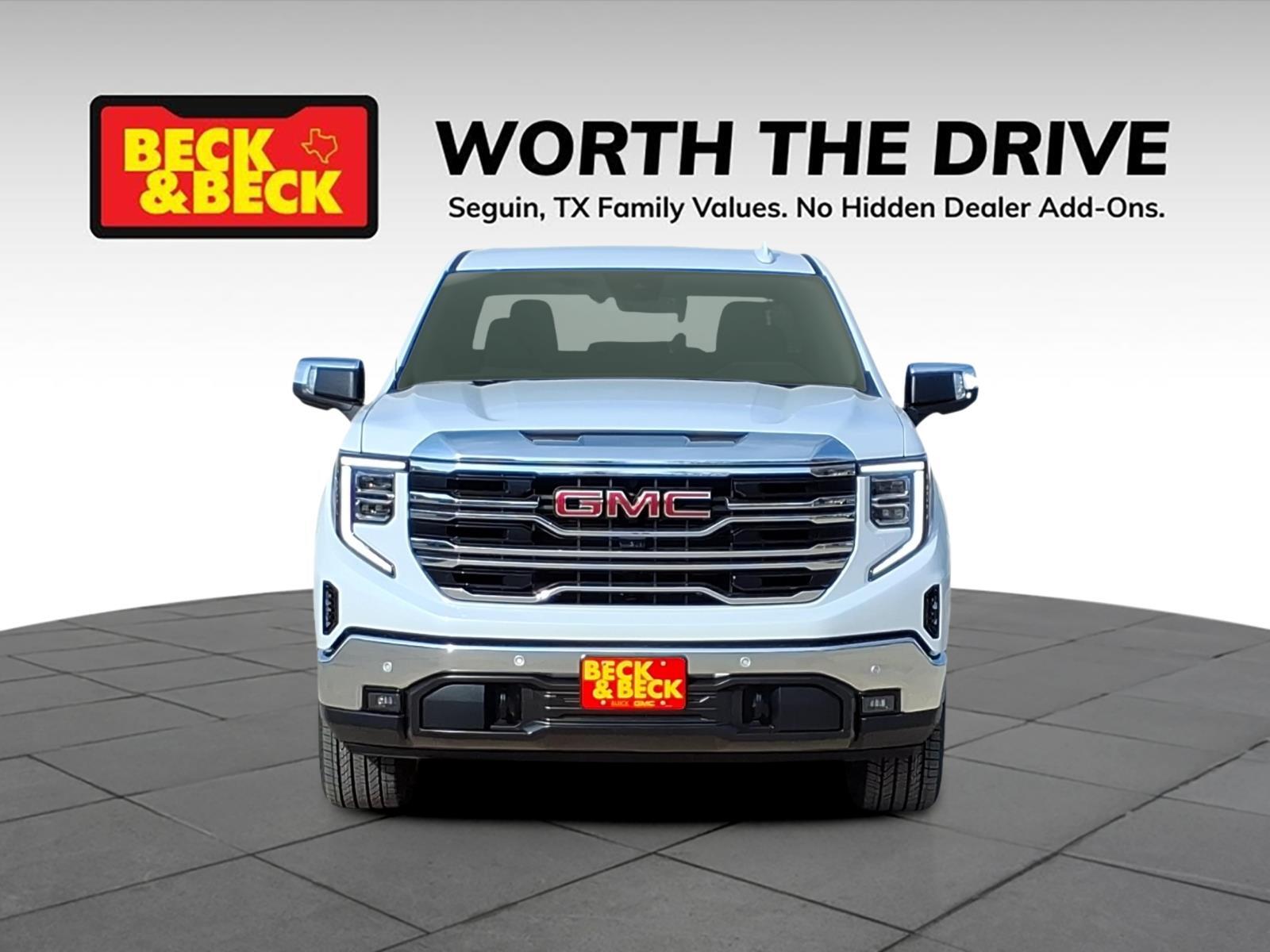 Glacier White Tricoat 2026 GMC Sierra 1500 SLT 4WD 10-Speed Automatic EcoTec3 5.3L V8 Sierra 1500 SLT, 4D Crew Cab, EcoTec3 5.3L V8, 4WD, Glacier White Tricoat, Dark Walnut/Slate w/Perforated Leather-Appointed Front Outboard Seat Trim, 120-Volt Bed Mounted Power Outlet, 120-Volt Interior Power Outlet, 170 Amp Alternator, 2 Charge/Data USB Ports, 2 Charge/Data USB Ports Inside Center Console, 2 Type-C Charge-Only Rear USB Ports, 6-Speaker Audio System Feature, Auto-Locking Rear Differential, Auxiliary External Transmission Oil Cooler, Chrome Header & Chrome Grille Insert Bars, Color-Keyed Carpeting Floor Covering, Deep-Tinted Glass, Electric Rear-Window Defogger, Electronic Precision Shift, Floor-Mounted Center Console, Front Bucket Seats, Front Frame-Mounted Black Recovery Hooks, Front Rain-Sensing Wipers, HD Rear Vision Camera, Hitch Guidance, Integrated Trailer Brake Controller, LED Cargo Area Lighting, Manual Tilt-Wheel & Telescoping Steering Column, OnStar Services Capable, Perimeter Lighting, Power Door Locks, Power Front Passenger Windows w/Express Up/Down, Power Rake & Telescoping Steering Column, Preferred Equipment Group 4SA, Premium Bose 7-Speaker Sound System, Push Button Start, Rear Wheelhouse Liners, Remote Vehicle Starter System, SLT Convenience Package, Steering Wheel Audio Controls, Theft Deterrent System (Unauthorized Entry), Trailering Package, Ventilated Driver & Front Passenger Seats, Wi-Fi Hotspot Capable, Wireless Charging. Recent Arrival! Price includes: $1500 - Bonus Cash. Exp. 02/02/2026 $1750 - Purchase Allowance. Exp. 02/02/2026