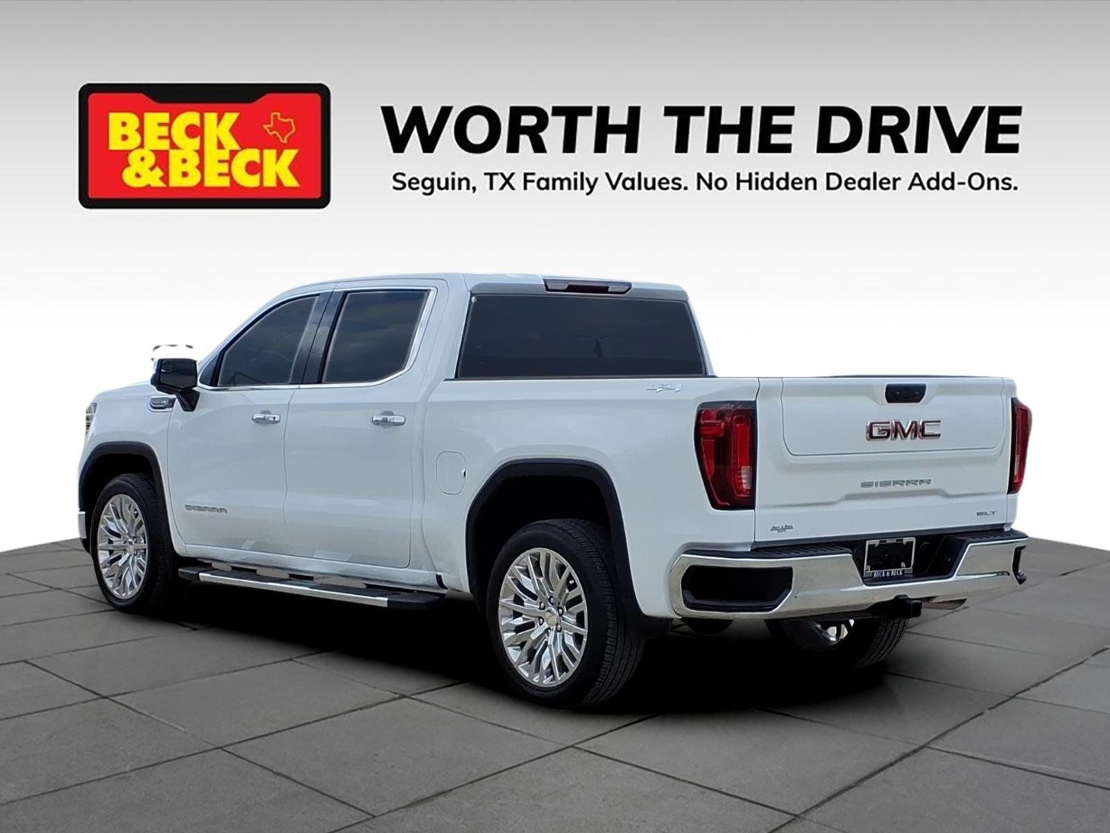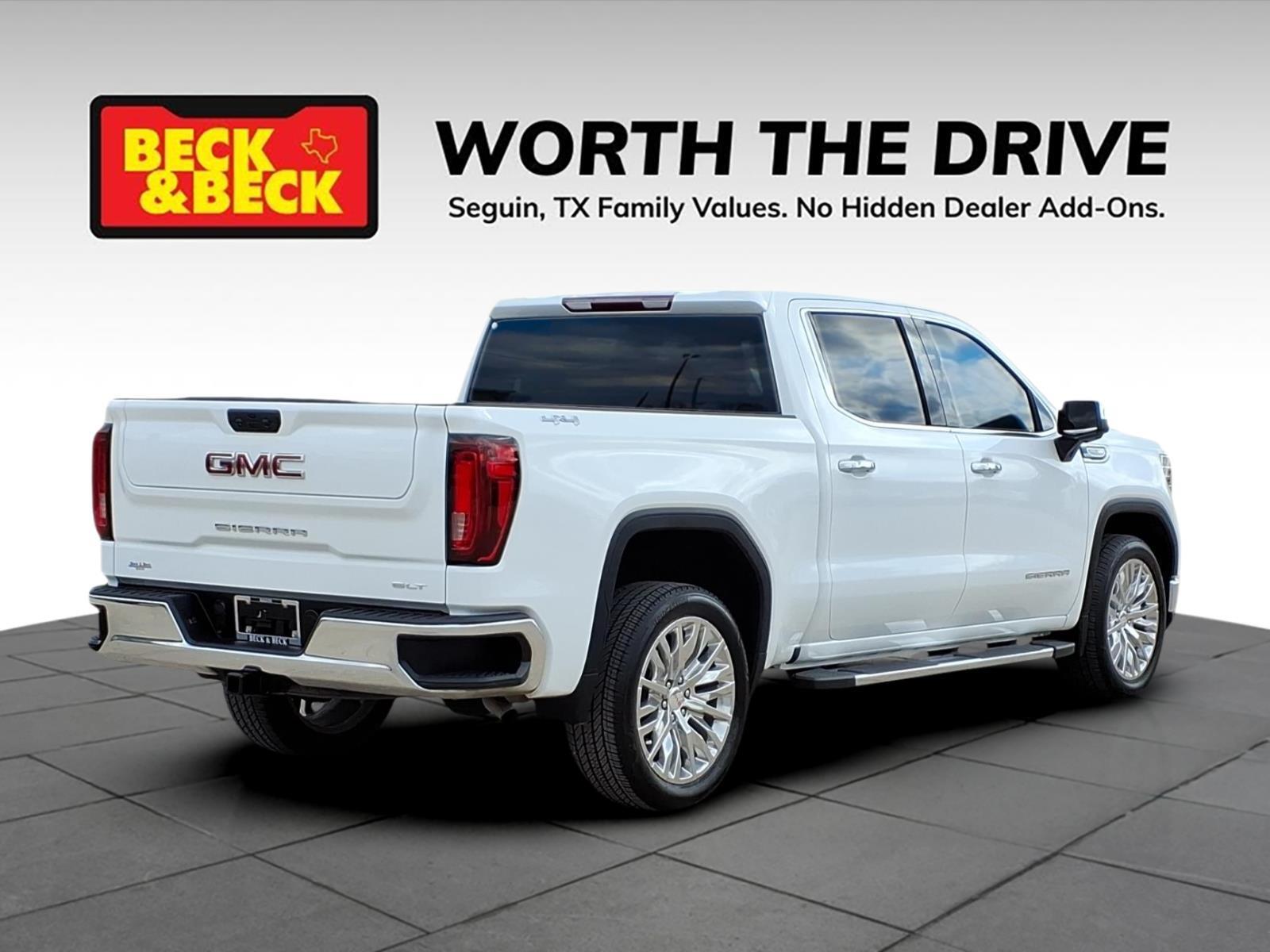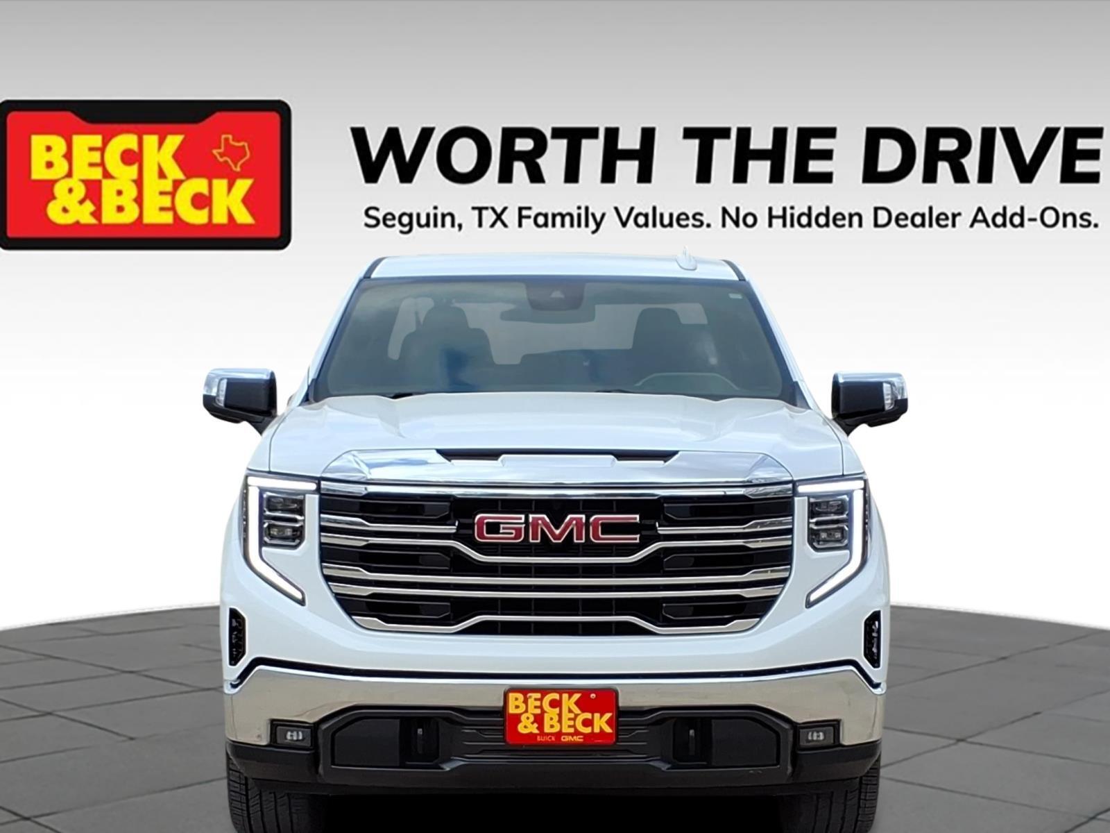 Sierra 1500 SLT, 4D Crew Cab, EcoTec3 5.3L V8, 4WD, Summit White, Dark Walnut/Slate Leather, 120-Volt Bed Mounted Power Outlet, 120-Volt Interior Power Outlet, 170 Amp Alternator, 2 Charge/Data USB Ports, 2 Type-C Charge-Only Rear USB Ports, 6-Speaker Audio System Feature, Apple CarPlay/Android Auto, Auto-Locking Rear Differential, Auxiliary External Transmission Oil Cooler, Chrome Header & Chrome Grille Insert Bars, Color-Keyed Carpeting Floor Covering, Deep-Tinted Glass, Electric Rear-Window Defogger, Front Frame-Mounted Black Recovery Hooks, Front Rain-Sensing Wipers, GMC Connected Access Capable, HD Rear Vision Camera, Hitch Guidance, Hitch View, In-Vehicle Trailering System App, Integrated Trailer Brake Controller, Keyless Open & Start, LED Cargo Area Lighting, Manual Tilt-Wheel & Telescoping Steering Column, Navigation System, OnStar & GMC Connected Services Capable, Perimeter Lighting, Power Door Locks, Power Front Passenger Windows w/Express Up/Down, Power Front Windows w/Driver Express Up/Down, Power Rear Windows w/Express Down, Preferred Equipment Group 4SA, ProGrade Trailering System, Push Button Start, Rear Wheelhouse Liners, Remote Vehicle Starter System, SiriusXM w/360L, Standard Suspension Package, Steering Wheel Audio Controls, Theft Deterrent System (Unauthorized Entry), Trailering Package, Wi-Fi Hotspot Capable.