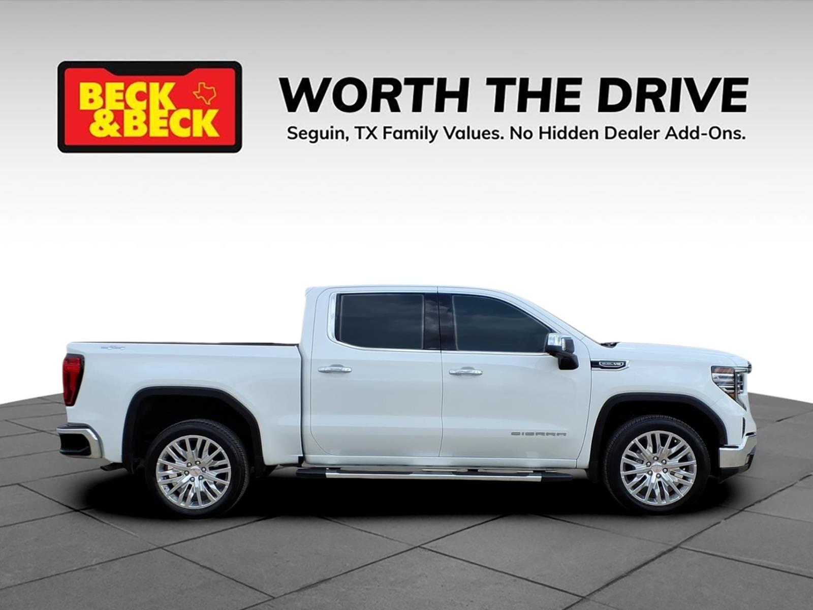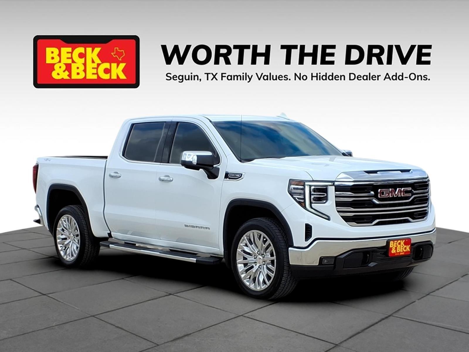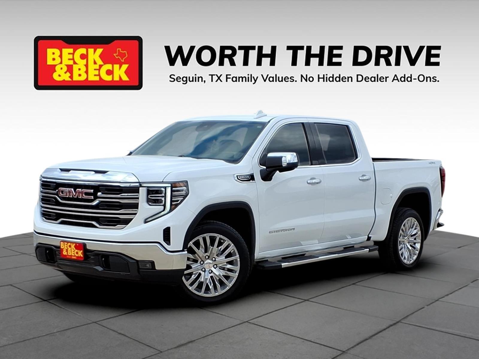Sierra 1500 SLT, 4D Crew Cab, EcoTec3 5.3L V8, 4WD, Summit White, Dark Walnut/Slate Leather, 120-Volt Bed Mounted Power Outlet, 120-Volt Interior Power Outlet, 170 Amp Alternator, 2 Charge/Data USB Ports, 2 Type-C Charge-Only Rear USB Ports, 6-Speaker Audio System Feature, Apple CarPlay/Android Auto, Auto-Locking Rear Differential, Auxiliary External Transmission Oil Cooler, Chrome Header & Chrome Grille Insert Bars, Color-Keyed Carpeting Floor Covering, Deep-Tinted Glass, Electric Rear-Window Defogger, Front Frame-Mounted Black Recovery Hooks, Front Rain-Sensing Wipers, GMC Connected Access Capable, HD Rear Vision Camera, Hitch Guidance, Hitch View, In-Vehicle Trailering System App, Integrated Trailer Brake Controller, Keyless Open & Start, LED Cargo Area Lighting, Manual Tilt-Wheel & Telescoping Steering Column, Navigation System, OnStar & GMC Connected Services Capable, Perimeter Lighting, Power Door Locks, Power Front Passenger Windows w/Express Up/Down, Power Front Windows w/Driver Express Up/Down, Power Rear Windows w/Express Down, Preferred Equipment Group 4SA, ProGrade Trailering System, Push Button Start, Rear Wheelhouse Liners, Remote Vehicle Starter System, SiriusXM w/360L, Standard Suspension Package, Steering Wheel Audio Controls, Theft Deterrent System (Unauthorized Entry), Trailering Package, Wi-Fi Hotspot Capable.