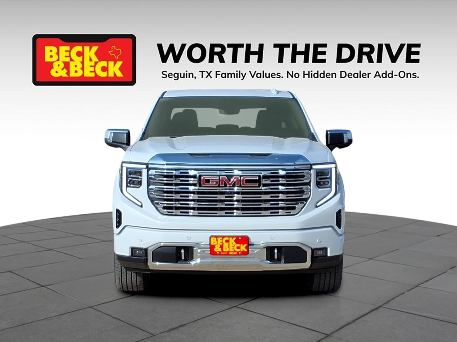 Glacier White Tricoat 2026 GMC Sierra 1500 Denali 4WD 10-Speed Automatic EcoTec3 5.3L V8 Sierra 1500 Denali, 4D Crew Cab, EcoTec3 5.3L V8, 4WD, Glacier White Tricoat, Jet Black w/Forge Perforated Leather Seat Trim, 120-Volt Bed Mounted Power Outlet, 120-Volt Interior Power Outlet, 170 Amp Alternator, 2 Charge/Data USB Ports Inside Center Console, 2 Type-C Charge-Only Rear USB Ports, 2 USB Ports, 3.23 Rear Axle Ratio, Apple CarPlay/Android Auto, Auto-Locking Rear Differential, Auxiliary External Transmission Oil Cooler, Bed View Camera, Chrome Recovery Hooks, Color-Keyed Carpeting Floor Covering, Deep-Tinted Glass, Denali Reserve Package, Electric Rear-Window Defogger, Floor-Mounted Center Console, Front Rain-Sensing Wipers, GMC MultiPro Power Steps, HD Surround Vision, Heated 2nd Row Outboard Seats, Heavy-Duty Air Filter, Hill Descent Control, Hitch Guidance, Hitch View, Integrated Trailer Brake Controller, LED Cargo Area Lighting, Multicolor 15Diagonal Head-Up Display, OnStar Services Capable, Perimeter Lighting, Power Door Locks, Power Sunroof, Preferred Equipment Group 5SA, Premium Bose 7-Speaker Sound System, Push Button Start, Rear Camera Mirror, Rear Cross Traffic Braking, Rear Pedestrian Detection, Rear Wheelhouse Liners, Remote Vehicle Starter System, Steering Wheel Audio Controls, Technology Package, Trailer Camera Provisions, Trailer Side Blind Zone Alert, Trailering Package, Universal Home Remote, Wheels: 22x 9Painted Aluminum, Wi-Fi Hotspot Capable, Wireless Charging. Price includes: $1500 - Bonus Cash. Exp. 02/02/2026 $1750 - Purchase Allowance. Exp. 02/02/2026