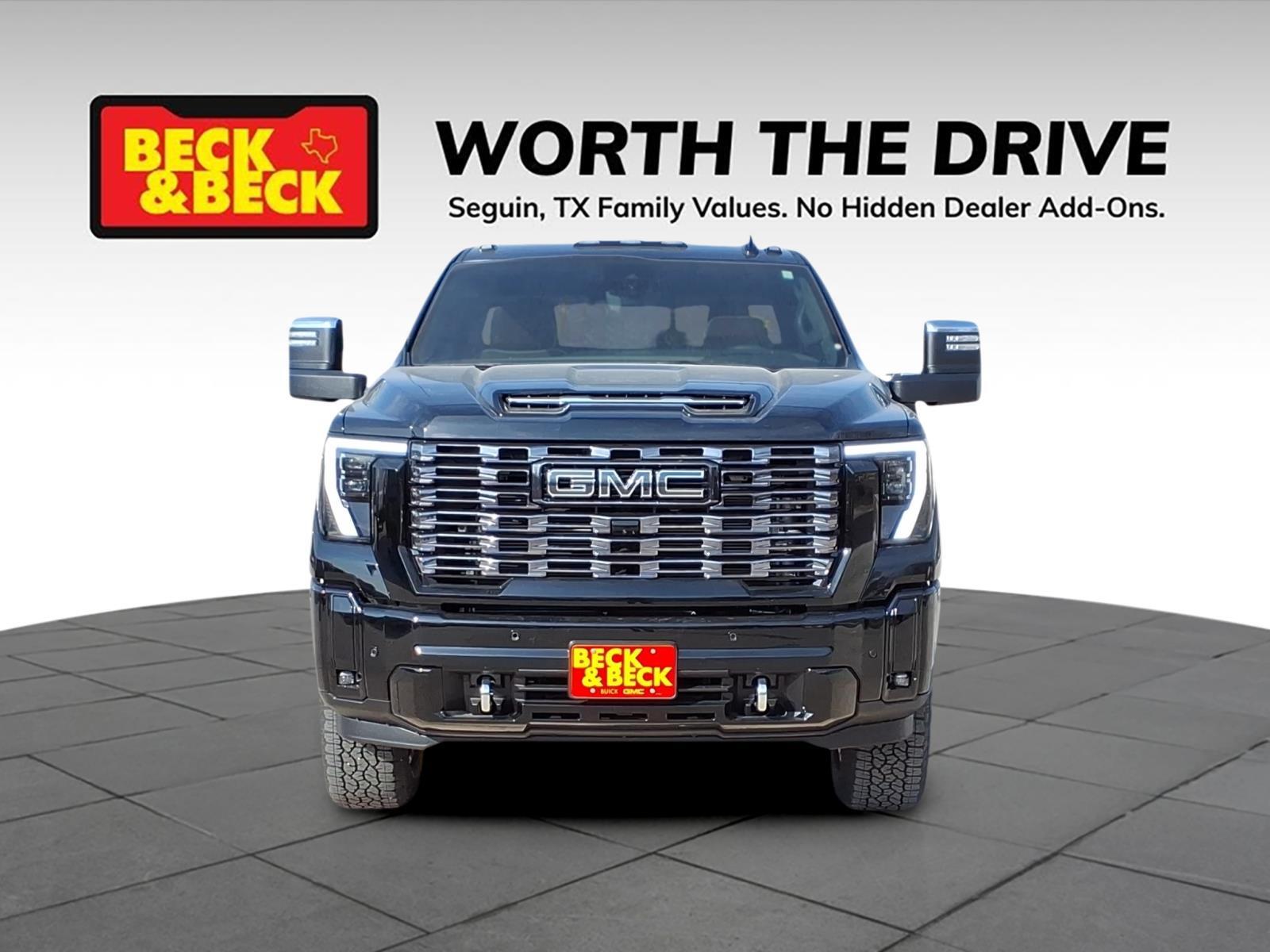 Onyx Black 2026 GMC Sierra 2500HD Denali Ultimate 4WD 10-Speed Automatic Duramax 6.6L V8 Turbodiesel Sierra 2500HD Denali Ultimate, 4D Crew Cab, Duramax 6.6L V8 Turbodiesel, 10-Speed Automatic, 4WD, Onyx Black, Alpine Umber w/Full Grain Leather Seat Trim, 120-Volt Bed Mounted Power Outlet, 120-Volt Instrument Panel Power Outlet, 2 Charge-Only Rear USB Ports, 2 Charge/Data USB Ports Inside Center Console, 2 USB Ports, 2-Speed Active Transfer Case, Apple CarPlay/Android Auto, Bed View Camera with Two Trailer Camera Provisions, Bose Premium Series 12-Speaker System, Deep-Tinted Glass, Electric Rear-Window Defogger, Floor-Mounted Center Console, Front Rain-Sensing Wipers, Gooseneck/5th Wheel Prep Package, HD Surround Vision, Heated 2nd Row Outboard Seats, Heated Driver and Front Outboard Passenger Seats, Hill Descent Control, Inside Rearview Auo-Dimming Rear Camera Mirror, Keyless Open and Start, LED Cargo Area Lighting, LED Smoked Amber Roof Marker Lamps, Manual Tilt-Wheel/Telescoping Steering Column, Multicolor 15Diagonal Head-Up Display, Off-Road Suspension, OnStar Services Capable, Power Front Passenger Windows with Express Up/Down, Power Sliding Rear Window with Defogger, Power Sunroof, Preferred Equipment Group 5SB, Push Button Start, Rear Cross Traffic Alert, Rear Wheelhouse Liners, Remote Vehicle Starter System, Safety Alert Seat, Signature Denali Ultimate Grille in Vadar Chrome, SiriusXM with 360L Trial Subscription, Spray-on Pickup Bedliner with GMC Logo, Steering Wheel Audio Controls, Technology Package, Trailer Cam Provisions and Trailer Viewing Software, Trailer Side Blind Zone Alert, Trailer Tire Pressure Monitor Sensors, Ultrasonic Front and Rear Park Assist, Unauthorized Entry Theft-Deterrent System, Universal Home Remote, Ventilated Driver and Front Passenger Seats, Wireless Charging, Wireless Phone Projection, X31 Off-Road Package. Recent Arrival! Price includes: $500 - Purchase Allowance. Exp. 02/02/2026