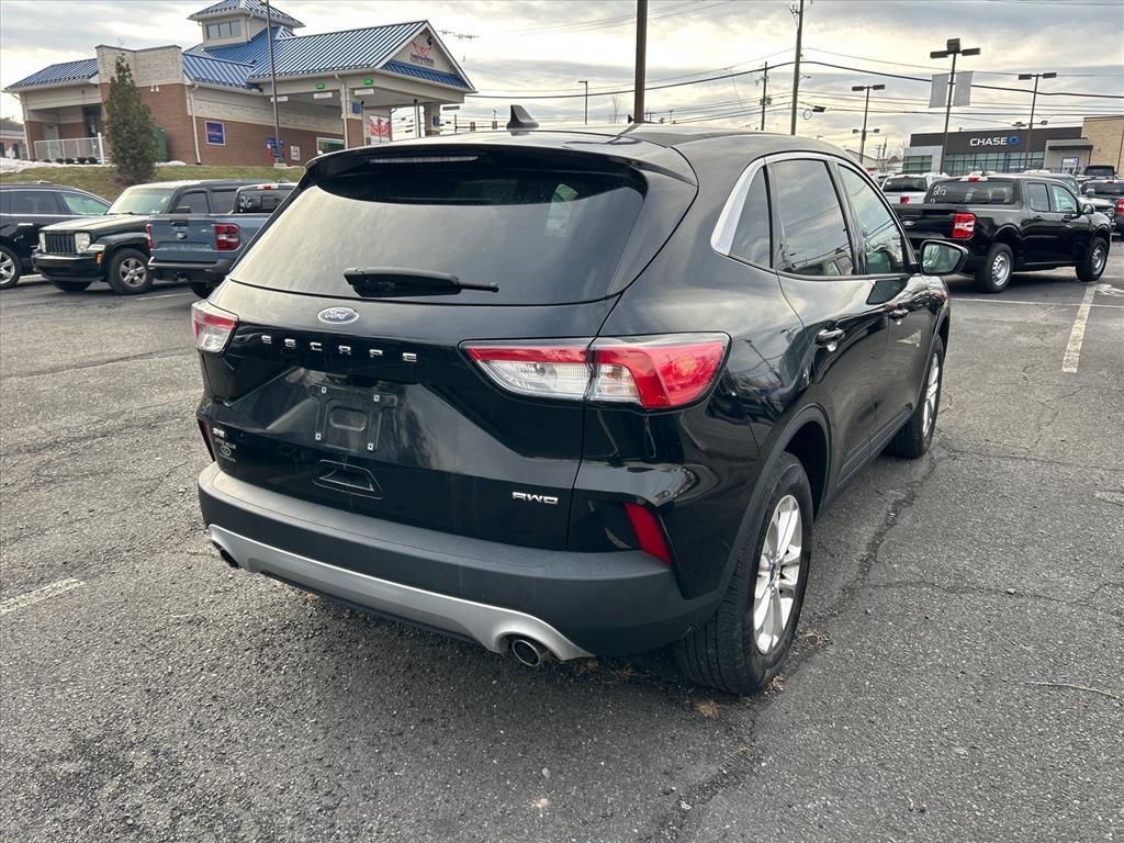 This 2021 Ford Escape SE is a reliable and efficient SUV with low mileage. It has an EcoBoost 1.5L Turbo I3 181hp 190 lb-ft engine, turbocharged, all wheel drive, and an agate black (um) exterior. It has an impressive fuel economy of 26 mpg in the city and 31 mpg on the highway, making it an ideal choice for those who commute or take long road trips. It also has a dark earth gray (4h) interior that is both stylish and comfortable. The vehicle also comes with blind spot sensor, hill start assist, and on demand four wheel drive for added safety and control. It has been awarded a 5 out of 5 star crash test rating, making it an excellent choice for anyone looking for a reliable and efficient car.