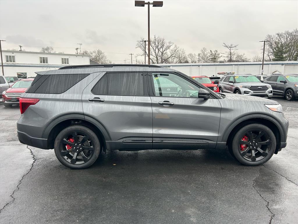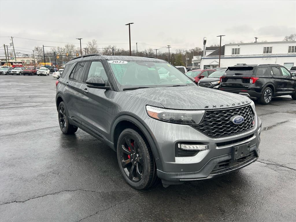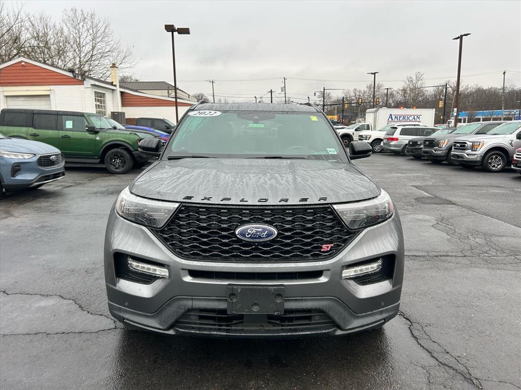 This vehicle is a 2022 Ford Explorer ST SUV all wheel drive, with a 3.0 liter 6 cylinder engine and twin turbo. It has driven 39,279 miles and its fuel economy in city is 18 mpg and fuel economy on highway is 24 mpg. The exterior of this motorcar is carbonized gray metallic and it has an ebony c6 interior. Vehicle features include blind spot sensor, hill start assist, on demand four wheel drive, and more. This motorcar is sure to turn heads with its sleek design and impressive performance.
