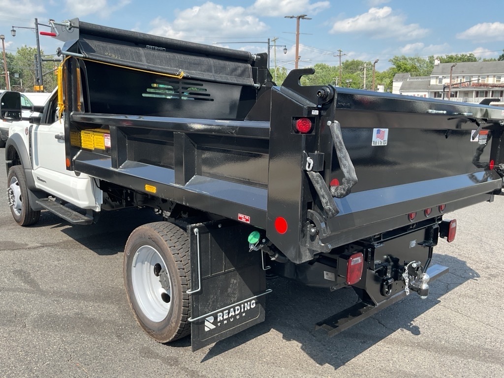 This vehicle is a 2025 Ford F-550SD XL Reading Dump, and it has an oxford white exterior with a medium dark slate interior. It has been designed to be as efficient as possible, with a 6.8L V10 engine that produces 400 horsepower and 800 lb-ft of torque. This vehicle is perfect for anyone looking for a reliable and powerful ride that can get them from point A to point B in style. With its advanced technology and sleek design, this car is sure to turn heads wherever it goes.