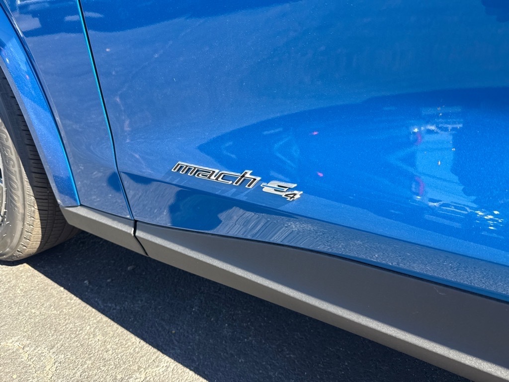 The Ford Mustang Mach-E Premium is a 2025 all wheel drive vehicle that is sure to turn heads. With its velocity blue metallic exterior and black onyx interior, this car is sure to turn heads wherever it goes. It has a 5 out of 5 star crash test rating and features such as touch screen display, Bluetooth audio connection, blind spot sensor, on demand four wheel drive, navigation system with voice recognition, and leather seats. With an estimated fuel economy of 104 mpg in the city and 96 mpg on the highway, this car is sure to save you money on gas. With its advanced technology and safety features, the Ford Mustang Mach-E Premium is the perfect car for anyone looking for an all around great ride.