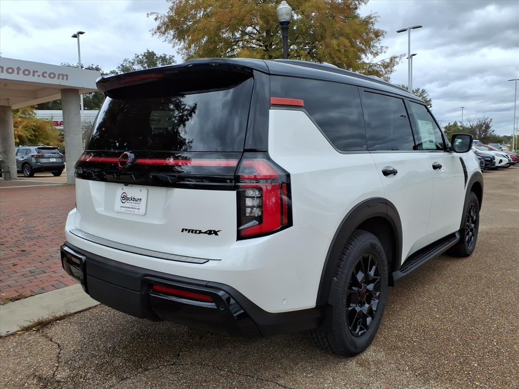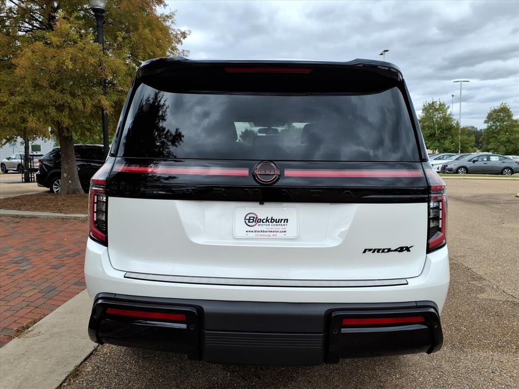 4WD. Aspen White Tricoat/Super Black 2026 Nissan Armada PRO-4X 4WD 9-Speed Automatic 3.5L DOHCRecent Arrival!Blackburn Motor Company is a family owned and operated dealership in Vicksburg, MS that has been servicing central Mississippi since 1936 with New Chrysler, Dodge, Jeep, RAM as well as Nissan! Delivering to thousands of Customers in Jackson and Vicksburg, Mississippi as well as Monroe, Louisiana. We will make sure that your next car buying experience is a great one! Visit us at www.blackburnmotor.com today!