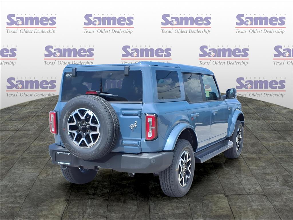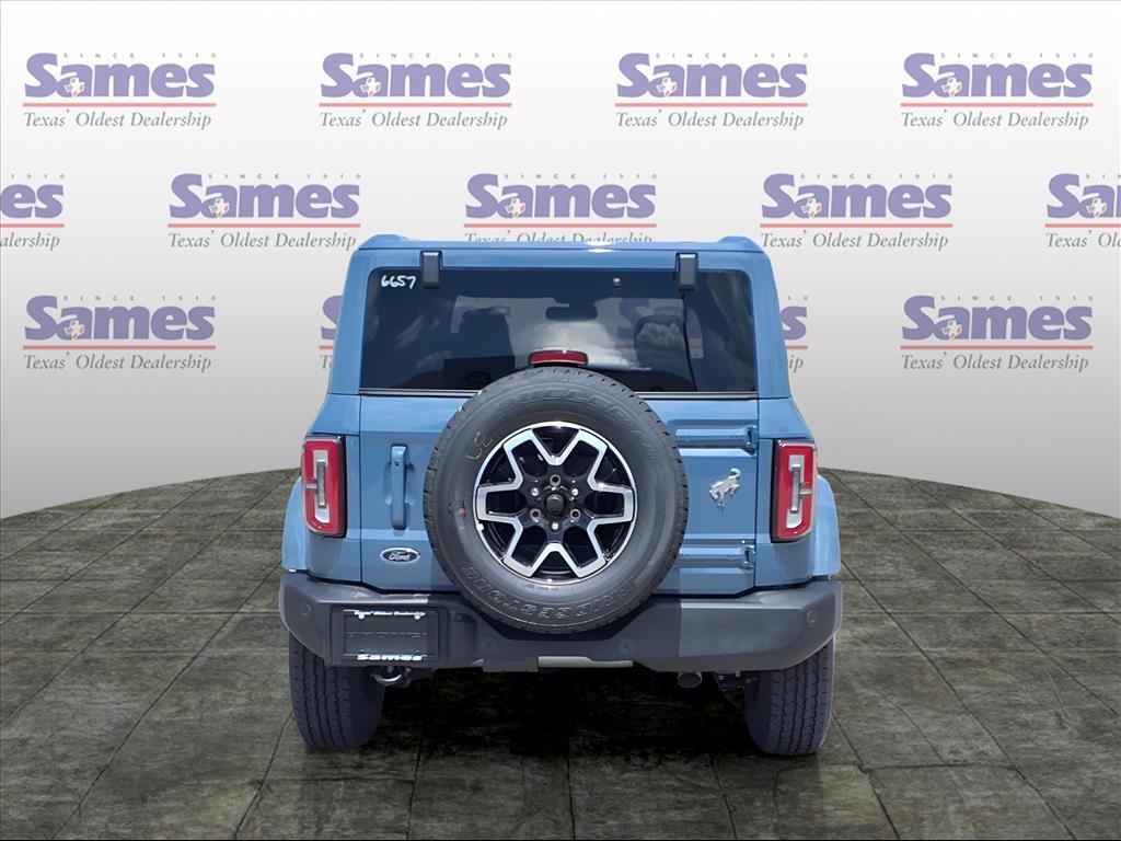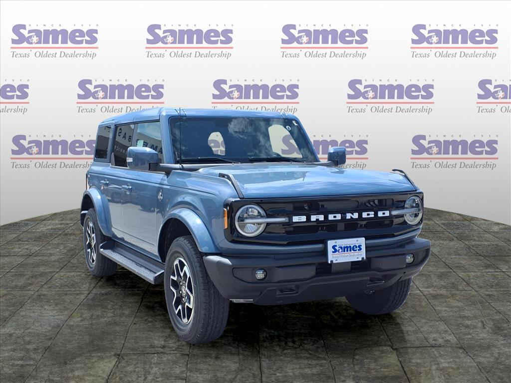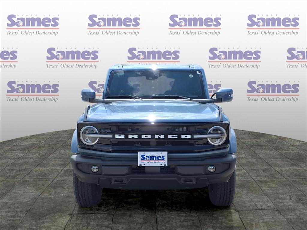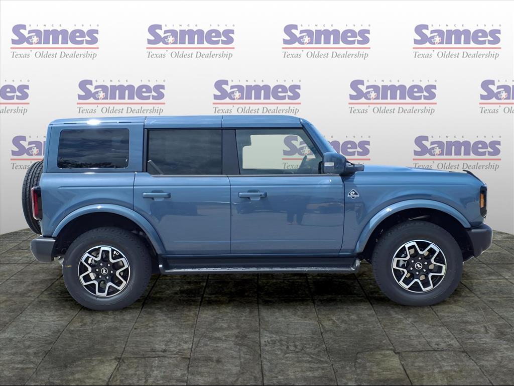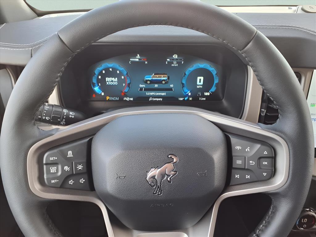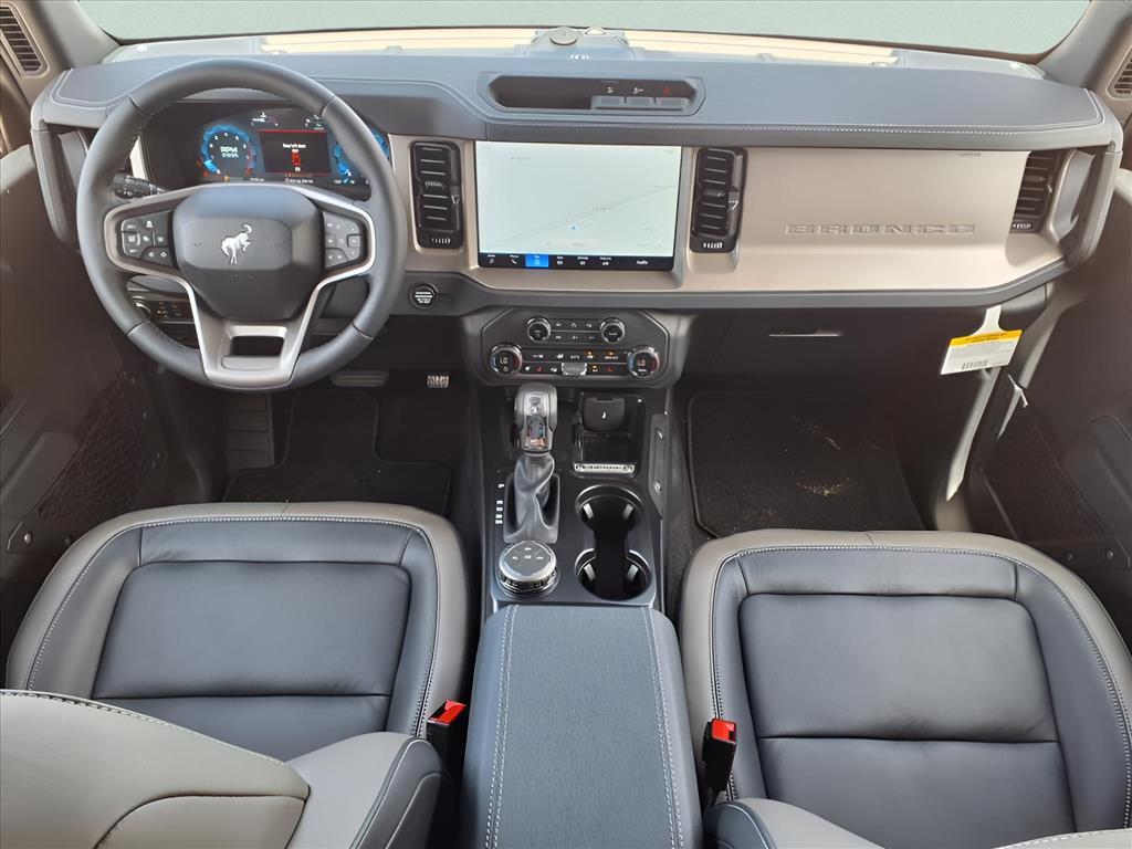 This 2025 Ford Bronco Outer Banks in Azure Gray Metallic Tri-Coat comes with the following features: 2.7L EcoBoost V6 10-Speed Automatic 4WD Equipment Group 314A Lux Package (360-Degree Camera, Adaptive Cruise Control, Evasive Steering Assist, Front Parking Sensors, Information on Demand Panel, Radio: B&O Sound System by Bang & Olufsen, Sideview Mirrors, and Universal Garage Door Opener), 18Bright Machined Aluminum Wheels, 3.73 Axle Ratio, 4-Wheel Disc Brakes, 7 Speakers, ABS brakes, Air Conditioning, Alloy wheels, AM/FM radio: SiriusXM with 360L, AM/FM Stereo, Auto High-beam Headlights, Auto-dimming Rear-View mirror, Automatic temperature control, Brake assist, Compass, Connected Navigation, Delay-off headlights, Driver door bin, Driver vanity mirror, Dual front impact airbags, Dual front side impact airbags, Electronic Stability Control, Emergency communication system: 911 Assist, Exterior Parking Camera Rear, Front anti-roll bar, Front Bucket Seats, Front Center Armrest, Front dual zone A/C, Front fog lights, Front License Plate Bracket, Front reading lights, Front wheel independent suspension, Fully automatic headlights, Hard Top Sound Deadening Headliner, Heated door mirrors, Heated front seats, Heated Leather-Trimmed/Vinyl Bucket Seats, Heated steering wheel, Illuminated entry, Integrated roll-over protection, Leather Shift Knob, Low tire pressure warning, Navigation system: Connected Navigation, Occupant sensing airbag, Outside temperature display, Overhead airbag, Overhead console, Painted Hard Top, Panic alarm, Passenger door bin, Passenger vanity mirror, Power door mirrors, Power driver seat, Power passenger seat, Power steering, Power windows, Radio data system, Rear seat center armrest, Rear-Window Defroster & Washer, Remote keyless entry, Security system, SiriusXM w/360L, Speed control, Split folding rear seat, Steering wheel mounted audio controls, SYNC 4, Tachometer, Telescoping steering wheel, Tilt steering wheel, Traction control, Trip computer, Var