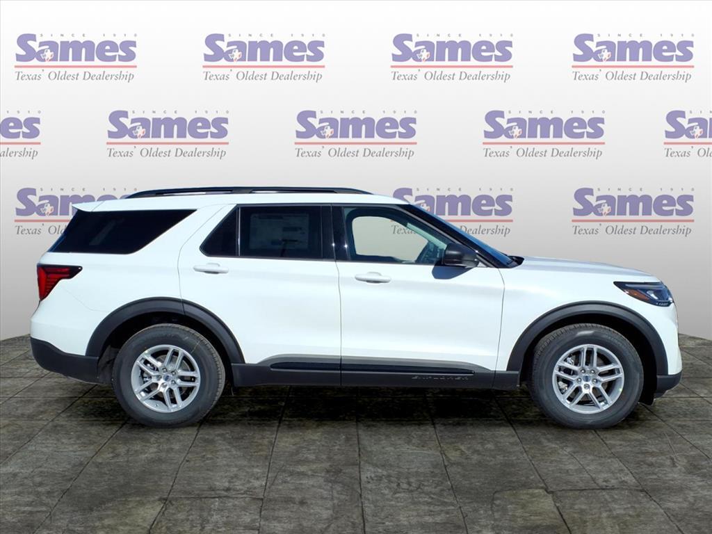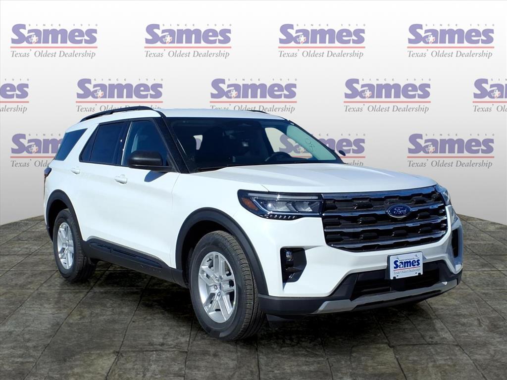 This 2026 Ford Explorer Active in Star White Metallic Tri-Coat comes with the following features: 2.3L EcoBoost I-4 10-Speed Automatic RWD Active Comfort Package (Front Fascia, Heated ActiveX Seating Material Captains Chairs, Heated Steering Wheel, Remote Start System, and Second Row Hvac Controls), Equipment Group 200A Standard Package (8 USB Ports, Active Badging, Active Noise Cancellation, AM/FM Stereo, Black Lower Bodyside Cladding with Chrome Accent, Black Roof-Rack Side Rails, Manual-Folding Sideview Mirrors, Power Liftgate, Vinyl-Wrapped Steering Wheel, and Wheels: 18Sparkle Silver-Painted Aluminum), 3rd row seats: bench, 4-Wheel Disc Brakes, 6 Speakers, ABS brakes, Air Conditioning, Alloy wheels, AM/FM radio: SiriusXM with 360L, Apple CarPlay/Android Auto, Auto High-beam Headlights, Automatic temperature control, Brake assist, Bumpers: body-color, Compass, Delay-off headlights, Driver door bin, Driver vanity mirror, Dual front impact airbags, Dual front side impact airbags, Electronic Stability Control, Emergency communication system: 911 Assist, Exterior Parking Camera Rear, Four wheel independent suspension, Front anti-roll bar, Front Bucket Seats, Front Center Armrest, Front dual zone A/C, Front License Plate Bracket, Front reading lights, Fully automatic headlights, Heated door mirrors, Illuminated entry, Internet access capable: FordPass Connect 5G, Knee airbag, Low tire pressure warning, Navigation System, Occupant sensing airbag, Outside temperature display, Overhead airbag, Overhead console, Panic alarm, Passenger door bin, Passenger vanity mirror, Power driver seat, Power steering, Power windows, Rear air conditioning, Rear anti-roll bar, Rear reading lights, Rear window defroster, Rear window wiper, Remote keyless entry, SecuriCode Keyless Entry Keypad, Security system, Speed control, Speed-sensing steering, Speed-Sensitive Wipers, Split folding rear seat, Spoiler, Steering wheel mounted audio controls, Tachometer, Telescoping steering wheel, Tilt steering wheel, Traction control, Trip computer, Unique Cloth Captains Chairs, and Variably intermittent wipers. Sames Auto Group stores have been in business for over 115 years, as part of the Oldest Auto Group in Texas were committed to providing exceptional service before, during, and after your purchase. Our expert team at Sames Ford of Bastrop will ensure you drive away completely satisfied. Schedule your virtual consultation or test drive today. No hassle remote delivery to Houston, Aust