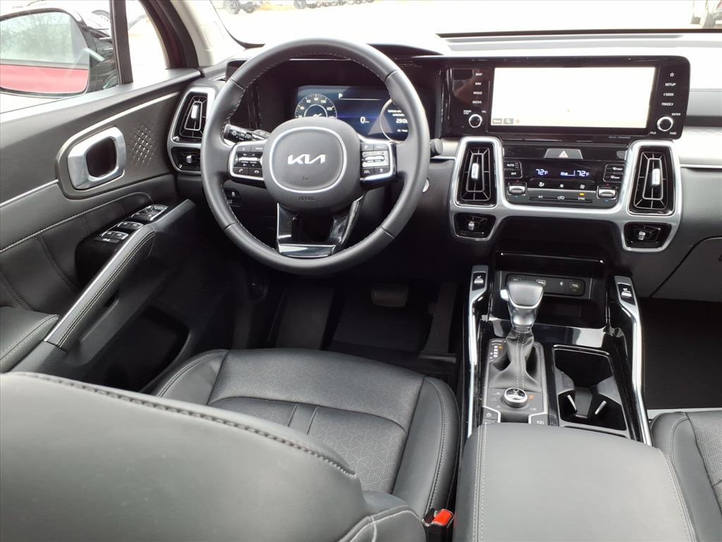 New Price! CARFAX One-Owner. Clean CARFAX. ** Clean CarFax**, **NAVIGATION**, **CARFAX 1 OWNER**, **LEATHER**, Sorento SX, 4D Sport Utility, 2.5L I4 DGI Turbocharged DOHC 16V LEV3-ULEV70 281hp, 8-Speed DCT, AWD, Passion Red, Black w/Perforated Genuine Leather Seat Trim, Navigation System, 3.316 Axle Ratio, 3rd row seats: split-bench, 4-Wheel Disc Brakes, 6 Speakers, ABS brakes, Air Conditioning, Alloy wheels, AM/FM radio: SiriusXM, Apple CarPlay & Android Auto, Auto High-beam Headlights, Auto-dimming Rear-View mirror, Automatic temperature control, Brake assist, Bumpers: body-color, Cargo Cover, Cargo Net, Carpet Floor Mats, Carpeted Cargo Mat w/Seatback Protection, Delay-off headlights, Driver door bin, Driver vanity mirror, Dual front impact airbags, Dual front side impact airbags, Electronic Stability Control, Emergency communication system, Exterior Parking Camera Rear, Four wheel independent suspension, Front anti-roll bar, Front Bucket Seats, Front Center Armrest, Front dual zone A/C, Front fog lights, Front reading lights, Fully automatic headlights, Heated door mirrors, Heated Front Bucket Seats, Heated front seats, Illuminated entry, Knee airbag, Leather steering wheel, Low tire pressure warning, Occupant sensing airbag, Outside temperature display, Overhead airbag, Overhead console, Panic alarm, Passenger door bin, Passenger vanity mirror, Power door mirrors, Power driver seat, Power Liftgate, Power moonroof, Power passenger seat, Power steering, Power windows, Radio data system, Radio: AM/FM Audio System, Rain sensing wipers, Rear air conditioning, Rear anti-roll bar, Rear reading lights, Rear window defroster, Rear window wiper, Remote keyless entry, Roof rack: rails only, Security system, Smart Key w/ Push Button and Remote Start, Speed control, Speed-sensing steering, Split folding rear seat, Spoiler, Steering wheel mounted audio controls, SynTex Artificial Leather Seat Trim, Tachometer, Telescoping steering wheel, Tilt steering wheel, Traction control, Trip computer, Turn signal indicator mirrors, Variably intermittent wipers, Wheels: 8.5J x 20 Gloss Black Alloy, **ADAPTIVE CRUISE**, **PANORAMIC MOONROOF**, **HEATED/COOLED SEATS**, Sorento SX, 4D Sport Utility, 2.5L I4 DGI Turbocharged DOHC 16V LEV3-ULEV70 281hp, 8-Speed DCT, AWD, Passion Red, Black w/Perforated Genuine Leather Seat Trim, Navigation System.Odometer is 23103 miles below market average! 22/27 City/Highway MPG