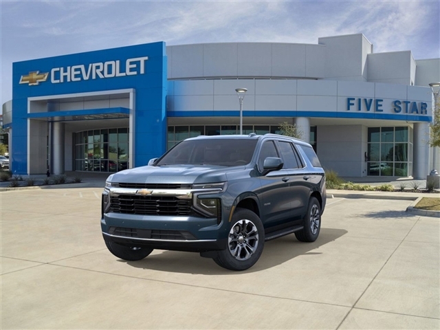 Black Cloth, New Feature. Recent Arrival! 2026 Chevrolet Tahoe LS EcoTec3 5.3L V8 10-Speed Automatic with Overdrive RWD ***Dealer add ons and accessories are not included in the advertised price. Visit us at www.sampacksfivestarchevrolet.com for more details. This 2026 Lakeshore Blue Metallic Chevrolet Tahoe LS RWD is well equipped and includes these features and benefits: All-Weather Liner Protection Package (1st and 2nd Rows All-Weather Floor Liners, 3rd Row All-Weather Floor Liners, and All-Weather Cargo Mat), License Plate Front Mounting Package, Preferred Equipment Group 1LS (1st and 2nd Row Color-Keyed Carpeted Floor Mats, 3-Spoke Wrapped Steering Wheel, 3rd Row Manual 60/40 Split-Folding Bench Seats, Color-Keyed Carpeting Floor Covering, Floor Console with Storage Area, Front Bucket Seats, Frontal Driver and Outboard Passenger Airbags, Key Card, Remote Start, SiriusXM with 360L Trial Subscription, and USB Ports), Black Cloth, 2-Way Power Driver Lumbar Seat Adjuster, 2-Way Power Front Passenger Lumbar Seat Adjuster, 3.23 Rear Axle Ratio, 3rd row seats: split-bench, 4-Wheel Disc Brakes, 6 Speakers, 6-Speaker Audio System Feature, 6-Way Power Front Passenger Seat Adjuster, 8-Way Power Driver Seat Adjuster, ABS brakes, Air Conditioning, Alloy wheels, AM/FM radio: SiriusXM with 360L, Apple CarPlay/Android Auto, Auto High-beam Headlights, Automatic temperature control, Brake assist, Bumpers: body-color, Compass, Delay-off headlights, Deleted Mobile Service Plus, Driver door bin, Driver vanity mirror, Dual front impact airbags, Dual front side impact airbags, Electronic Stability Control, Emergency communication system: OnStar and Chevrolet connected services capable, Exterior Parking Camera Rear, Four wheel independent suspension, Front anti-roll bar, Front Center Armrest, Front dual zone A/C, Front reading lights, Fully automatic headlights, Heated door mirrors, Illuminated entry, Low tire pressure warning, Navigation system: Google built-in compatibility (select service plan required, terms and limitations apply), Occupant sensing airbag, Outside temperature display, Overhead airbag, Overhead console, Panic alarm, Passenger door bin, Passenger vanity mirror, Power door mirrors, Power driver seat, Power passenger seat, Power steering, Power windows, Premium audio system: Chevrolet Infotainment 3, Premium Cloth Seat Trim, Premium Smooth Ride Suspension, Radio data system, Radio: 17.7Diagonal Advanced Color LCD Display, Rain sensing wipers, Rear air cond