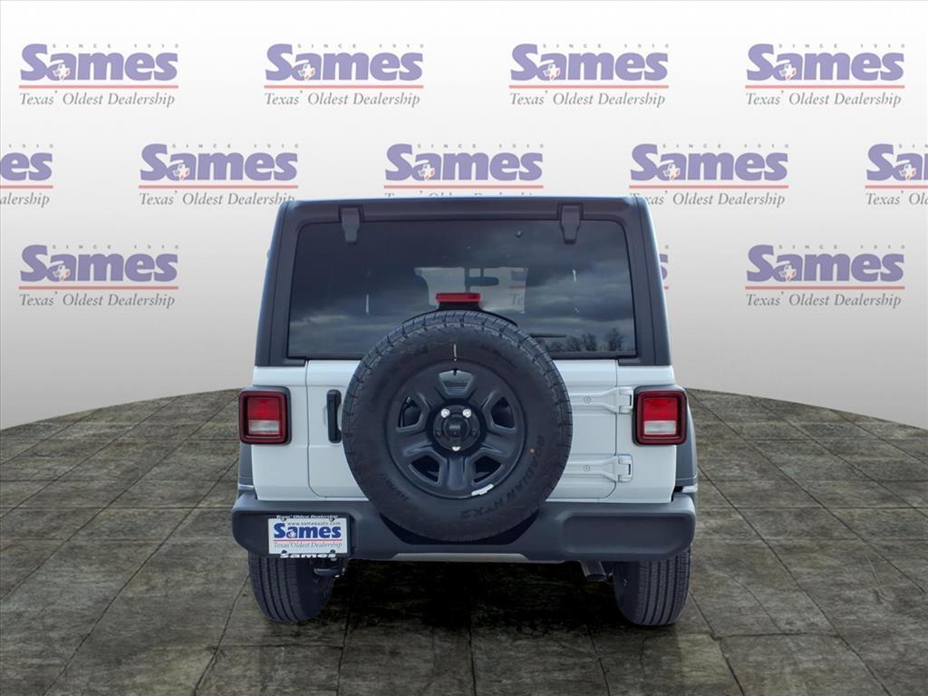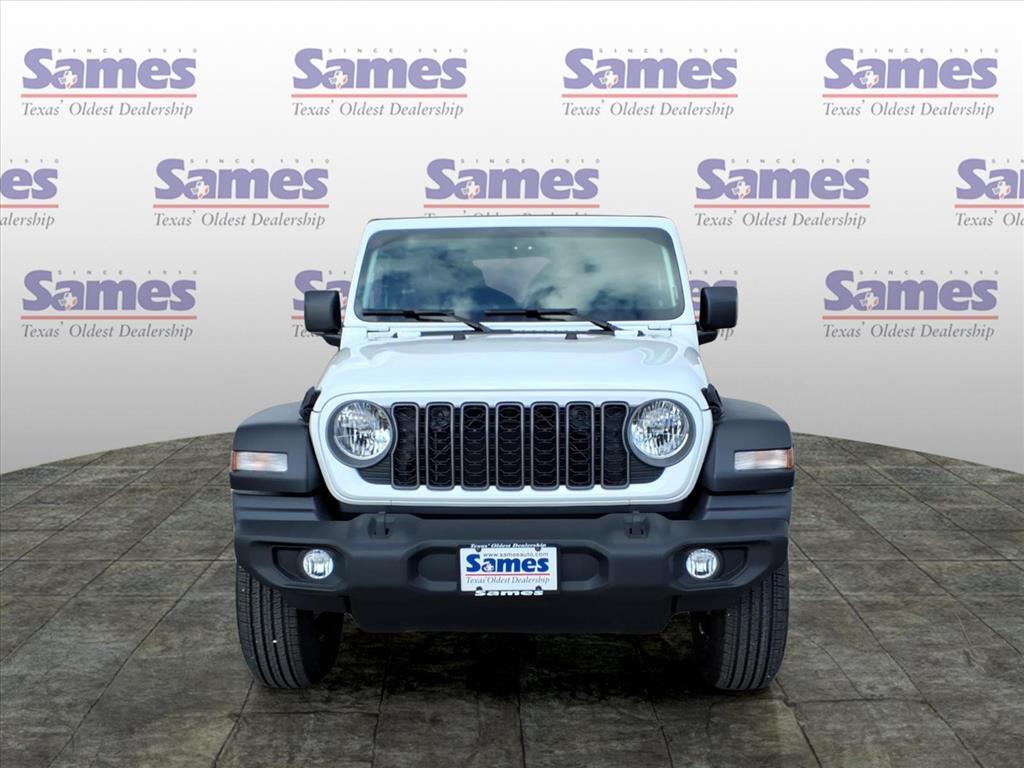 This 2026 Jeep Wrangler Sport in bright white clearcoat comes with the following features: 2.0L I4 DOHC 8-Speed Automatic 4WD Quick Order Package 22B Sport, 12.3Touchscreen Display, 3.45 Overall Top Gear Ratio, 4-Wheel Disc Brakes, 4G LTE Wi-Fi Hot Spot, 8 Speakers, ABS brakes, Air Conditioning, AM/FM radio: SiriusXM with 360L, Apple CarPlay, Apple CarPlay/Android Auto, Aux Battery, Black 3-Piece Hard Top, Brake assist, Cloth Low-Back Bucket Seats, Compass, Connectivity - US/Canada, Deep Tint Sunscreen Windows, Delay-off headlights, Driver door bin, Driver vanity mirror, Dual front impact airbags, Dual front side impact airbags, Electronic Stability Control, For More Info, Call 800-643-2112, Freedom Panel Storage Bag, Front anti-roll bar, Front Bucket Seats, Front Center Armrest w/Storage, Front fog lights, Front reading lights, Google Android Auto, Illuminated entry, Integrated Center Stack Radio, Integrated roll-over protection, Jeep Trail Rated Kit, Low tire pressure warning, MOPAR All-Weather Floor Mats, Non-Lock Fuel Cap Without Discriminator, Normal Duty Suspension, Occupant sensing airbag, Outside temperature display, Overhead airbag, Panic alarm, ParkView Rear Back-Up Camera, Passenger door bin, Passenger vanity mirror, Power steering, Power windows, Radio data system, Radio: Uconnect 5 with 12.3Display, Rear anti-roll bar, Rear reading lights, Rear Window Defroster, Rear Window Wiper/Washer, Remote keyless entry, SiriusXM Radio Service, SiriusXM with 360L, Speed control, Split folding rear seat, Steering wheel mounted audio controls, Stop-Start Dual Battery System, Tachometer, Telescoping steering wheel, Tilt steering wheel, Traction control, Trip computer, Variably intermittent wipers, and Wheels: 17x 7.5Black Steel Styled. Sames Auto Group stores have been in business for over 115 years, as part of the Oldest Auto Group in Texas were committed to providing exceptional service before, during, and after your purchase. Our expert team at Sames Chrysler Dodge Jeep Ram of Bastrop will ensure you drive away completely satisfied. Schedule your virtual consultation or test drive today. No hassle remote delivery to Houston, Austin and San Antonio and the rest of Texas available upon request.