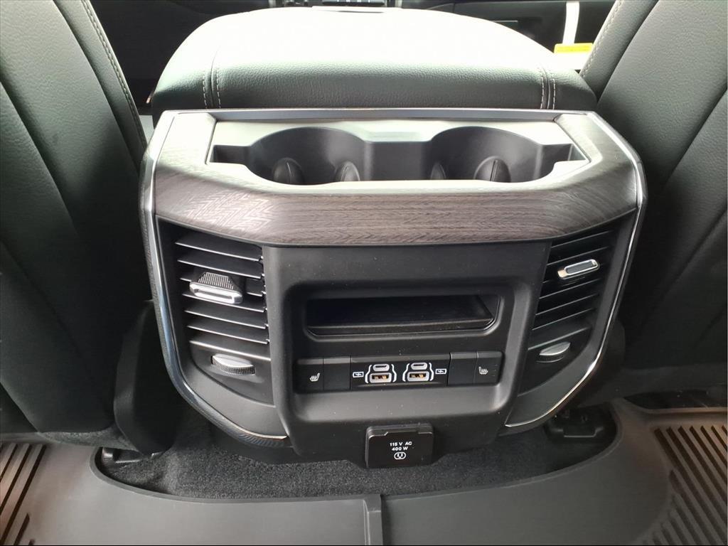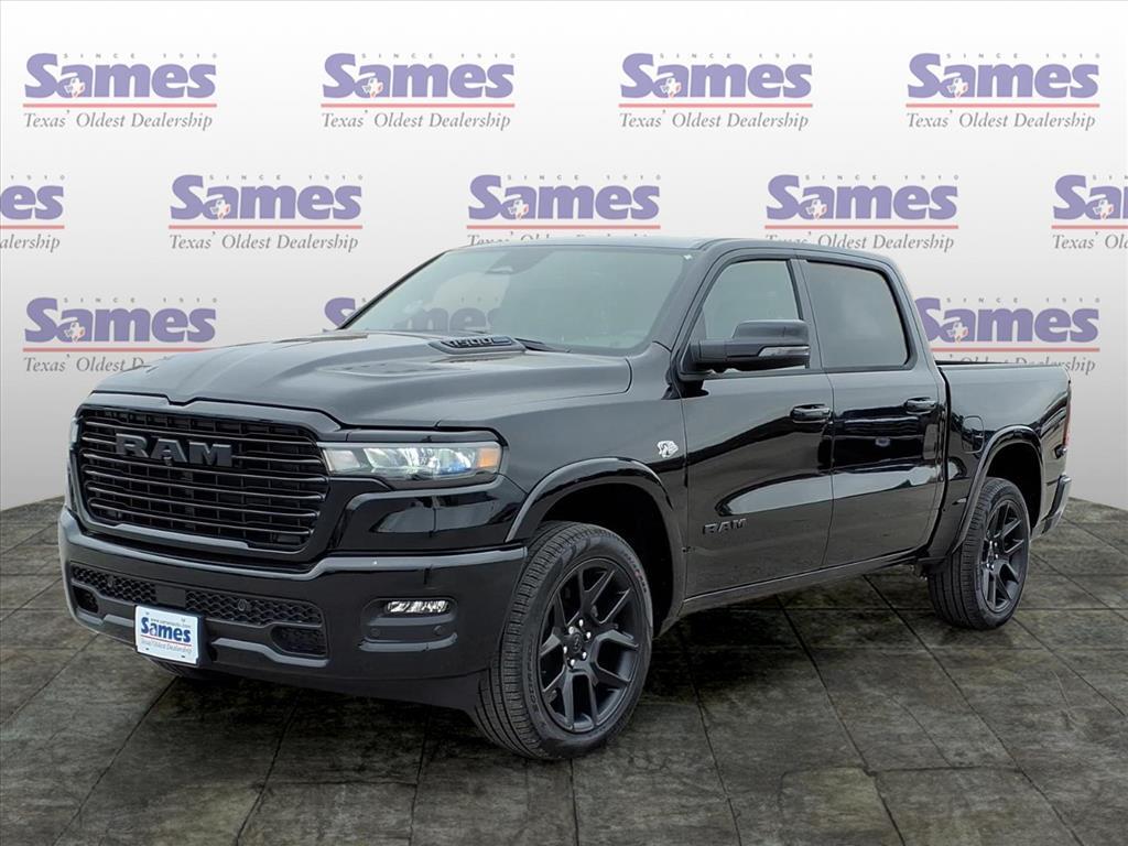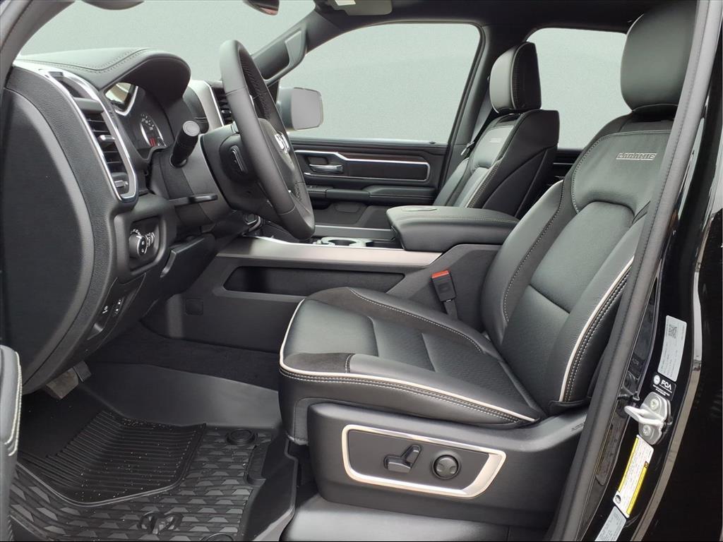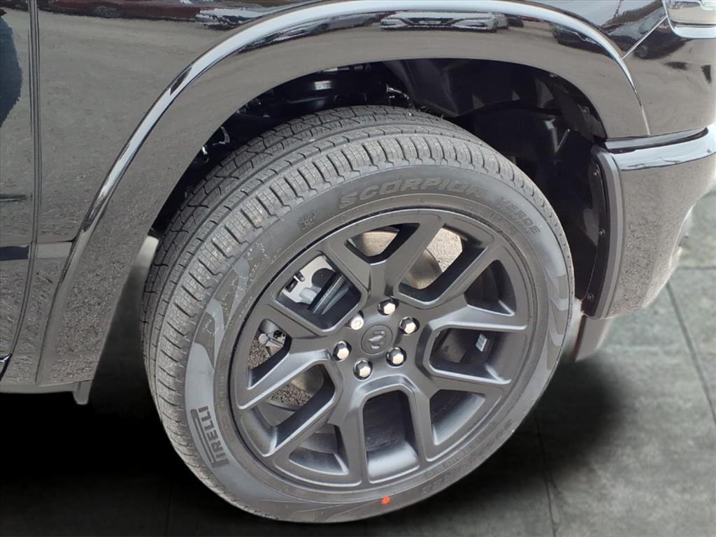 This 2026 Ram 1500 Laramie in Diamond Black Crystal Pearlcoat comes with the following features: HEMI 5.7L V8 Multi Displacement VVT eTorque 8-Speed Automatic 4WD Laramie Level 1 Equipment Group (Rain Sensitive Windshield Wipers and Remote Tailgate Release), Night Edition (Accent Color Door Handles, Accent Color Premium Power Mirrors, Accent Color Tailgate Handle, Anti-Spin Differential Rear Axle, Auto Power-Folding Mirrors, Auto-Dimming Exterior Driver Mirror, Black Exterior Truck Badging, Black Headlamp Bezels, Black Interior Accents, Black Painted Exterior Mirrors Caps, Black Tail Lamp Bezels, Body Color Front Bumper, Body Color Rear Bumper with Step Pads, Convex Wide-Angle Exterior Mirror Insert, Dual Exhaust with Black Tips, Exterior Mirrors Approach Lamps, Exterior Mirrors Courtesy Lamps, Exterior Mirrors with Heating Element, Exterior Mirrors with Memory, Exterior Mirrors with Supplemental Signals, Grille Surround 3 Black Texture 2 Black, Pirelli Brand Tires, Proximity Approach/Departure Lamps, RAM Grille Badge - Black, Sport Performance Hood, and Wheels: 22x 9Forged Aluminum), Quick Order Package 27H Laramie, 10 Speakers, 4-Wheel Disc Brakes, 4G LTE Wi-Fi Hot Spot, ABS brakes, Active Noise Control System, Air Conditioning, Alloy wheels, AM/FM radio: SiriusXM with 360L, Apple CarPlay/Android Auto, Audio memory, Auto High-beam Headlights, Auto-dimming door mirrors, Auto-dimming Rear-View mirror, Automatic temperature control, Brake assist, Bumpers: chrome, Chrome Exterior Mirrors, Compass, Connected Travel and Traffic Services, Connectivity - US/Canada, Delay-off headlights, Driver door bin, Driver vanity mirror, Dual front impact airbags, Dual front side impact airbags, Electronic Stability Control, Front anti-roll bar, Front Bucket Seats, Front Center Armrest w/Storage, Front dual zone A/C, Front fog lights, Front License Plate Bracket, Front reading lights, Front wheel independent suspension, Fully automatic headlights, Garage door transmitter, GPS Navigation, Heated door mirrors, Heated front seats, Heated rear seats, Heated steering wheel, Illuminated entry, Integrated Center Stack Radio, Integrated Voice Command with Bluetooth, Leather steering wheel, Leather Trimmed Bucket Seats, Low tire pressure warning, Memory seat, MOPAR Front and Rear Rubber Floor Mats, Navigation System, Occupant sensing airbag, Off-Road Information Pages, Outside temperature display, Overhead airbag, Overhead console, Panic alarm, ParkView Rear Back-Up Camera, Passe