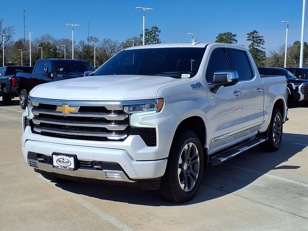 A quality pre-owned vehicle backed by a dealership you can trust. Great condition. Great value. Great choice. � Clean Carfax � Leather Seats � Sunroof / Moonroof � Alloy Wheels � Dual Passenger A/C � Remote Keyless Entry � Excellent service history � Local Trade � One Owner This 2025 Chevrolet Silverado 1500 High Country is a true workhorse with a refined touch. Equipped with the powerful EcoTec3 5.3L V8 engine and 10-speed automatic transmission, this 4WD truck delivers impressive capability and efficiency, with an EPA-estimated 16 city/19 highway MPG. The exterior shines in a crisp White hue, complemented by the rugged yet sophisticated High Country styling. Step inside and youll be greeted by premium leather seating, a sunroof, and a wealth of advanced technology features, including a 15-inch Head-Up Display, Rear Camera Mirror, and the Kicker audio system. The Z71 Off-Road Package adds even more capability, with features like Hill Descent Control, skid plates, and a heavy-duty air filter. The Multi-Flex Tailgate offers unparalleled versatility, while the Trailering Package and In-Vehicle Trailering System App ensure confident towing. Comfort and convenience are paramount, with heated and ventilated front seats, a heated steering wheel, and a wealth of driver-assistance technologies, including Adaptive Cruise Control, Rear Cross Traffic Braking, and Ultrasonic Front & Rear Park Assist. Whether youre tackling tough jobs or seeking a premium daily driver, this 2025 Chevrolet Silverado 1500 High Country is the perfect blend of capability, technology, and refinement. Discover why drivers have trusted us for over 50 years. With 500 new Toyotas, 200 used options, fast trade appraisals, and hassle-free financing, your perfect vehicle is just a click away. We proudly serve Greater Houston and Conroe-and ship anywhere in America. Gullo Toyota. Family values. Big selection. Zero pressure. Visit us today or shop online anytime at GulloToyota.com.