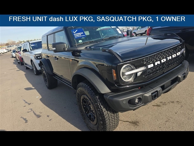 SUMMARY Clean Carfax! One Owner!**WARRANTY REMAINING: 25 MONTHS OR 25,748 MILES****SASQUATCH PACKAGE** ($3,045 ADD TO MSRP), **EQUIPMENT GROUP 334A** ($2,825 ADD TO MSRP), **2.7L ECOBOOST V6 ENGINE** ($2,145 ADD TO MSRP), **HARD TOP, BLACK-PAINTED** ($2,495 ADD TO MSRP), **10-SPEED AUTO TRANSMISSION** ($1,495 ADD TO MSRP), **BLACK APPEARANCE PACKAGE** ($1,250 ADD TO MSRP), FLR LINERS ALL WTHR CRPT MATS, 2.7L V6, 10-SPEED AUTO TRANSMISSION, 4WD, KEYLESS ENTRY, PUSH BUTTON START, REMOTE START, 12 IN SCREEN DISPLAY, 360-DEGREE CAMERA, SIRIUSXM, FORDPASS CONNECT, REAR VIEW CAMERA, ADAPTIVE CRUISE CONTROL, FENDER TIE-DOWN HOOKS, TOW HOOKS-FRT (2)/REAR (2), HILL START ASSIST, PRE-COLLISION ASSIST W/AEB, LATCH CHILD SAFETY SYSTEM, PERSONAL SAFETY SYSTEM EQUIPMENT Safety and Security The vehicle is equipped with a system that senses, and then prepares, the vehicle and/or occupants, for an impending forward collision. The vehicle constantly monitors the roadway in front of the vehicle and identifies and tracks pedestrians on an interior display. If the system determines a likely impact, it will automatically take preventative steps to avoid hitting the pedestrian. The vehicle is equipped with a camera that displays an image of the area behind the vehicle on an interior display.Technology and Telematics SYNC 4 AppLink/Apple CarPlay/Android Auto smart device wireless mirroring Mobile devices can wirelessly connect to the internet through the vehicles private mobile network. PACKAGES All-Weather Floor Liners (with Carpet Floor Mats) ($160 value)Includes front and rear all-weather floor liners.Sasquatch Package ($5,040 value)Includes 17 inch Carbonized Gray painted alloy wheels, LT315/70R17 (35 in.) rugged terrain tires, 4.70 final drive ratio with electronic locking front and rear axle, high clearance suspension, and high clearance fender flares.Black Appearance Package ($995 value)Includes black molded-in-color (MIC) door handles, black molded-in-color (MIC) fender flares, black-painted molde