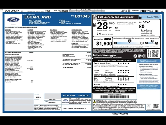 SUMMARY Clean Carfax!**WARRANTY REMAINING: 11 MONTHS OR 15,103 MILES**TECH PACKAGE #1, EQUIPMENT GROUP 300A, COLD WEATHER PACKAGE, 1.5L, 8-SPEED AUTO TRANSMISSION, AWD, KEYLESS ENTRY, PUSH BUTTON START, REMOTE START, HEATED STEERING WHEEL, HEATED FRONT ROW SEATS, 13.2 IN SCREEN DISPLAY, NAVIGATION, FORDPASST CONNECT, SIRIUSXMr, ADAPTIVE SPEED CONTROL, LED HEADLAMPS, LED TAILLAMPS, POWER HEATED MIRRORS, BUCKET SEATS, BLIS W/CROSS-TRAFFIC ALERT, ELECTRIC PARKING BRAKE, SOS POST-CRASH ALERT SYSTEM, LANE CENTERING ASSIST EQUIPMENT Safety and Security The vehicle is equipped with a system that senses, and then prepares, the vehicle and/or occupants, for an impending forward collision. The vehicle constantly monitors the roadway in front of the vehicle and identifies and tracks pedestrians on an interior display. If the system determines a likely impact, it will automatically take preventative steps to avoid hitting the pedestrian. With this system the drivers hands must remain on the wheel at all times but can be removed briefly (for a few seconds), otherwise the vehicle will prompt the driver to put their hands back on the wheel.Technology and Telematics SYNC 4 AppLink/Apple CarPlay/Android Auto smart device wireless mirroring Mobile devices can wirelessly connect to the internet through the vehicles private mobile network. PACKAGES Tech Pack #1 ($995 value)Ford Co-Pilot360 Assist Rear View CameraSYNC 4 with Enhanced Voice RecognitionEquipment Group 300A8-Speed Automatic Transmission1.5L EcoBoost EngineVinyl/cloth Front Sport Contour Bucket Seats3.81 Axle RatioTBD GVWRAM/FM Stereo18 Tires18 Rock Metallic Painted Aluminum Wheels