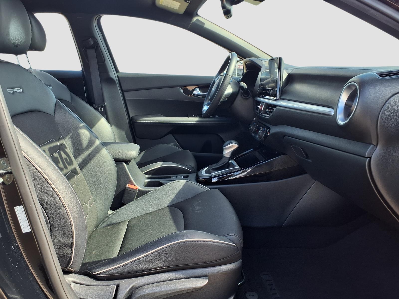 Certified. This 2024 Kia Forte GT-Line is loaded with the following Factory Options:Kia Certified Pre-Owned Certified, 4-Wheel Disc Brakes, 6 Speakers, ABS brakes, Air Conditioning, Alloy wheels, AM/FM radio: SiriusXM, Apple CarPlay & Android Auto, Auto High-beam Headlights, Automatic temperature control, Brake assist, Bumpers: body-color, Cloth & SynTex Seat Trim, Delay-off headlights, Driver door bin, Driver vanity mirror, Dual front impact airbags, Dual front side impact airbags, Electronic Stability Control, Emergency communication system, Exterior Parking Camera Rear, Front anti-roll bar, Front Bucket Seats, Front Center Armrest, Front dual zone A/C, Front fog lights, Front reading lights, Front wheel independent suspension, Fully automatic headlights, Heated door mirrors, Illuminated entry, Leather Shift Knob, Leather steering wheel, Low tire pressure warning, Navigation System, Occupant sensing airbag, Outside temperature display, Overhead airbag, Overhead console, Panic alarm, Passenger door bin, Passenger vanity mirror, Power door mirrors, Power steering, Power windows, Radio data system, Radio: 10.25Display Audio, Rear seat center armrest, Rear window defroster, Remote keyless entry, Security system, Speed control, Split folding rear seat, Spoiler, Sport steering wheel, Steering wheel mounted audio controls, Tachometer, Telescoping steering wheel, Tilt steering wheel, Traction control, Trip computer, Turn signal indicator mirrors, Variably intermittent wipers, and Wheels: 17x 7.0 Alloy. Aurora Black Pearl FWD CVT 2.0L I4 MPI Recent Arrival! 28/39 City/Highway MPG Kia Certified Pre-Owned Details: * 165 Point Inspection * Limited Warranty: 12 Month/12,000 Mile (whichever comes first) Platinum Coveragefrom certified purchase date * Includes Rental Car and Trip Interruption Reimbursement. 3 month Sirius trial subscription * Powertrain Limited Warranty: 120 Month/100,000 Mile (whichever comes first) from original in-service date * Vehicle History * Transferable Warranty * Roadside Assistance * Warranty Deductible: $50