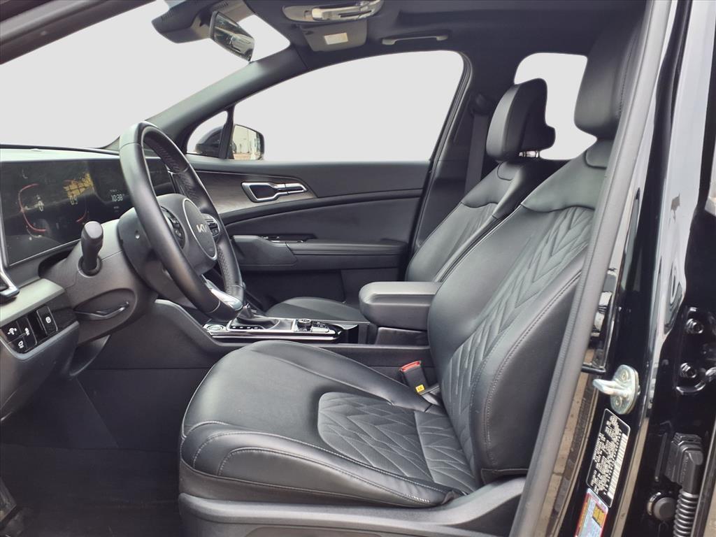 This 2023 Kia Sportage X-Line is loaded with the following Factory Options:X-Line Premium Package (LED Interior Lighting, Panoramic Sunroof, and Smart Power Liftgate), AWD, 4-Wheel Disc Brakes, 6 Speakers, ABS brakes, Air Conditioning, Alloy wheels, AM/FM radio: SiriusXM, Apple CarPlay & Android Auto, Auto High-beam Headlights, Automatic temperature control, Axle Ratio: 3.648, Brake assist, Bumpers: body-color, Cargo Cover, Carpet Floor Mats X-Line, Compass, Delay-off headlights, Driver door bin, Driver vanity mirror, Dual front impact airbags, Dual front side impact airbags, Electronic Stability Control, Emergency communication system, Four wheel independent suspension, Front anti-roll bar, Front Bucket Seats, Front Center Armrest, Front dual zone A/C, Fully automatic headlights, harman/kardon� Speakers, Heated door mirrors, Heated Front Bucket Seats, Heated front seats, Illuminated entry, Leather Shift Knob, Leather steering wheel, Low tire pressure warning, Navigation System, Occupant sensing airbag, Outside temperature display, Overhead airbag, Overhead console, Panic alarm, Passenger door bin, Passenger vanity mirror, Power door mirrors, Power driver seat, Power steering, Power windows, Premium Leatherette Seat Trim, Radio: AM/FM/HD Audio System, Rain sensing wipers, Rear anti-roll bar, Rear seat center armrest, Rear window defroster, Rear window wiper, Remote keyless entry, Security system, Speed control, Speed-sensing steering, Split folding rear seat, Spoiler, Steering wheel mounted audio controls, Tachometer, Telescoping steering wheel, Tilt steering wheel, Traction control, Trip computer, Turn signal indicator mirrors, Variably intermittent wipers, Wheel Locks, and Wheels: 19Gloss Black Alloy. Ebony Black AWD 8-Speed Automatic I4 AWD. 23/28 City/Highway MPG