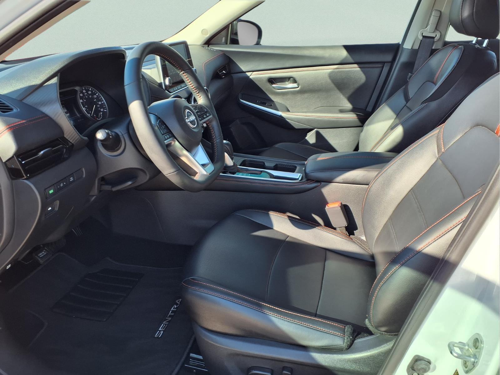 CARFAX One-Owner. Priced below KBB Fair Purchase Price! Clean CARFAX. Certified. Aspen White Tricoat/Super Black 2024 Nissan Sentra SR FWD CVT with Xtronic 2.0L I4 DOHC Bose Audio System, One Owner Vehicle, Q Certified Pre-Owned means you get up to a 7yr/100,000 mile Warranty, 156 point inspection,, 2-Tone Premium Paint, 4-Wheel Disc Brakes, 6 Speakers, 6-Way Power Drivers Seat, ABS brakes, Air Conditioning, Alloy wheels, AM/FM radio: SiriusXM, Auto High-beam Headlights, Automatic temperature control, Blind Spot Warning, Bose Premium Audio System w/8 Speakers, Brake assist, Bumpers: body-color, Carpeted Floor Mats w/Trunk Mat, Clear Rear Bumper Protector, Delay-off headlights, Door Sill Plates, Driver door bin, Driver vanity mirror, Dual front impact airbags, Dual front side impact airbags, Electronic Stability Control, Four wheel independent suspension, Front anti-roll bar, Front Bucket Seats, Front Center Armrest, Front dual zone A/C, Front reading lights, Fully automatic headlights, Heated door mirrors, Heated Front Bucket Seats, Heated front seats, Heated Steering Wheel, Illuminated entry, Intelligent Around View Monitor (I-AVM), Knee airbag, Leather Shift Knob, Leather steering wheel, Leatherette Seat Trim, Low tire pressure warning, Map Pocket Lighting, NissanConnect featuring Apple CarPlay and Android Auto, NissanConnect Services, Occupant sensing airbag, Outside temperature display, Overhead airbag, Overhead console, Panic alarm, Passenger door bin, Passenger vanity mirror, Power door mirrors, Power Sliding Glass Moonroof w/Tilt Feature, Power steering, Power windows, Radio data system, Radio: AM/FM w/RDS/MP3/Aux-In, Rear anti-roll bar, Rear Parking Sensors, Rear seat center armrest, Rear side impact airbag, Rear window defroster, Remote keyless entry, Security system, Speed control, Speed-sensing steering, Split folding rear seat, Spoiler, Sport Cloth Seat Trim, SR Premium Package, Steering wheel mounted audio controls, Sunvisors w/Illuminated Vanity Mirrors, Tachometer, Telescoping steering wheel, Tilt steering wheel, Traction control, Trip computer, Turn signal indicator mirrors, Variably intermittent wipers, Wi-Fi Hotspot. Recent Arrival! Odometer is 10569 miles below market average! 30/38 City/Highway MPG Nissan Certified Details: * 7 Year/100,000 Mile Limited Warranty, 24/7 Hour Roadside Assistance, Carfax Vehicle History Report, Plus 1 Year Pre-Paid Maintenance Included. Gas Powered Nissan Models Only. * Roadside Assistance * 167 Point In
