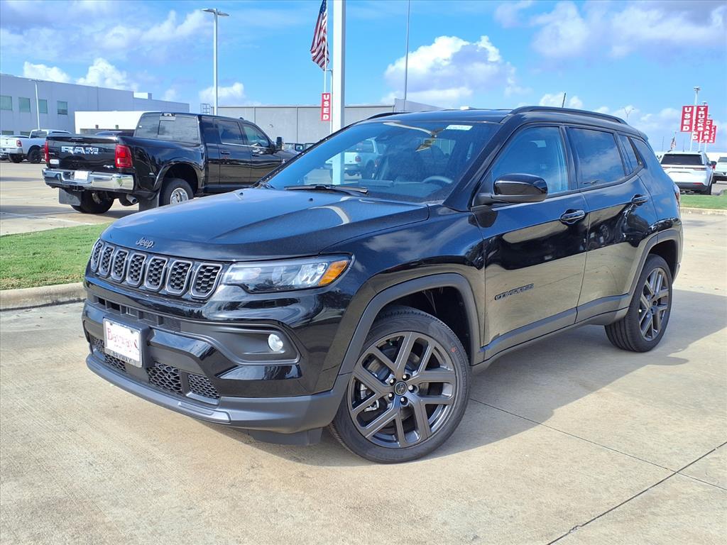 Diamond Black Crystal Pearlcoat 2026 Jeep Compass Latitude 4WD 8-Speed Automatic 2.0L I4 DOHC 4WD. Priced below KBB Fair Purchase Price! 23/31 City/Highway MPG Price includes: $1000 - 2026 National Retail Bonus Cash . Exp. 03/02/2026 $750 - 2026 Southwest BC Bonus Cash . Exp. 03/02/2026
