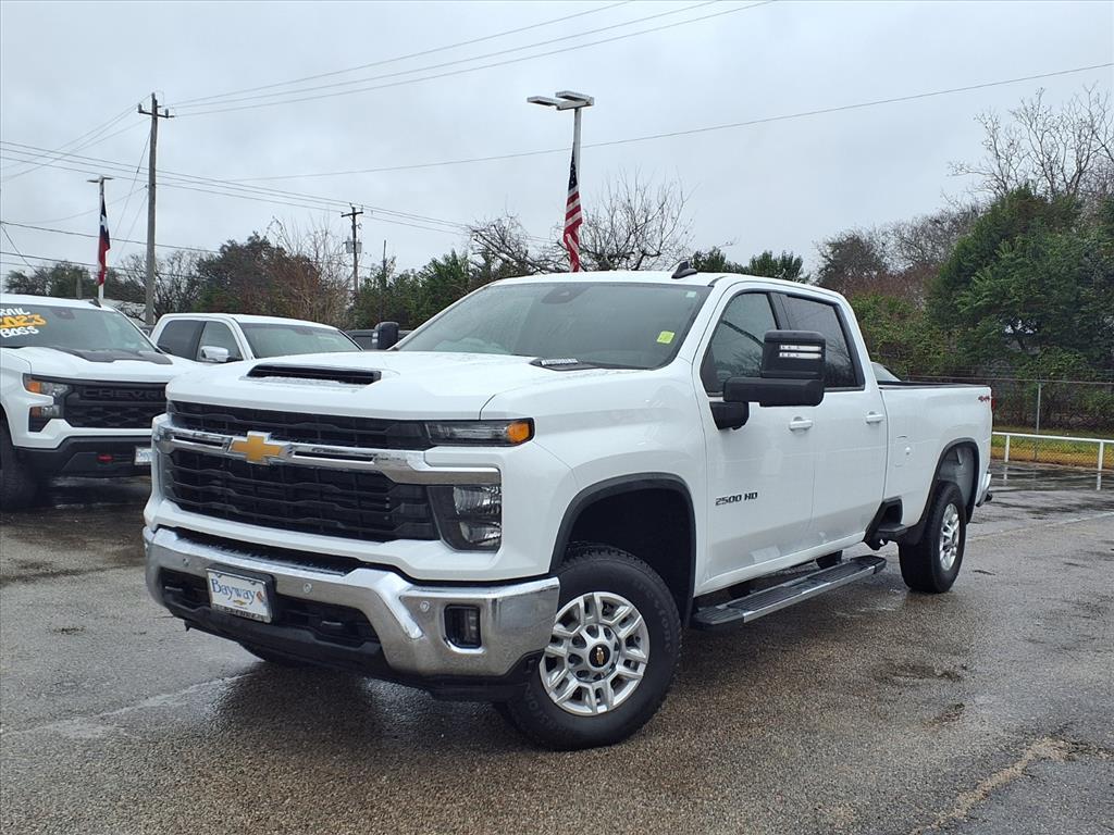 The 2025 Chevrolet Silverado 2500HD LT 4WD is a full-size heavy-duty pickup designed for demanding workloads and daily utility, featuring a 10-speed automatic transmission, robust 4WD system, and finished in Summit White. It includes a 3.73 rear axle ratio, 220-amp alternator, 720 cold-cranking amps heavy-duty battery, and a suite of convenience, safety, and connectivity features to support both work and comfort needs. This truck is an optimal fit for buyers researching a reliable and capable heavy-duty pickup that balances utility, comfort, and modern technology. The Silverado 2500HD LT is ideal for those who need strong towing capacity, off-road capability, and practical features like heated trailering mirrors and 6-inch chromed assist steps. Cloth seat trim and a split-folding rear seat offer comfort and flexibility for daily driving or jobsite demands. Driving the Silverado 2500HD LT delivers a combination of power and control, thanks to its proven V8 engine and 10-speed automatic transmission. The powertrain provides smooth gear changes and responsive acceleration, especially when towing or hauling. Its independent front suspension and 4-wheel disc brakes enhance handling stability, while the 3.73 rear axle ratio optimizes low-end torque for heavy-duty work. Real-world impressions highlight confident highway cruising and strong, predictable braking. Safety is integral to this truck, as it comes equipped with electronic stability control, ABS brakes, and dual-stage front, side, and overhead airbags to provide comprehensive occupant protection. The Safety Package adds features like blind spot monitoring and rear cross-traffic alert, which help drivers detect vehicles in adjacent lanes or approaching from behind. Traction control and brake assist further support control in slippery or emergency conditions, while heated, auto-dimming trailering mirrors improve visibility when towing. Key features include the Convenience Package, which bundles remote start, power accessories, and keyless entry for ease of use. The Chevrolet Infotainment 3 Premium system offers Apple CarPlay, Android Auto, and SiriusXM with 360L for seamless connectivity and entertainment. The Heat Package, heated mirrors, and winter grille cover improve cold-weather usability, while the 6-speaker audio system and steering wheel audio controls enhance in-cabin experience. Functional elements like the front 40/20/40 split-bench with lockable storage, rear step bumper, and chrome accents boos