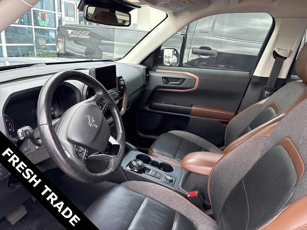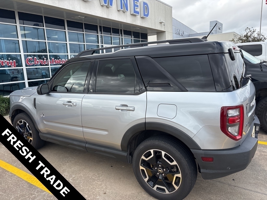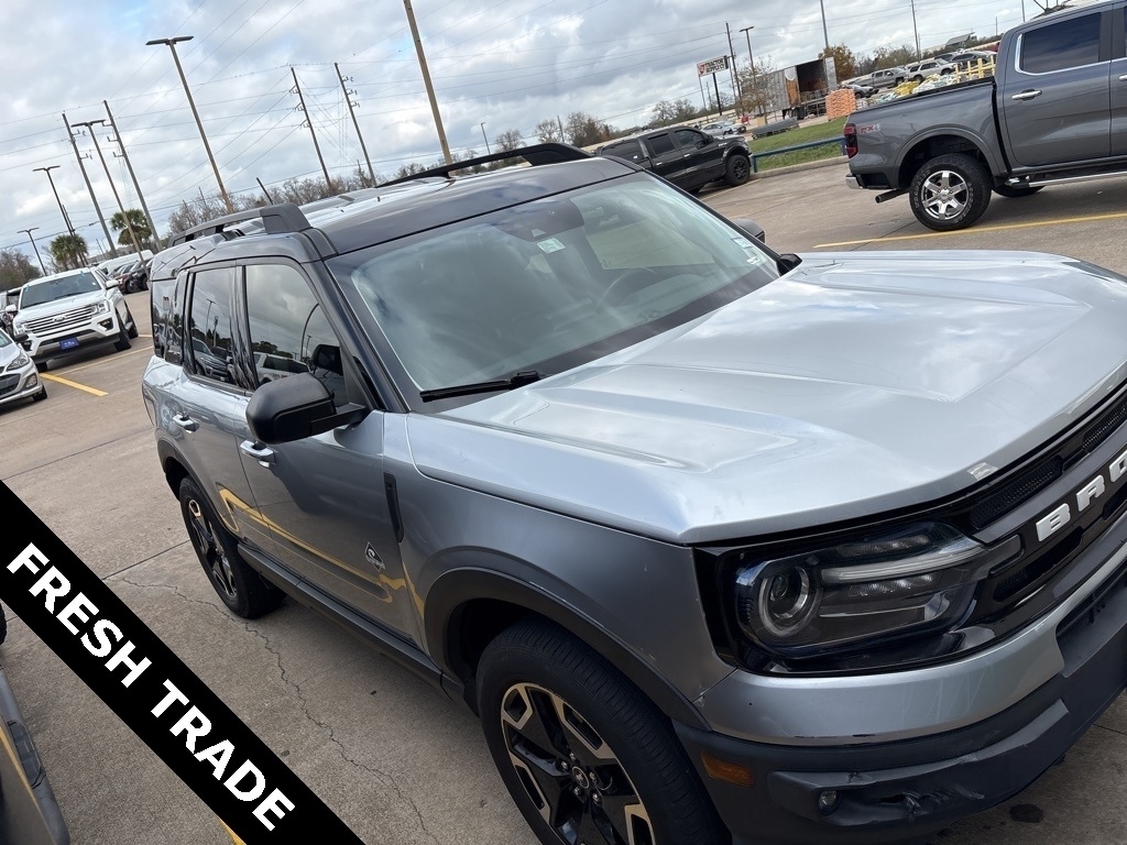 Certified. Iconic Silver Metallic 2021 Ford Bronco Sport Outer Banks LEGACY FORD CERTIFIED 4WD 8-Speed Automatic 1.5L EcoBoost Equipment Group 300A, Legacy Ford of Rosenberg Certification Certified, 3.80 Axle Ratio, 4-Wheel Disc Brakes, 6 Speakers, ABS brakes, Air Conditioning, Alloy wheels, AM/FM radio: SiriusXM, AM/FM Stereo, Auto High-beam Headlights, Auto-dimming Rear-View mirror, Automatic temperature control, Brake assist, Compass, Delay-off headlights, Driver door bin, Driver vanity mirror, Dual front impact airbags, Dual front side impact airbags, Electronic Stability Control, Emergency communication system: SYNC 3 911 Assist, Exterior Parking Camera Rear, Four wheel independent suspension, Front anti-roll bar, Front Bucket Seats, Front Center Armrest, Front dual zone A/C, Front fog lights, Front reading lights, Fully automatic headlights, Heated door mirrors, Heated front seats, Heated steering wheel, Illuminated entry, Knee airbag, Leather Trimmed Heated Sport Contour Bucket Seats, Low tire pressure warning, Occupant sensing airbag, Outside temperature display, Overhead airbag, Overhead console, Panic alarm, Passenger door bin, Passenger vanity mirror, Power door mirrors, Power driver seat, Power passenger seat, Power steering, Power windows, Radio data system, Rain sensing wipers, Rear anti-roll bar, Rear Parking Sensors, Rear reading lights, Rear seat center armrest, Rear window defroster, Rear window wiper, Remote keyless entry, Roof rack: rails only, Security system, SiriusXM Radio, Speed control, Speed-sensing steering, Speed-Sensitive Wipers, Split folding rear seat, Steering wheel mounted audio controls, SYNC 3 Communications & Entertainment System, SYNC 3/Apple CarPlay/Android Auto, Tachometer, Telescoping steering wheel, Tilt steering wheel, Traction control, Trip computer, Variably intermittent wipers, and Wheels: 18Ebony Black-Painted Aluminum. Certification Program Details: � Towing- no out of pocket costs for customers towed to our dealership if located within 30 miles � Lockout assistance � Jump start assistance � Fuel and fluid delivery � Flat tire changes � Available 365 days/year � Up to $100 maximum coverage per incident Every Legacy Ford of Rosenberg certified preowned vehicle has passed a detailed 172-point inspection to qualify for our certification process. This is only offered at Legacy Ford of Rosenberg and gives you peace of mind for 10 years or 100,000 miles. Why shop used when you can shop certified, at www.legacyford