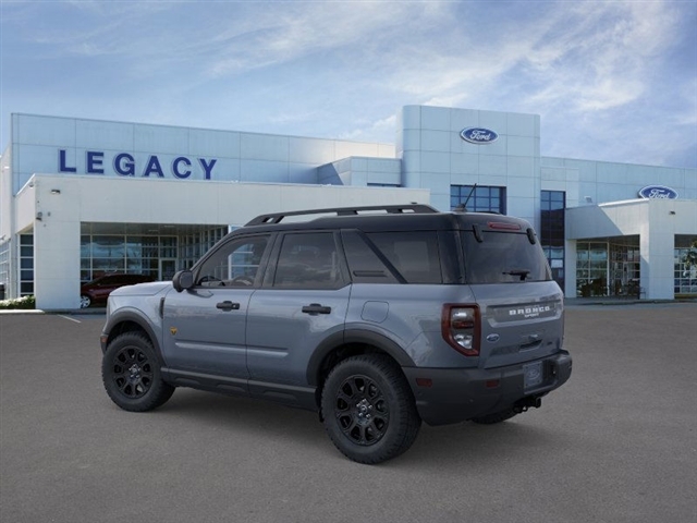 Azure Gray Metallic Tri-Coat 2025 Ford Bronco Sport Badlands 4WD 8-Speed Automatic EcoBoost 2.0L I4 GTDi DOHC Turbocharged VCT Equipment Group 400A, 4-Wheel Disc Brakes, 6 Speakers, ABS brakes, Air Conditioning, Alloy wheels, AM/FM radio: SiriusXM, AM/FM Stereo, Auto High-beam Headlights, Auto-dimming Rear-View mirror, Automatic temperature control, Brake assist, Compass, Delay-off headlights, Driver door bin, Driver vanity mirror, Dual front impact airbags, Dual front side impact airbags, Electronic Stability Control, Emergency communication system: SYNC 4 911 Assist, Four wheel independent suspension, Front anti-roll bar, Front Bucket Seats, Front Center Armrest, Front fog lights, Front License Plate Bracket, Front reading lights, Fully automatic headlights, Garage door transmitter, Heated door mirrors, Heated front seats, Heated steering wheel, Illuminated entry, Knee airbag, Leather Trimmed Front Bucket Seats, Low tire pressure warning, Memory seat, Occupant sensing airbag, Outside temperature display, Overhead airbag, Overhead console, Panic alarm, Passenger door bin, Passenger vanity mirror, Power door mirrors, Power driver seat, Power passenger seat, Power steering, Power windows, Radio data system, Rear anti-roll bar, Rear reading lights, Rear seat center armrest, Rear window defroster, Rear window wiper, Remote keyless entry, Security system, SiriusXM, Speed control, Speed-sensing steering, Speed-Sensitive Wipers, Split folding rear seat, Steering wheel mounted audio controls, SYNC 4 w/Enhanced Voice Recognition, Tachometer, Telescoping steering wheel, Tilt steering wheel, Traction control, Trip computer, Variably intermittent wipers, and Wheels: 17Matte Black-Painted Aluminum. 21/27 City/Highway MPG At our dealership, we have devoted ourselves to helping and serving our customers to the best of our ability. We believe the cars we offer are the highest quality and ideal for your life needs. We understand that you rely on our web site for accurate information, and it is our pledge to deliver you relevant, correct, and abundant content. Please do not hesitate to contact us with any questions you may have. Our staff is happy to answer any and all inquiries in a timely fashion. We look forward to doing business with you! Price does not include tax, tag, licence and dealer installed accessories. Price includes: $1000 - Final Days Mega Bonus Cash. Exp. 01/02/2026 $1500 - Retail Bonus Cash. Exp. 01/05/2026 $500 - Retail Bonus Cash. Exp. 01/05/2026