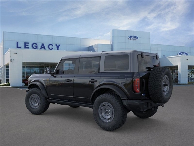 Shadow Black 2025 Ford Bronco Badlands 4WD 10-Speed Automatic 2.7L EcoBoost V6 Equipment Group 334A Lux Package (2-Door Intelligent Access w/Lock/Unlock, 360-Degree Camera, Adaptive Cruise Control, Ambient Footwell Lighting, Connected Navigation, Dr & Pass Illuminated Sliding Visor Vanity Mirrors, Dual Smart Charging USB Ports, Dual-Zone Electronic Automatic Temperature Control, Evasive Steering Assist, Front Parking Sensors, Front Row Heated Seats, Information on Demand Panel, Power Outlet - Back Side of Center Floor Console, Radio: B&O Sound System by Bang & Olufsen, Rear Parking Sensors, Sideview Mirrors, and Universal Garage Door Opener), Sasquatch Package (High Clearance Fender Flares, High Clearance Suspension, Position-Sensitive Bilstein Shock Absorbers, and Wheels: 17Carbonized Gray Painted Aluminum), 4-Wheel Disc Brakes, 7 Speakers, ABS brakes, Air Conditioning, Alloy wheels, AM/FM radio: SiriusXM with 360L, AM/FM Stereo, Auto High-Beam Headlamps, Auto High-beam Headlights, Auto-dimming Rear-View mirror, BLIS Blind Spot Information System, Brake assist, Carbonized Gray Molded-In-Color Hard Top, Compass, Delay-off headlights, Driver door bin, Driver vanity mirror, Dual front impact airbags, Dual front side impact airbags, Electronic Stability Control, Emergency communication system: 911 Assist, Exterior Parking Camera Rear, Ford Performance Heavy-Duty Modular Front Bumper, Front anti-roll bar, Front Bucket Seats, Front Center Armrest, Front fog lights, Front License Plate Bracket, Front reading lights, Front wheel independent suspension, Fully automatic headlights, Hard Top Sound Deadening Headliner, Heated door mirrors, Heated front seats, Heated steering wheel, Illuminated entry, Integrated roll-over protection, Internet access capable: FordPass Connect, Lane-Keeping System, Leather Shift Knob, Low tire pressure warning, Marine Grade Vinyl Heated Bucket Seats, Occupant sensing airbag, Outside temperature display, Overhead airbag, Overhead console, Panic alarm, Passenger door bin, Passenger vanity mirror, Power door mirrors, Power steering, Power windows, Pre-Collision Assist w/Automatic Emergency Braking, Radio data system, Rear-View Camera, Rear-Window Defroster & Washer, Remote keyless entry, Security system, SiriusXM w/360L, Speed control, Split folding rear seat, Steering wheel mounted audio controls, SYNC 4, Tachometer, Telescoping steering wheel, Tilt steering wheel, Traction control, Trip computer, Variably intermittent wipers, Voltmeter