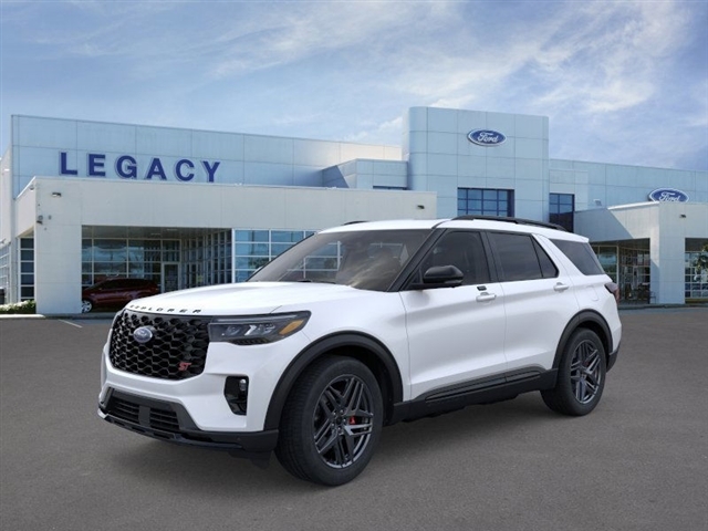 Star White Metallic Tri-Coat 2026 Ford Explorer ST 4WD 10-Speed Automatic 3.0L EcoBoost V6 4WD. Equipment Group 400A Standard Package (Heated/Ventilated Miko Suede Captains Chairs, Radio: B&O Sound System by Bang and Olufsen, and Wheels: 21Magnetite-Painted Aluminum), Sun and Sound Package (Multicontour Seats with Front Active Motion, Panoramic Fixed Glass Roof with Power Shade, Radio: B&O Sound System by Bang & Olufsen, and Remote Control Front Windows), 4WD, 10 Speakers, 3rd row seats: bench, 4-Wheel Disc Brakes, ABS brakes, Air Conditioning, Alloy wheels, AM/FM radio: SiriusXM with 360L, Apple CarPlay/Android Auto, Auto High-beam Headlights, Auto-dimming door mirrors, Auto-dimming Rear-View mirror, Automatic temperature control, BlueCruise Equipped (1-Year 90-Day Plan), Brake assist, Bumpers: body-color, Compass, Delay-off headlights, Driver door bin, Driver vanity mirror, Dual front impact airbags, Dual front side impact airbags, Electronic Stability Control, Emergency communication system: 911 Assist, Exterior Parking Camera Rear, Four wheel independent suspension, Front anti-roll bar, Front Bucket Seats, Front Center Armrest, Front dual zone A/C, Front fog lights, Front License Plate Bracket, Front reading lights, Fully automatic headlights, Garage door transmitter, Heated door mirrors, Heated front seats, Heated rear seats, Heated steering wheel, Illuminated entry, Knee airbag, Leather steering wheel, Low tire pressure warning, Memory seat, Navigation System, Occupant sensing airbag, Outside temperature display, Overhead airbag, Overhead console, Panic alarm, Passenger door bin, Passenger vanity mirror, Power door mirrors, Power driver seat, Power Liftgate, Power passenger seat, Power steering, Power windows, Rain sensing wipers, Rear air conditioning, Rear anti-roll bar, Rear reading lights, Rear window defroster, Rear window wiper, Remote keyless entry, SecuriCode Keyless Entry Keypad, Security system, Speed control, Speed-sensing steering, Speed-Sensitive Wipers, Split folding rear seat, Spoiler, Sport steering wheel, Steering wheel mounted audio controls, Tachometer, Telescoping steering wheel, Tilt steering wheel, Traction control, Trip computer, Turn signal indicator mirrors, Variably intermittent wipers, and Ventilated front seats. At our dealership, we have devoted ourselves to helping and serving our customers to the best of our ability. We believe the cars we offer are the highest quality and ideal for your life needs. We understand t