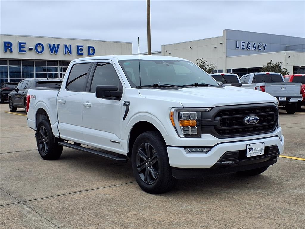 CARFAX One-Owner. Clean CARFAX. Certified. Oxford White 2023 Ford F-150 XLT EL TORO CERTIFIED 4WD 10-Speed Automatic 3.5L PowerBoost Full-Hybrid V6 3.5L PowerBoost Full-Hybrid V6, 4WD. Bed Utility Package (BoxLink, LED Box Lighting, Tailgate Step w/Tailgate Work Surface, and Zone Lighting), Equipment Group 302A High (10-Way Power Driver & Passenger Seats, 8Productivity Screen in Instrument Cluster, Auto-Dimming Rear-View Mirror, Class IV Trailer Hitch Receiver, Dual Zone Electronic Automatic Temperature Control, Heated Front Seats, Intelligent Access w/Push Button Start, LED Reflector Headlamps, LED Sideview Mirror Spotlights, Onboard 400W Outlet, Power Glass Heated Sideview Mirrors, Radio: AM/FM SiriusXM w/360L, Rear Under-Seat Storage, SecuriCode Drivers Side Keyless-Entry Keypad, SYNC 4 w/Enhanced Voice Recognition, and Wrapped Steering Wheel), FX4 Off-Road Package, Trailer Tow Package (Integrated Trailer Brake Controller and Pro Trailer Backup Assist & Pro Trailer Hitch Assist), XLT Chrome Appearance Package (2-Bar Style Grille w/Chrome 2 Minor Bars, Bright Polished Step Bars, Chrome Door & Tailgate Handles w/Body-Color Bezel, Chrome Single-Tip Exhaust, and Wheels: 18Chrome-Like PVD), XLT Sport Appearance Package (Accent-Color Step Bars, Black 2-Bar Style Grille w/Black Surround/Accents, Body-Color Door & Tailgate Handles, Body-Color Front & Rear Bumpers, Box Side Decals, Unique Sport Cloth 40/Console/40 Front-Seats, and Wheels: 186-Spoke Machined Aluminum), Legacy Ford of Rosenberg Certification Certified, 3.5L PowerBoost Full-Hybrid V6, 4WD, 4-Wheel Disc Brakes, 6 Speakers, ABS brakes, Air Conditioning, Alloy wheels, AM/FM radio, Auto High-beam Headlights, Auto Start-Stop Removal (DISC), Brake assist, Bumpers: chrome, Cloth 40/20/40 Front Seat, Compass, Delay-off headlights, Driver door bin, Driver vanity mirror, Dual front impact airbags, Dual front side impact airbags, Electronic Stability Control, Emergency communication system: SYNC 4 911 Assist, Exterior Parking Camera Rear, Front anti-roll bar, Front Center Armrest w/Storage, Front fog lights, Front reading lights, Front wheel independent suspension, Fully automatic headlights, Heated door mirrors, Illuminated entry, Interior Work Surface, Low tire pressure warning, Occupant sensing airbag, Outside temperature display, Overhead airbag, Overhead console, Panic alarm, Passenger door bin, Passenger vanity mirror, Power door mirrors, Power steering, Power windows, Power-Adjustable Pedals, Pow