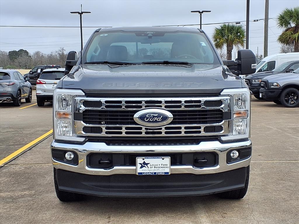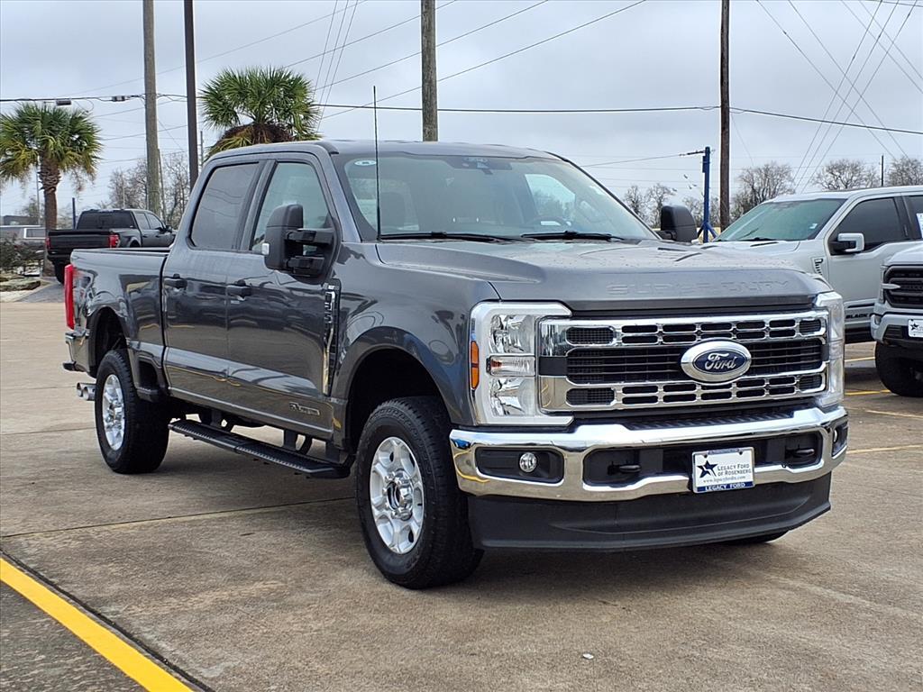 CARFAX One-Owner. Clean CARFAX. Certified. Gray Metallic 2025 Ford F-250SD XLT EL TORO CERTIFIED 4WD 10-Speed Automatic Power Stroke 6.7L V8 DI 32V OHV Turbodiesel 4WD, ABS brakes, Alloy wheels, Compass, Electronic Stability Control, Heated door mirrors, Illuminated entry, Low tire pressure warning, Remote keyless entry, Traction control. GVWR: 10,000 Lb Payload Package, Legacy Ford of Rosenberg Certification Certified, 4WD, ABS brakes, Alloy wheels, Compass, Electronic Stability Control, Heated door mirrors, Illuminated entry, Low tire pressure warning, Remote keyless entry, Traction control, 3.73 Axle Ratio, 4-Wheel Disc Brakes, 6 Speakers, Air Conditioning, AM/FM radio, Auto High-beam Headlights, Brake assist, Bumpers: chrome, Cloth 40/20/40 Split Bench Seat, Delay-off headlights, Driver door bin, Driver vanity mirror, Dual front impact airbags, Dual front side impact airbags, Emergency communication system: SYNC 4 911 Assist, Exterior Parking Camera Rear, Front anti-roll bar, Front Center Armrest w/Storage, Front fog lights, Front reading lights, Fully automatic headlights, Internet access capable: FordPass Connect 5G, Outside temperature display, Overhead airbag, Overhead console, Panic alarm, Passenger door bin, Passenger vanity mirror, Power door mirrors, Power driver seat, Power steering, Power windows, Privacy Glass, Radio: AM/FM Stereo with MP3 Player, Rear reading lights, Rear step bumper, Security system, Speed control, Split folding rear seat, Steering wheel mounted audio controls, SYNC 4, Tachometer, Telescoping steering wheel, Tilt steering wheel, Trip computer, Turn signal indicator mirrors, Variably intermittent wipers, and Wheels: 18Sparkle Silver Painted Cast Aluminum. Certification Program Details: � Towing- no out of pocket costs for customers towed to our dealership if located within 30 miles � Lockout assistance � Jump start assistance � Fuel and fluid delivery � Flat tire changes � Available 365 days/year � Up to $100 maximum coverage per incident Every Legacy Ford of Rosenberg certified preowned vehicle has passed a detailed 172-point inspection to qualify for our certification process. This is only offered at Legacy Ford of Rosenberg and gives you peace of mind for 10 years or 100,000 miles. Why shop used when you can shop certified, at www.legacyfordtx.com . Start Your Journey at Legacy Ford of Rosenberg. At our dealership, we have devoted ourselves to helping and serving our customers to the best of our ability. We believe the