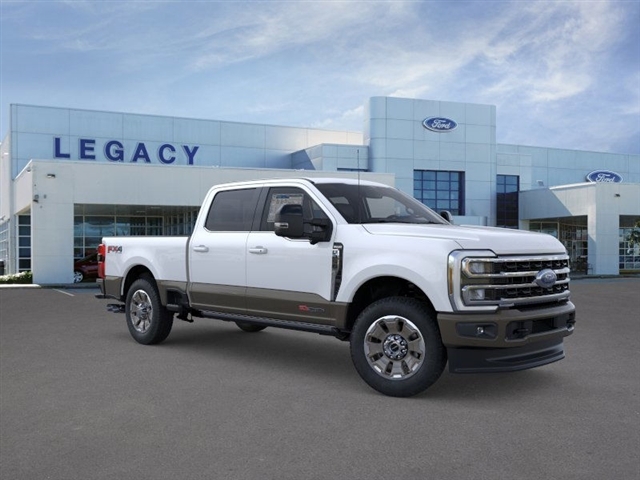 Star White Metallic Tri-Coat 2026 Ford F-250SD King Ranch 4WD 10-Speed Automatic 6.7L High Output Power Stroke V8 Diesel 4WD. Ford Connectivity Package (1-Year Included), FX4 Off-Road Package (Hill Descent Control, Off-Road Specifically Tuned Shock Absorbers, and Unique FX4 Off-Road Box Decal), GVWR: F-250 >10K Package, High Capacity 11.6Axle Upgrade Package, Internet access capable: 5G Modem - Ford Connectivity Package, Order Code 700A (Flow-Through Console, Radio: B&O Unleashed Sound System by Bang & Olufsen, SiriusXM with 360L, SYNC 4 with Enhanced Voice Recognition, Unique King Ranch Leather 40/Console/40 Seats, and Wheels: 20Bright Machined Aluminum), 4WD, 14 Speakers, 4-Wheel Disc Brakes, 410 Amp Dual Alternators, ABS brakes, Adjustable pedals, Air Conditioning, Alloy wheels, AM/FM radio: SiriusXM with 360L, Auto High-beam Headlights, Auto tilt-away steering wheel, Auto-dimming Rear-View mirror, Automatic temperature control, Brake assist, Compass, Delay-off headlights, Driver door bin, Driver vanity mirror, Dual front impact airbags, Dual front side impact airbags, Electronic Stability Control, Emergency communication system: SYNC 4 911 Assist, Engine Block Heater, Front anti-roll bar, Front Bucket Seats, Front Center Armrest, Front dual zone A/C, Front fog lights, Front License Plate Bracket, Front reading lights, Fully automatic headlights, Garage door transmitter, Heads-Up Display, Heated door mirrors, Heated front seats, Heated rear seats, Heated steering wheel, Illuminated entry, Leather steering wheel, Low tire pressure warning, Memory seat, Navigation system: Connected Navigation, Outside temperature display, Overhead airbag, Overhead console, Panic alarm, Passenger door bin, Passenger vanity mirror, Pedal memory, Power door mirrors, Power driver seat, Power passenger seat, Power steering, Power windows, Pro Power Onboard - 2kW, Rain sensing wipers, Rear reading lights, Rear seat center armrest, Rear step bumper, Rear window defroster, Remote keyless entry, SecuriCode Keyless Entry Keypad (drivers Side), Security system, SiriusXM with 360L (3-Year Plan), Speed control, Split folding rear seat, Steering wheel memory, Steering wheel mounted A/C controls, Steering wheel mounted audio controls, Tachometer, Telescoping steering wheel, Tilt steering wheel, Traction control, Trip computer, Turn signal indicator mirrors, Twin Panel Power Moonroof, Upfitter Switches (6), Variably intermittent wipers, and Ventilated front seats. At our dealership,