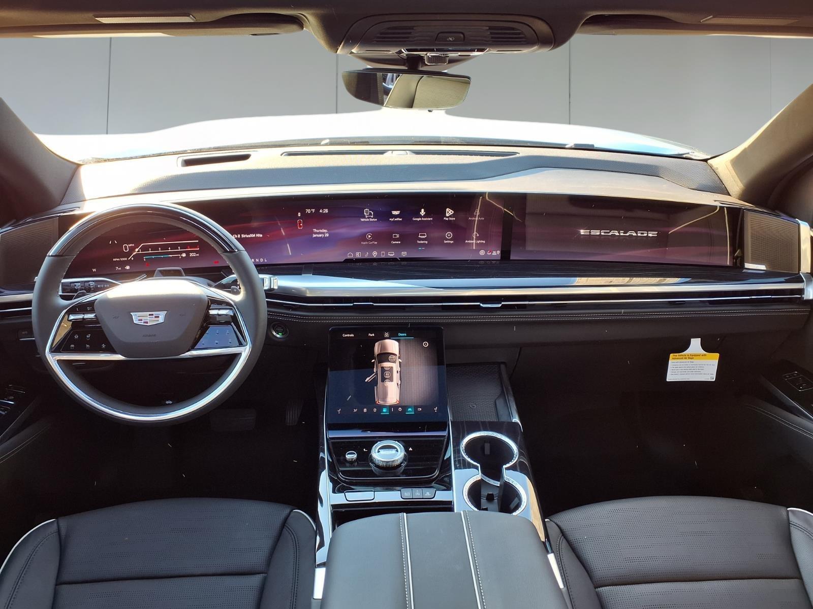 This 2026 Cadillac Escalade comes nicely equipped with 3rd Row All-Weather Floor Liner Package, Floor Liner Package (1st and 2nd Rows All-Weather Floor Liners and Integrated Cargo Liner), Touring Package (Air Ride Adaptive Suspension, Power Open/Close Doors, and Soft Closing Front and Rear Doors), 4WD, Jet Black Leather, 2-Presets Memory For Driver Seat Adjuster, 2-Speed Active Transfer Case, 21 Speakers, 3.23 Axle Ratio, 3rd row seats: split-bench, 4-Way Power Driver Lumbar Seat Adjuster, 4-Way Power Front Passenger Lumbar Seat Adjuster, 4-Wheel Disc Brakes, 8-Way Power Driver Seat Adjuster, 8-Way Power Front Passenger Seat Adjuster, ABS brakes, Adaptive suspension, Air Conditioning, AKG Studio 21-Speaker Audio System, Alloy wheels, AM/FM radio: SiriusXM with 360L, Apple CarPlay/Android Auto, Audio memory, Auto High-beam Headlights, Auto tilt-away steering wheel, Auto-dimming door mirrors, Auto-dimming Rear-View mirror, Automatic temperature control, Blind Zone Steering Assist with Trailering, Brake assist, Bumpers: body-color, Compass, Delay-off headlights, Door Lock and Latch Shields, Driver door bin, Driver vanity mirror, Dual front impact airbags, Dual front side impact airbags, Electronic Limited-Slip Differential, Electronic Stability Control, Emergency communication system: OnStar Services capable, Exterior Parking Camera Rear, Four wheel independent suspension, Front anti-roll bar, Front Bucket Seats, Front Center Armrest w/Storage, Front dual zone A/C, Front License Plate Bracket, Front reading lights, Fully automatic headlights, Garage door transmitter, Glass Breakage Sensor, Heads-Up Display, Heated and Ventilated Driver and Front Passenger Seats, Heated door mirrors, Heated Driver and Front Passenger Seats, Heated front seats, Heated rear seats, Heated steering wheel, Hitch Guidance with Hitch View, Illuminated entry, Illuminating Front and Rear Sill Plates, Integrated Trailer Brake Controller, Knee airbag, Lane Departure Warning System, Leather Seating Surfaces with Precision Perforated Inserts, Low tire pressure warning, Magnetic Ride Control Suspension, Memory seat, Mobile Service Plus, Navigation System, Occupant sensing airbag, Outside temperature display, Overhead airbag, Overhead console, Panic alarm, Passenger door bin, Passenger vanity mirror, Power door mirrors, Power driver seat, Power Liftgate, Power moonroof, Power Panoramic Tilt-Sliding Sunroof, Power passenger seat, Power steering, Power windows, Power-Retractable Assist Steps,