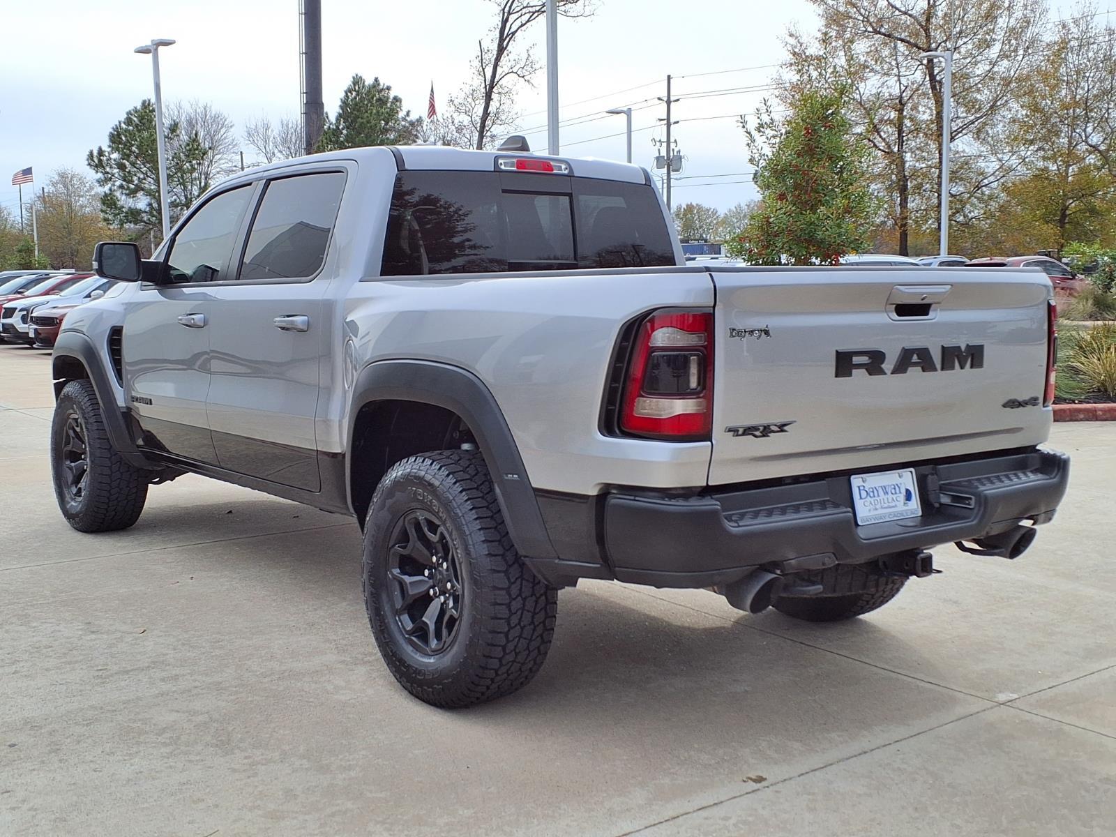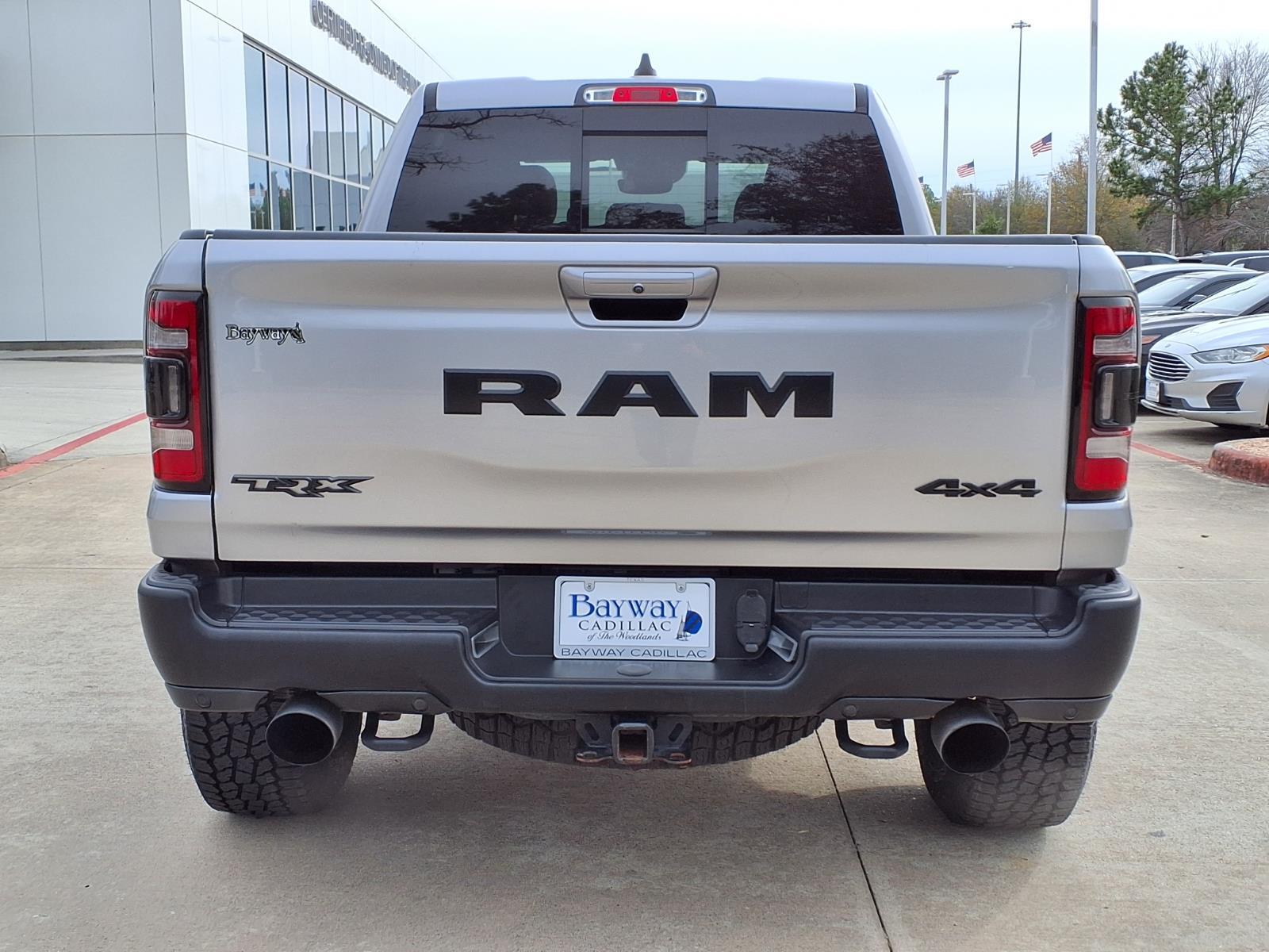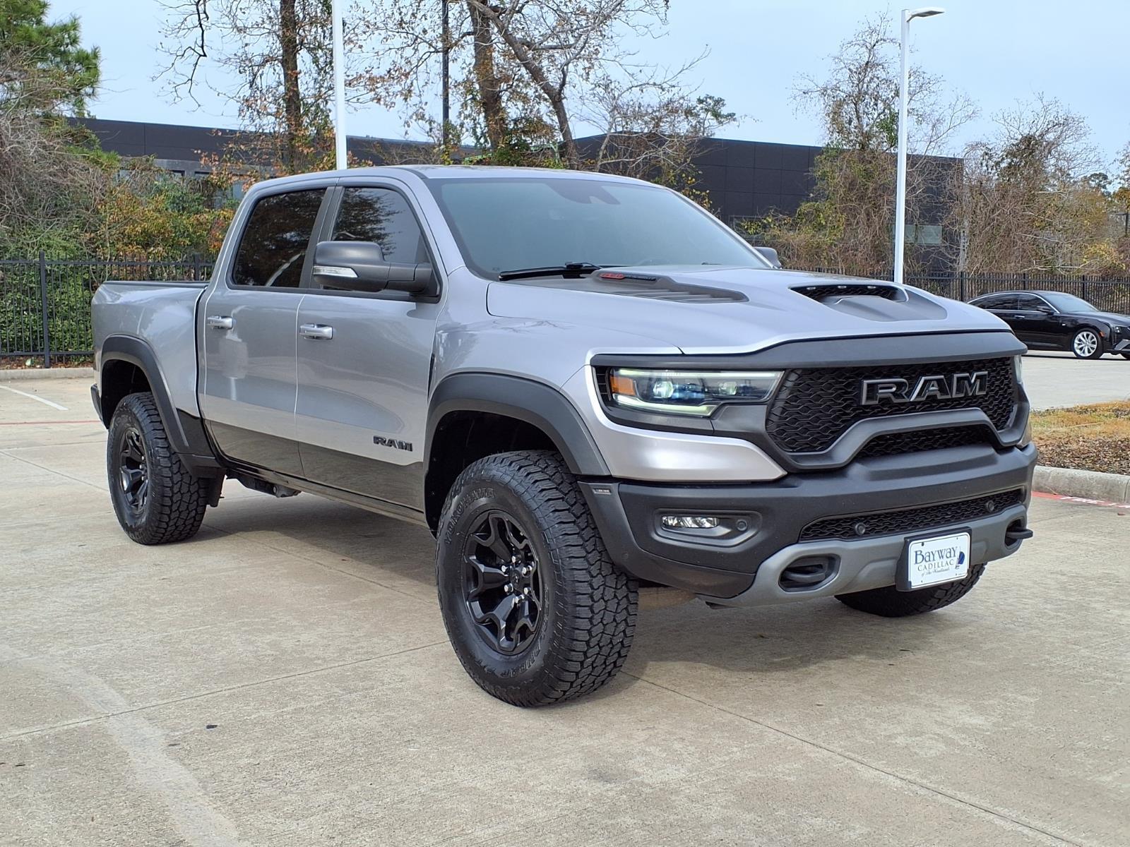 CARFAX One-Owner. Clean CARFAX. Billet Silver Metallic Clearcoat 2021 Ram 1500 TRX 4WD 8-Speed Automatic 6.2L Supercharged HEMI V8 SRTTHIS VEHICLE INCLUDES THE FOLLOWING FEATURES AND OPTIONS : Quick Order Package 29Y, TRX Level 1 Equipment Group (4 Way Front Headrests, Body Color Door Handles, Bucket Seats, Driver/Passenger Wrapped Assist Handles, Front Door Accent Lighting, Full Length Premium Upgraded Floor Console, Heated Front Seats, Heated Steering Wheel, IP LED Ambient Light Pipe, Leather Trimmed Bucket Seats, Leather/Suede Flat-Bottom Steering Wheel, Luxury Front Door Trim Panel, Pick-Up Box Lighting, Power 4-Way Driver Lumbar Adjust, Power 4-Way Passenger Lumbar Adjust, Power 8-Way Driver & Passenger Seats, Power Adjustable Pedals, Premium Wrapped IP Bezel, Rain Sensitive Windshield Wipers, Rear Door Accent Lighting, Rear Underseat Compartment Storage, Rear Window Defroster, Sun Visors w/Illuminated Vanity Mirrors, and Universal Garage Door Opener), 10 Speakers, 3.55 Rear Axle Ratio, 4-Wheel Disc Brakes, ABS brakes, Adaptive suspension, Air Conditioning, Alloy wheels, AM/FM radio: SiriusXM with 360L, Apple CarPlay/Android Auto, Auto High-beam Headlights, Auto-dimming door mirrors, Auto-dimming Rear-View mirror, Automatic temperature control, Black Exterior Mirrors, Brake assist, Cloth/Vinyl Bucket Seats, Compass, Delay-off headlights, Dome Dual LED Reading Lamp, Driver door bin, Dual front impact airbags, Dual front side impact airbags, Dual-Pane Panoramic Sunroof, Electronic Stability Control, Emergency communication system: SiriusXM Guardian, Exterior Mirrors Courtesy Lamps, Exterior Mirrors w/Heating Element, Exterior Mirrors w/Supplemental Signals, Front anti-roll bar, Front Bucket Seats, Front Center Armrest w/Storage, Front dual zone A/C, Front fog lights, Front License Plate Bracket, Front reading lights, Front wheel independent suspension, Fully automatic headlights, harman/kardon 19 Speaker Premium Sound, Heated door mirrors, Illuminated entry, Leather Shift Knob, Leather steering wheel, Low tire pressure warning, Navigation System, Occupant sensing airbag, Outside temperature display, Overhead airbag, Overhead console, Panic alarm, ParkSense Front/Rear Park Assist w/Stop, ParkView Rear Back-Up Camera, Passenger door bin, Passenger vanity mirror, Power door mirrors, Power driver seat, Power steering, Power windows, Power-Folding Mirrors, Radio data system, Radio: Uconnect 12 w/Navigation, Rear seat center armrest, Rear step bumper,