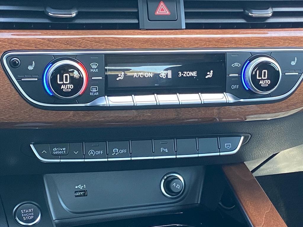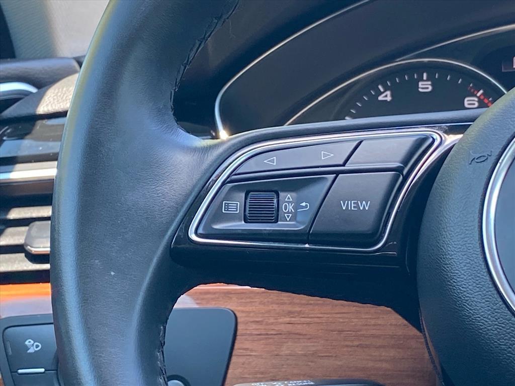 Dual front airbags, front seat-mounted side impact airbags, dual front seat knee airbags, dual Sideguard head curtain airbags, four-wheel disc brakes with anti-lock, brake assist, electronic brake force distribution, electronic stability control with secondary collision brake assist, traction control, anti-theft alarm, engine immobilizer, power central locking system, automatic full LED headlights, LED front fog lights, Bluetooth hands-free phone system, HomeLink garage door opener, Audi advanced key, rain/light sensor, Audi pre sense basic, Audi pre sense city, parking system plus with rear-view camera, Audi connect CARE assistance, and tire pressure monitoring system. Prestige adds MMI navigation, Audi side assist, Audi pre sense rear with rear cross traffic and vehicle exit assist, and head-up display.