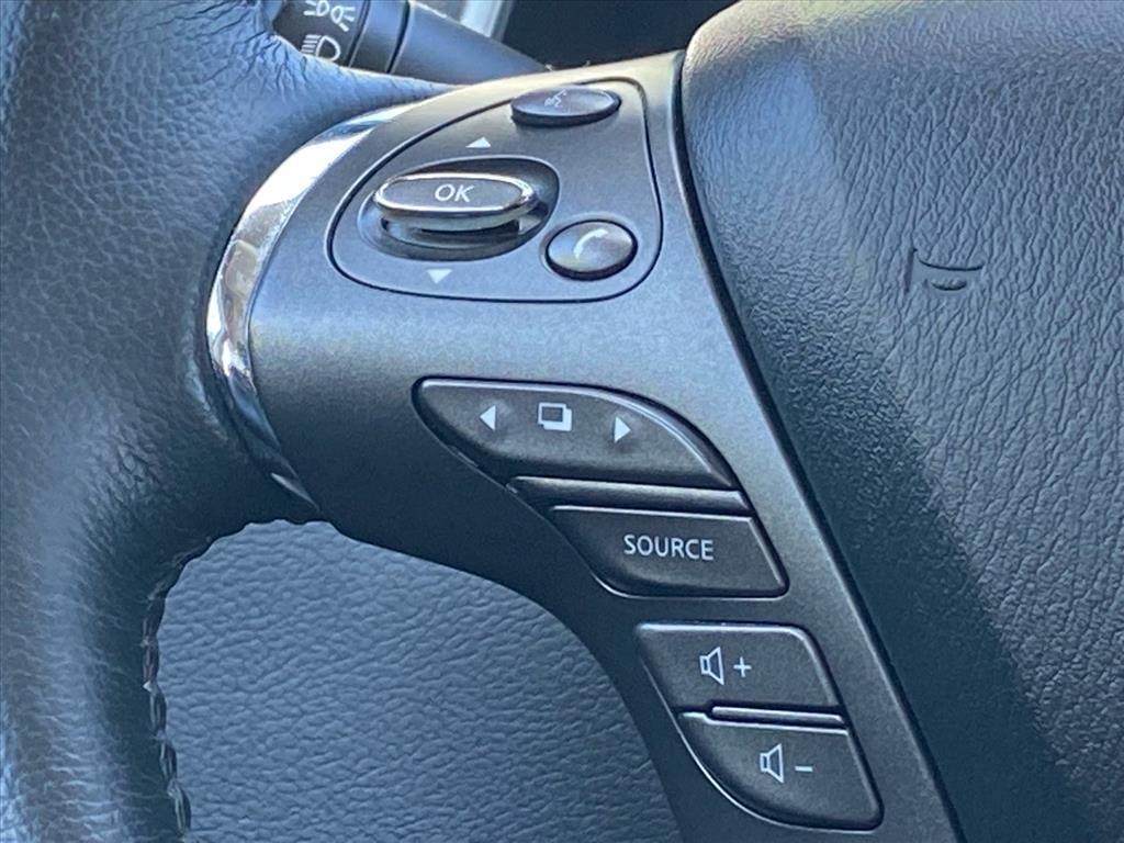 Dual front airbags, front seat-mounted side-impact airbags, dual head curtain side-impact airbags, driver supplemental knee airbag, four-wheel disc brakes with anti-lock, electronic brake force distribution, brake assist, traction control system, vehicle dynamic control, vehicle security system, hill start assist, LED daytime running lights, Bluetooth hands free phone system, remote keyless entry, rearview monitor, Nissan Intelligent Key, push button ignition, high-strength side door guard beams, engine immobilizer, NissanConnect, easy fill tire alert, and tire pressure monitoring system.
