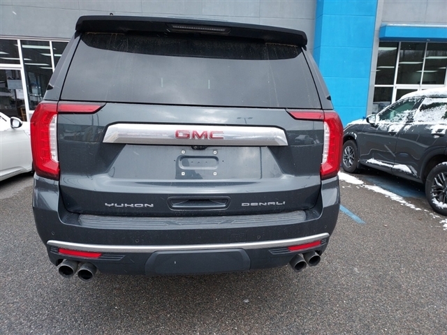 Clean CARFAX. This 2021 Hunter Metallic GMC Yukon Denali 4WD is well equipped and includes these features and benefits: *CLEAN VEHICLE HISTORY REPORT*, *4X4*, *TOW PACKAGE*, *SUNROOF/MOONROOF*, *REARVIEW CAMERA*, *BLUETOOTH*, *USB PORT*, *BLIND SPOT MONITOR*, *LANE KEEP/DEPARTURE ASSIST*, *REMOTE START*, *3RD ROW SEATING 7 PASS*, *LEATHER*, *HEATED/COOLED PERFORATED LEATHER*, 4WD, 12-Way Power Seat Adjusters, 14 Speakers, 15Diagonal Multi-Color Head-Up Display, 2 Presets For Outside Rearview Mirrors, 3.23 Rear Axle Ratio, 3rd Row 60/40 Power-Folding Split-Bench Seat, 3rd row seats: split-bench, Adaptive Cruise Control, Adaptive suspension, Advanced Security Package, Advanced Technology Package, Air Conditioning, Alloy wheels, AM/FM radio: SiriusXM with 360L, Apple CarPlay/Android Auto, Auto High-beam Headlights, Auto-dimming door mirrors, Auto-dimming Rear-View mirror, Auto-leveling suspension, Automatic Emergency Braking, Automatic temperature control, Bose 14-Speaker Surround w/CenterPoint, Brake assist, Bright Front & Rear Door Sill Plates, Bumpers: body-color, Chrome Door Handles w/Body-Color Strip, Compass, Denali Premium Package, Dual Exhaust System, Dual front impact airbags, Dual-Pane Panoramic Power Sunroof, Electronic Stability Control, Emergency communication system: OnStar and GMC connected services capable, Enhanced Automatic Emergency Braking, Following Distance Indicator, Forward Collision Alert, Four wheel independent suspension, Front & Rear Park Assist, Front Bucket Seats, Front Center Armrest, Front dual zone A/C, Front fog lights, Front Pedestrian Braking, Fully automatic headlights, Galvano Bodyside Moldings, Garage door transmitter, Glass Breakage Sensor, Hands-Free Power Programmable Rear Liftgate, HD Radio, HD Surround Vision, Heads-Up Display, Heated & Ventilated Driver & Front Passenger Seats, Heated 2nd Row Outboard Position Seats, Heated Automatic Steering Wheel, Heated door mirrors, Heated Driver & Front Passenger Seats, Heated front seats, Heated rear seats, Heated steering wheel, Hill Descent Control, Inside Rear-View Auto-Dimming Mirror, Inside Rearview Auto-Dimming Rear Camera Mirror, IntelliBeam Automatic High Beam On/Off, Lane Change Alert w/Side Blind Zone Alert, Lane Keep Assist w/Lane Departure Warning, Leather steering wheel, License Plate Front Mounting Package, Low tire pressure warning, Magnetic Ride Control Suspension, Navigation System, Occupant sensing airbag, Outside Heated Power-Adjustable Mirrors, Outside t