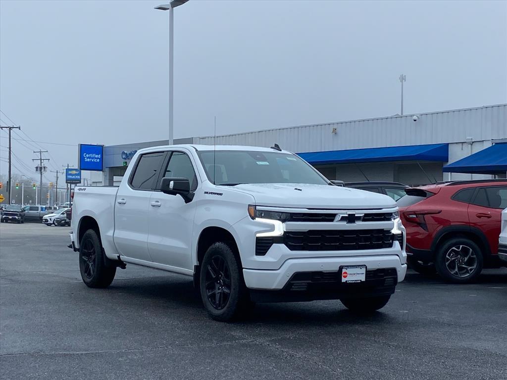 This New 2026 Chevrolet Silverado 1500 RST, is Summit White in color with a Jet Black interior. Stock Number C7483. You can connect with us by calling . Important Package and Feature Information Dark Appearance PackageConvenience Package II ($1,065 value)Power Sliding Rear Window with Rear DefoggerHitch Guidance with Hitch ViewIn-Vehicle Trailering System AppUniversal Home RemotePremium Bose 7-Speaker Sound SystemMax Trailering Package ($850 value)7,300 lbs (3,311 Kg) GVWR3.42 Rear Axle RatioIntegrated Trailer Brake ControllerEnhanced Cooling RadiatorIncreased RGAWRHeavier Duty Rear SpringsSafety Package ($1,115 value)Trailer Camera ProvisionsPerimeter LightingUltrasonic Front and Rear Park AssistRear Cross Traffic BrakingRear Pedestrian AlertTrailer Side Blind Zone AlertHD Surround VisionPreferred Equipment Group 1SPSiriusXM with 360L Trial SubscriptionRear 60/40 Folding Bench Seat (folds Up)Power Front Windows with Passenger Express DownPower Rear Windows with Express DownDeep-Tinted GlassPower Front Windows with Driver Express Up/downColor-Keyed Carpeting Floor CoveringFront Rubberized Vinyl Floor MatsRear Rubberized-Vinyl Floor MatsBluetooth For PhoneInside Rearview Mirror with TiltHeated Power-Adjustable Outside MirrorsHigh Gloss Black Mirror CapsAuto-Locking Rear DifferentialIntegrated Trailer Brake ControllerElectronic Cruise ControlSingle-Speed Transfer CaseConvenience PackageAll-Star EditionChevy Safety AssistStandard TailgateEZ Lift Power Lock and Release TailgateCloth Seat TrimFront LED Fog LampsTeen Driver12.3 Multicolor Reconfigurable Digital DisplayOnStar Services CapableTire Pressure Monitoring SystemSteering Wheel Audio Cont