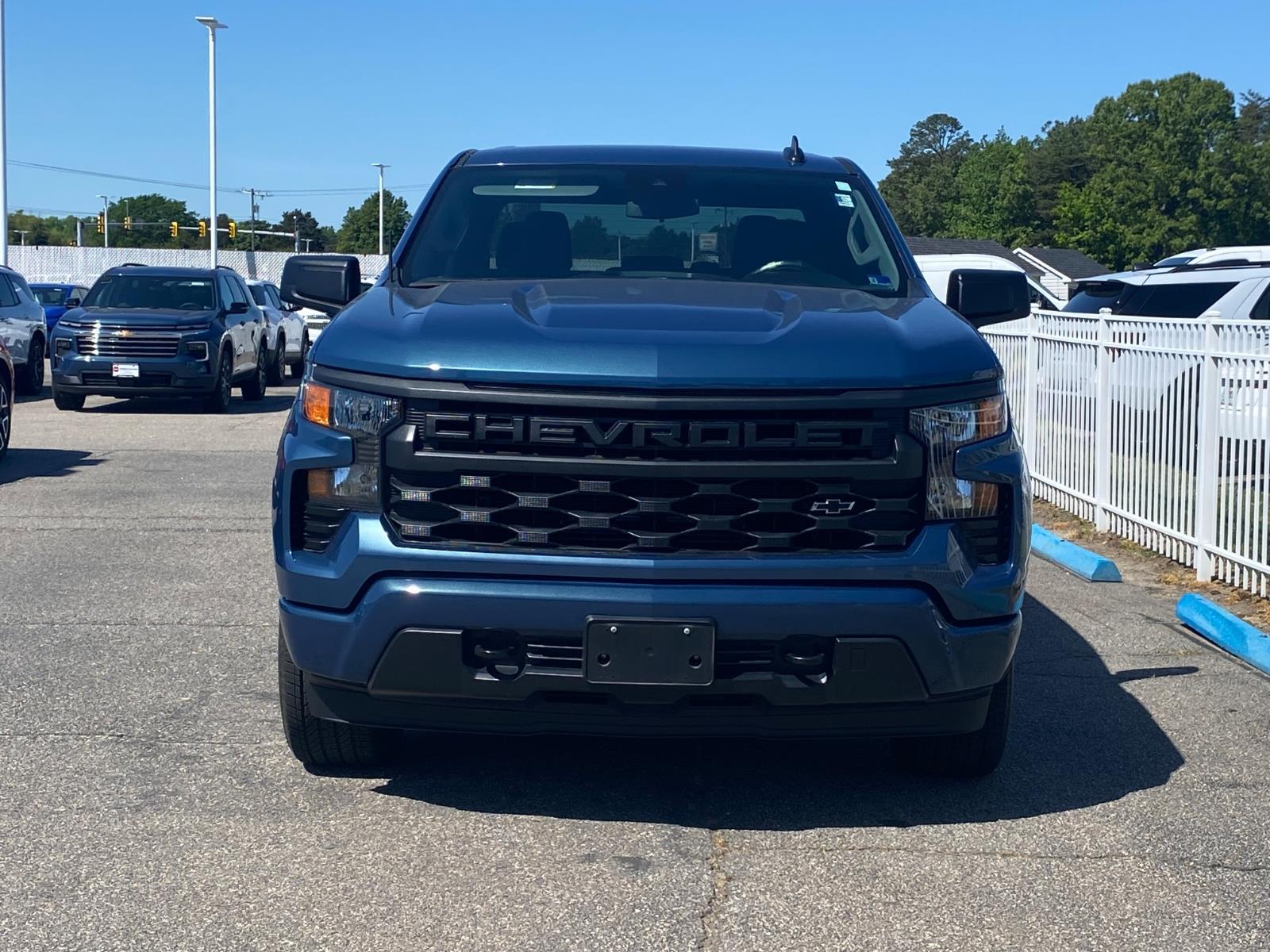 Why BUY from CMAs Colonial Chevrolet When you choose this Lakeshore Blue Metallic 2024 Chevrolet Silverado 1500 Custom with 8,569 miles, you are not just buying a used vehicle - you are investing in quality, reliability and peace of mind. Our clientele depend on us for Transparent Pricing, Convenience and, most importantly, Customer FIRST Service! What this vehicle includes: Custom Convenience PackageRemote Vehicle Starter SystemElectric Rear-Window DefoggerEZ Lift Power Lock and Release TailgateLED Cargo Area LightingTheft Deterrent System (unauthorized Entry)Dark Essentials PackageBlack Name PlatesFront Black Bowtie EmblemPreferred Equipment Group 1CX10-Way Power Driver Seat with LumbarRear 60/40 Folding Bench Seat (folds Up)Power Front Windows with Passenger Express DownPower Rear Windows with Express DownDeep-Tinted GlassRemote Keyless EntryPower Front Windows with Driver Express Up/down40/20/40 Front Split-Bench SeatColor-Keyed Carpeting Floor CoveringFront Rubberized Vinyl Floor MatsRear Rubberized-Vinyl Floor MatsBluetooth For PhoneElectronic Cruise Control120-Volt Interior Power OutletElectrical Steering Column LockManual Tilt Wheel Steering ColumnSingle-Speed Transfer CaseCustom Value PackageChevy Safety AssistStandard TailgateCloth Seat TrimSiriusXM RadioDual Rear USB Ports (charge Only)3.5 Monochromatic Display Driver Info CenterOnStar and Chevrolet Connected Services CapableHD Rear Vision CameraFront Frame-Mounted Black Recovery Hooks Safety and Security The vehicle is equipped with a system that senses, and then prepares, the vehicle and/or occupants, for an impending forward collision. The vehicle is equipped with a system that senses, and then prepares, the vehicle and/or occupants, for an impending forward collision. The vehicle const