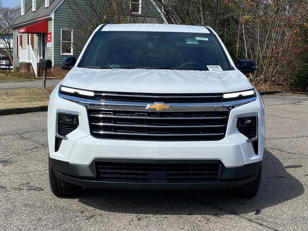 This New 2026 Chevrolet Traverse FWD LT, is Summit White in color with a JET BLACK interior. Stock Number FTWKMG. You can connect with us by calling . Important Package and Feature Information Safety and Security The vehicle is equipped with a system that senses, and then prepares, the vehicle and/or occupants, for an impending forward collision. The vehicle constantly monitors the roadway in front of the vehicle and identifies and tracks pedestrians on an interior display. If the system determines a likely impact, it will automatically take preventative steps to avoid hitting the pedestrian. The vehicle is equipped with a camera that displays an image of the area behind the vehicle on an interior display. The camera is equipped with its own washer.Technology and Telematics Apple CarPlay/Android Auto smart device wireless mirroring Mobile devices can wirelessly connect to the internet through the vehicles private mobile network. ENGINE, 2.5L TURBO DOHC SIDI WITH VARIABLE VALVE TIMING (VVT), SUMMIT WHITE At CMAs Colonial Chevrolet, were here to Serve you! Our staff is 100% dedicated to customer satisfaction and we understand that you need clear, transparent information throughout the car buying process. With our live market pricing philosophy, we offer the right cars at the right price, and the transparency to back it up!