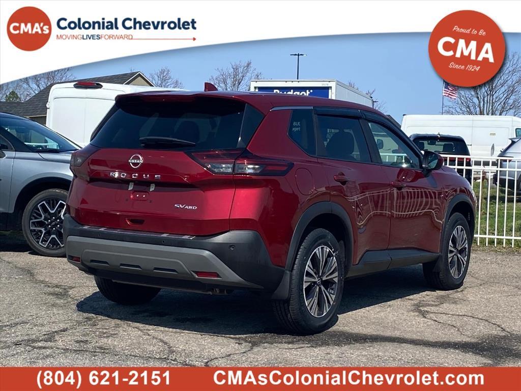 Why BUY from CMAs Colonial Chevrolet When you choose this Scarlet Ember Tintcoat 2023 Nissan Rogue SV with 21,675 miles, you are not just buying a used vehicle - you are investing in quality, reliability and peace of mind. Our clientele depend on us for Transparent Pricing, Convenience and, most importantly, Customer FIRST Service! What this vehicle includes: 4-Piece Splash Guards ($220 value)Rear Bumper Protector - Chrome ($170 value)Premium Paint ($395 value)Floor Mats w/ Cargo Area Protector ($435 value)Includes carpeted floor mats, 1-piece cargo area protector, seatback protector and first aid kit. Safety and Security The vehicle is equipped with a system that senses, and then prepares, the vehicle and/or occupants, for an impending forward collision. The vehicle constantly monitors the roadway in front of the vehicle and identifies and tracks pedestrians on an interior display. If the system determines a likely impact, it will automatically take preventative steps to avoid hitting the pedestrian. With this system the drivers hands must remain on the wheel at all times but can be removed briefly (for a few seconds), otherwise the vehicle will prompt the driver to put their hands back on the wheel.Technology and Telematics Without the need for a manufacturer specific app to be installed on the smart device, the vehicle infotainment system can access and control functions of a smart device physically plugged-into the vehicle. Mobile devices can wirelessly connect to the internet through the vehicles private mobile network. SCARLET EMBER TINTCOAT, CHARCOAL, SEAT TRIM, [C03] 50 STATE EMISSIONS, [B93] CHROME REAR BUMPER PROTECTOR, [B92] BLACK SPLASH GUARDS (SET OF 4), [L92] FLOOR MATS W/1-PIECE CARGO AREA PROTECTOR Come on in to CMAs Colonial Chevrolet today at 12420 Route 1 Chester VA 23831 or call to schedule a test drive!